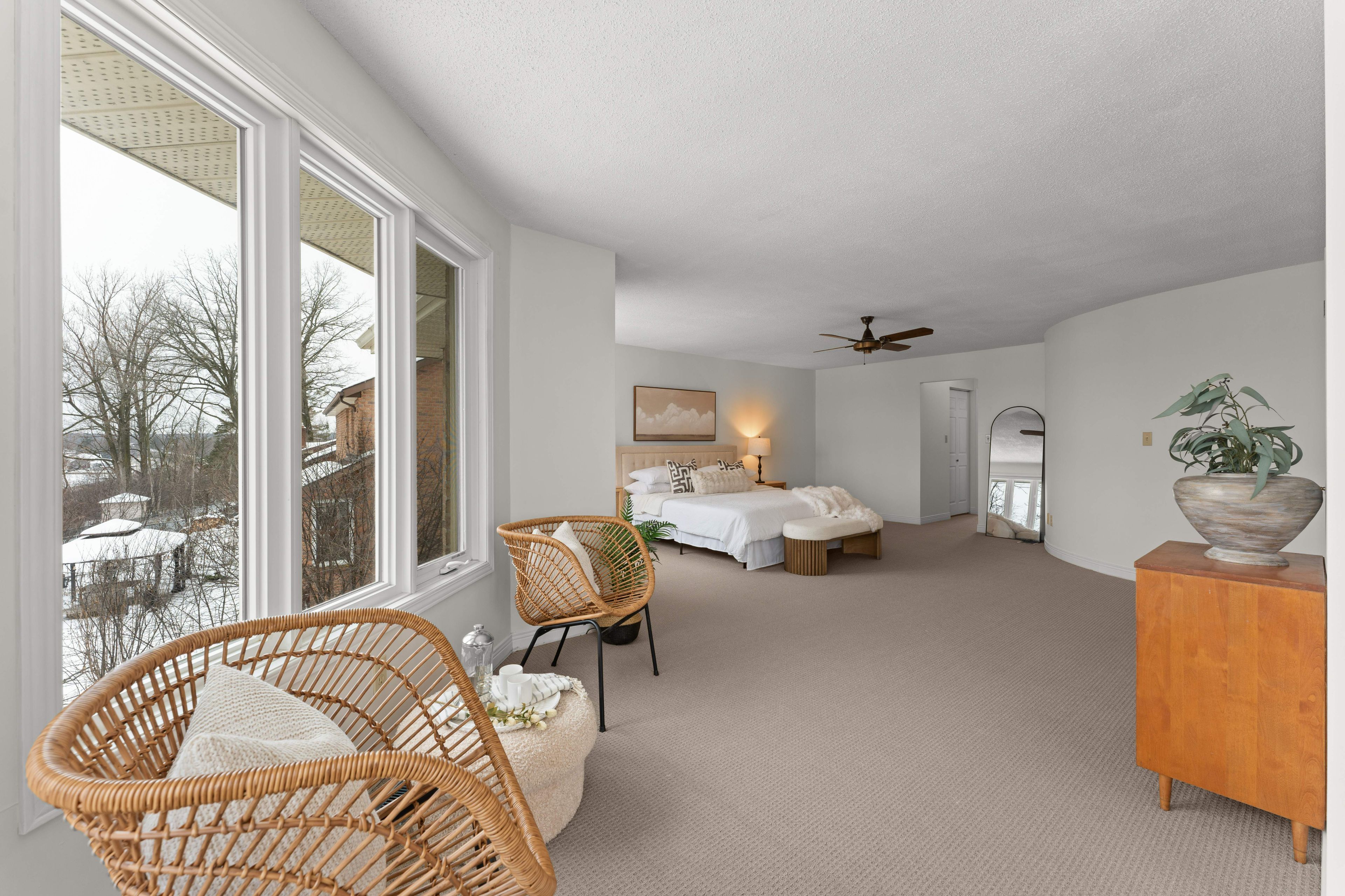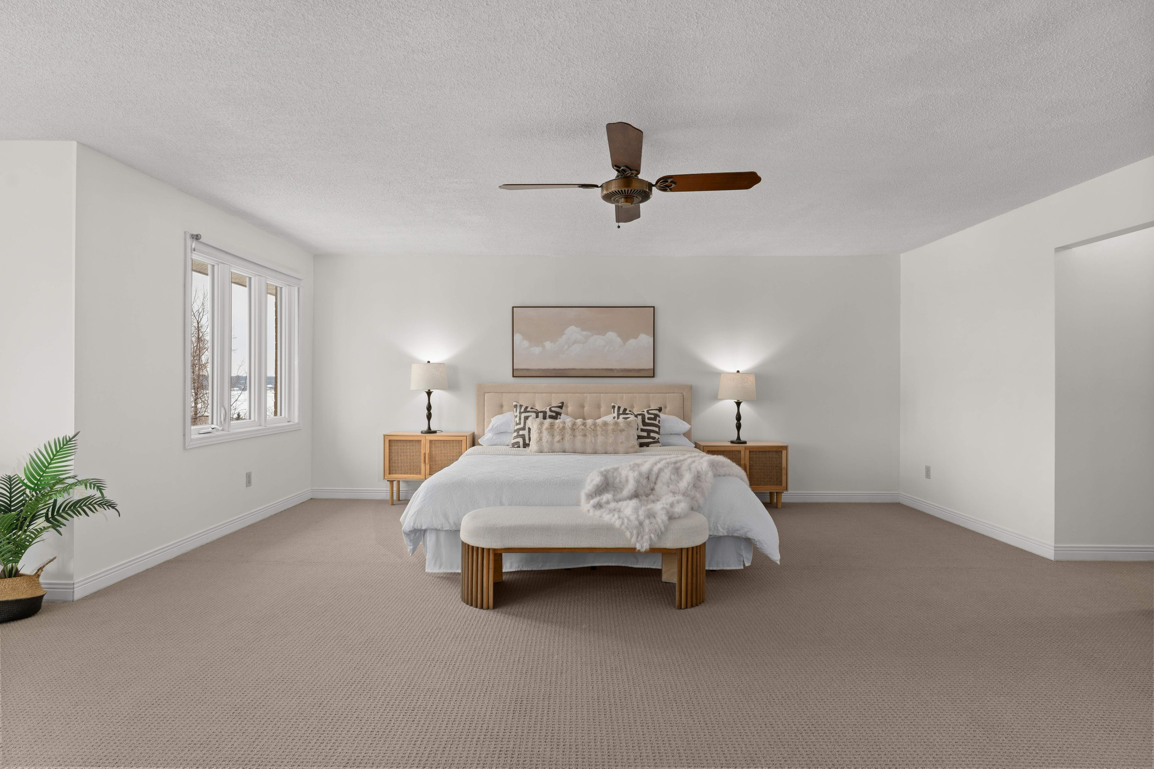 Welcome to 597 forest hill drive, a truly exceptional family home tucked away on a quiet cul-de-sac in the heart of bayridge. With no rear neighbours, backing onto a serene ravine and offering beautiful views of collins bay, this property delivers the privacy and space that's hard to find. This all-brick 5-bedroom, 3. 5-bathroom home offers over 3,000sqft of finished living space, with many areas recently painted and new carpeting throughout. From the moment you pass through the double door entrance, you will appreciate the large foyer and spiral staircase offering a great first impression. On the left you will find a formal living and dining area, perfect for entertaining. On the right side is a welcoming family room with ash hardwood flooring and a cozy gas fireplace. As you venture towards the back of the main floor, you are greeted by a bright eat-in kitchen with plenty of south-facing windows with water views. This kitchen boasts abundant cabinetry, pot lighting, a tile backsplash, gas range, and sliding doors leading to the deck. Lastly, to complete the main floor, is a convenient laundry area and powder room. Upstairs, the primary bedroom is truly oversized - one of the largest you'll ever see - complete with a 4-piece ensuite and plenty of room to create your own private retreat. The second floor has three additional bedrooms that are generously sized, along with a 4pc bathroom, making this an ideal home for growing families. The fully finished walk-out basement expands your living space with a large bedroom, family room, office/gym area, 3pc bathroom and direct access to the backyard - perfect for guests, teens, or in-laws. Outside you will appreciate your double car garage, double-wide driveway with 4 parking spaces, covered front porch and private backyard. Located close to shopping, parks, and excellent schools, this home offers the perfect balance of tranquility and convenience.