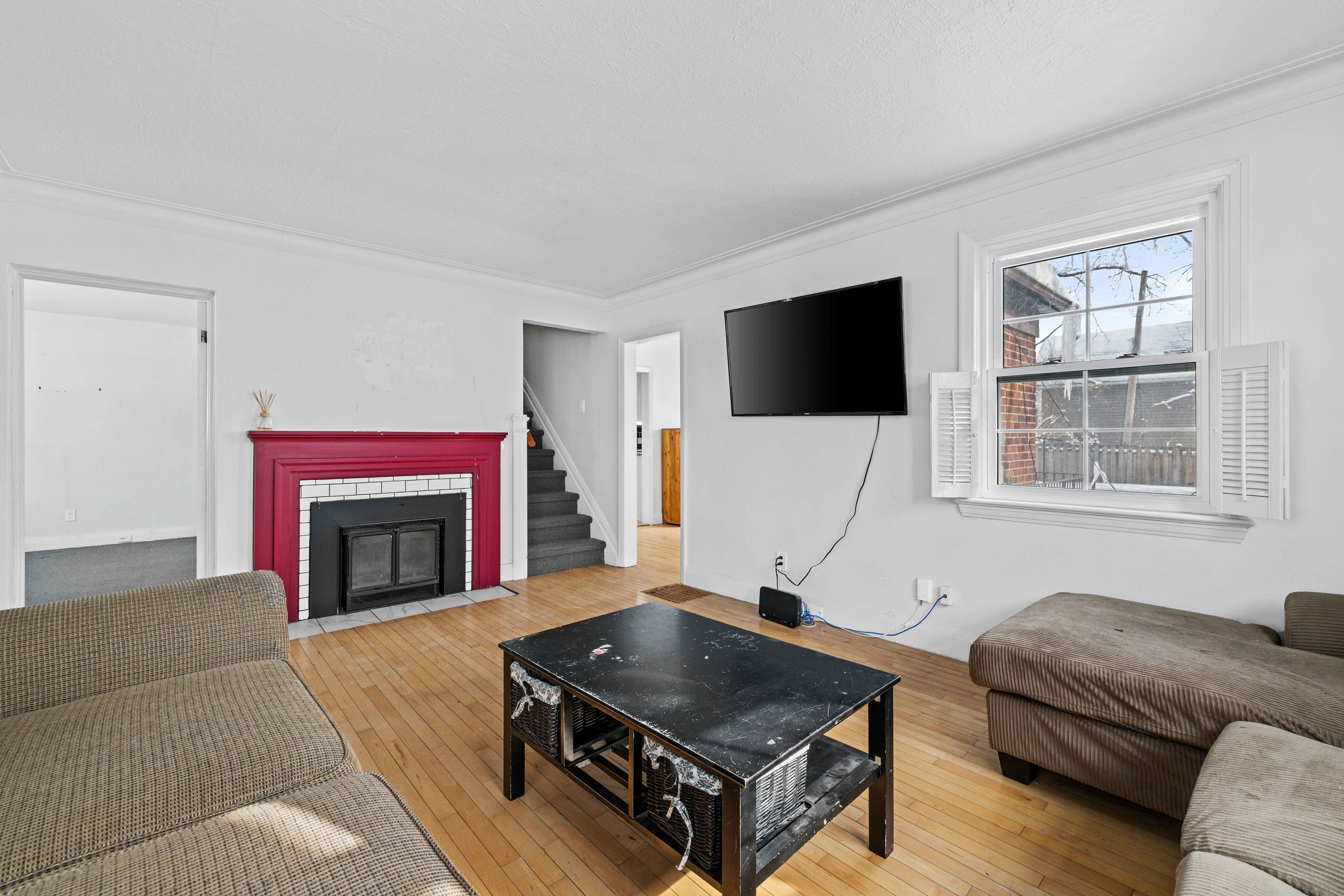 • Cozy living room with fireplace and separate dining area for gatherings.