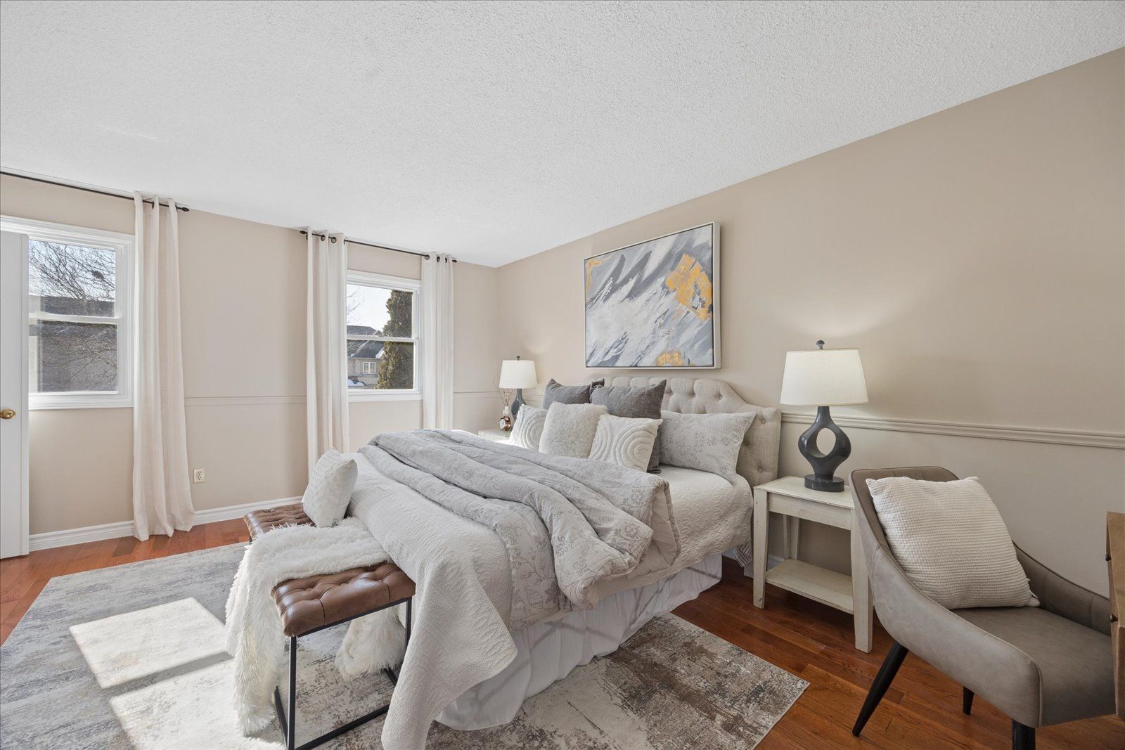 • Bright layout with hardwood floors and a cozy gas fireplace.