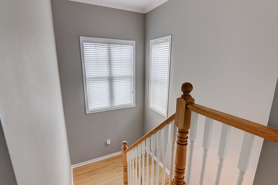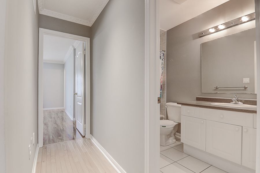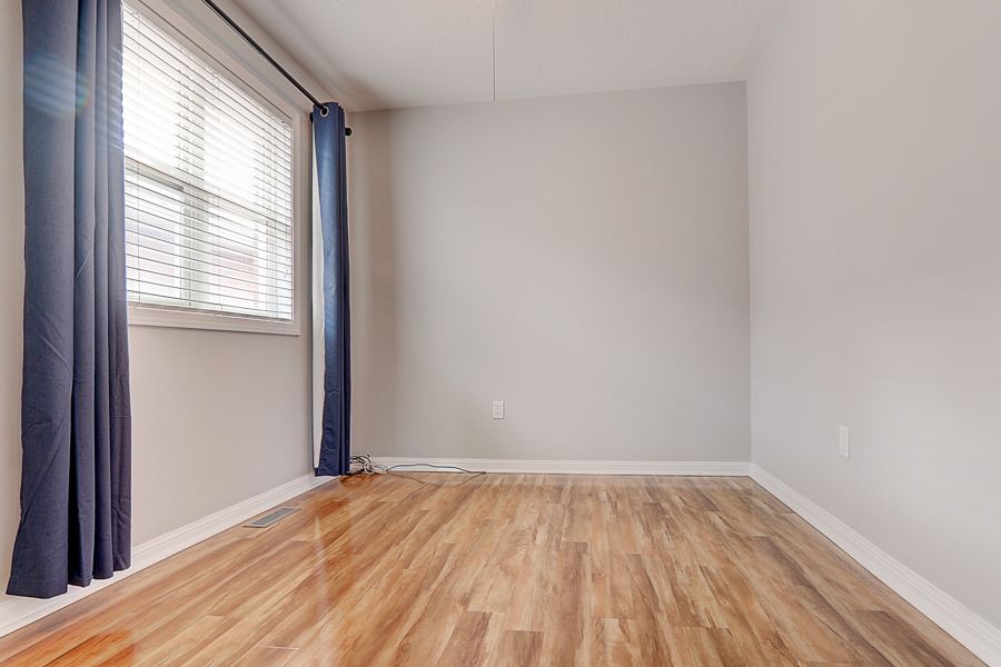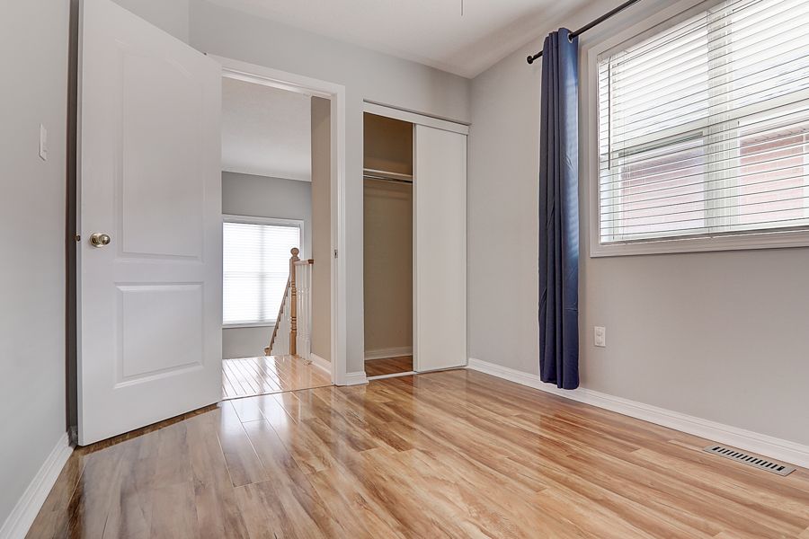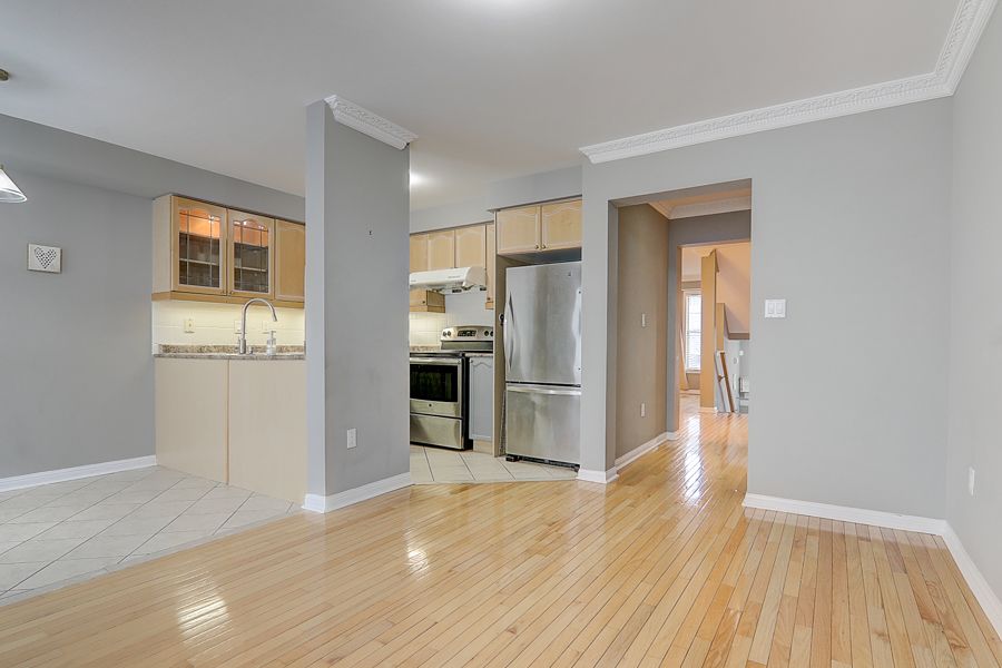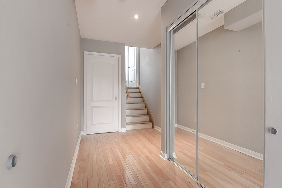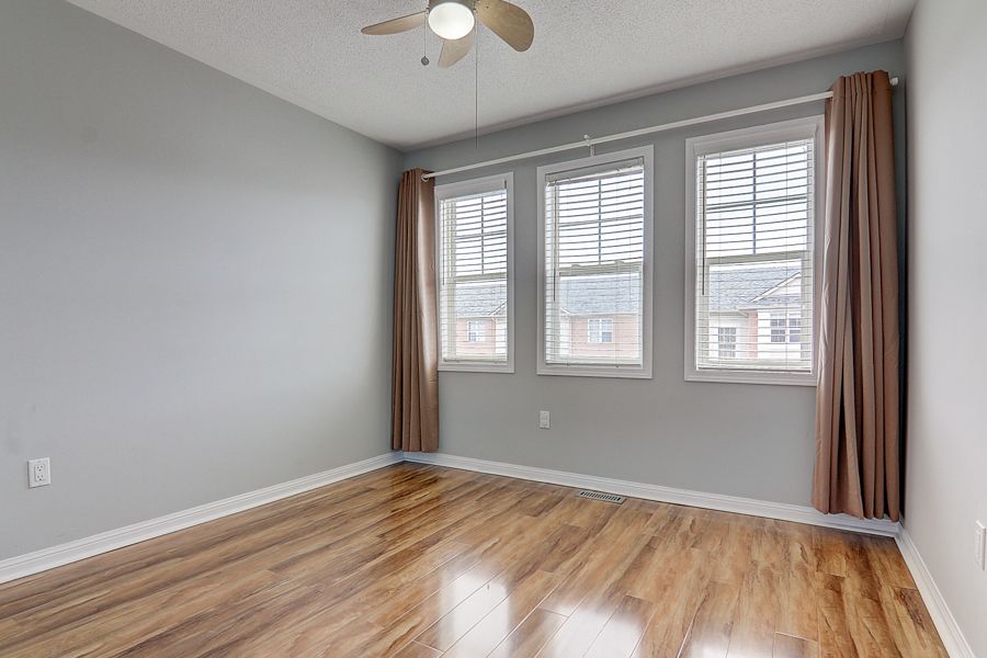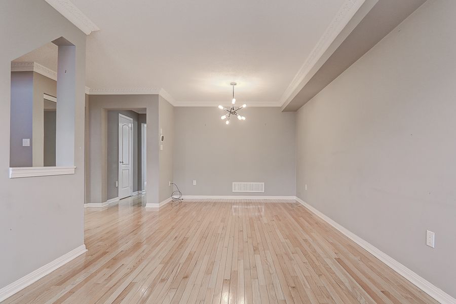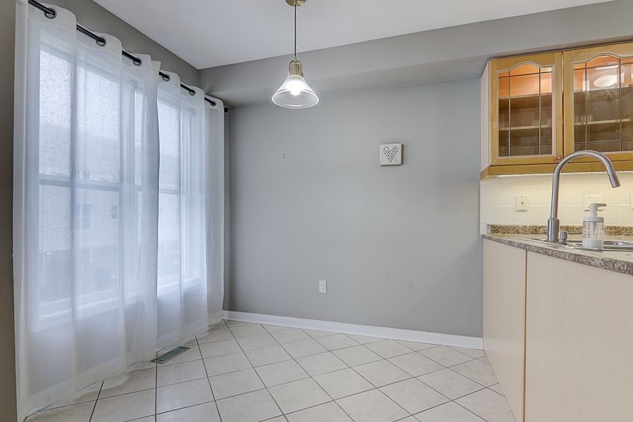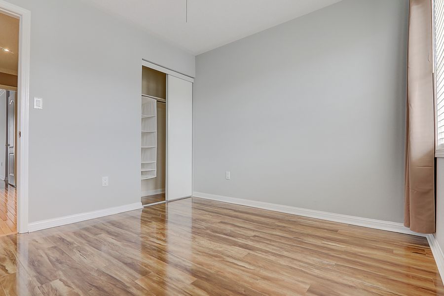 This beautifully maintained 3-bedroom end-unit townhouse is move-in ready and offers spacious, carpet-free living in the sought-after "mountain laurel" model with 1,770 sqft of well-designed space. Featuring gleaming hardwood floors, a hardwood staircase, the home boasts an open-concept kitchen with stainless steel appliances and a cozy breakfast area, alongside a bright family room adorned with plaster crown mouldings and custom blinds. The generous primary bedroom includes a walk-in closet and 4-piece ensuite, while the finished basement provides a rec room with walk-out to the patio and direct garage access. Conveniently located close to transit, schools, shopping, parks, highway 401, and heartland town centre, this stunning property checks every box.