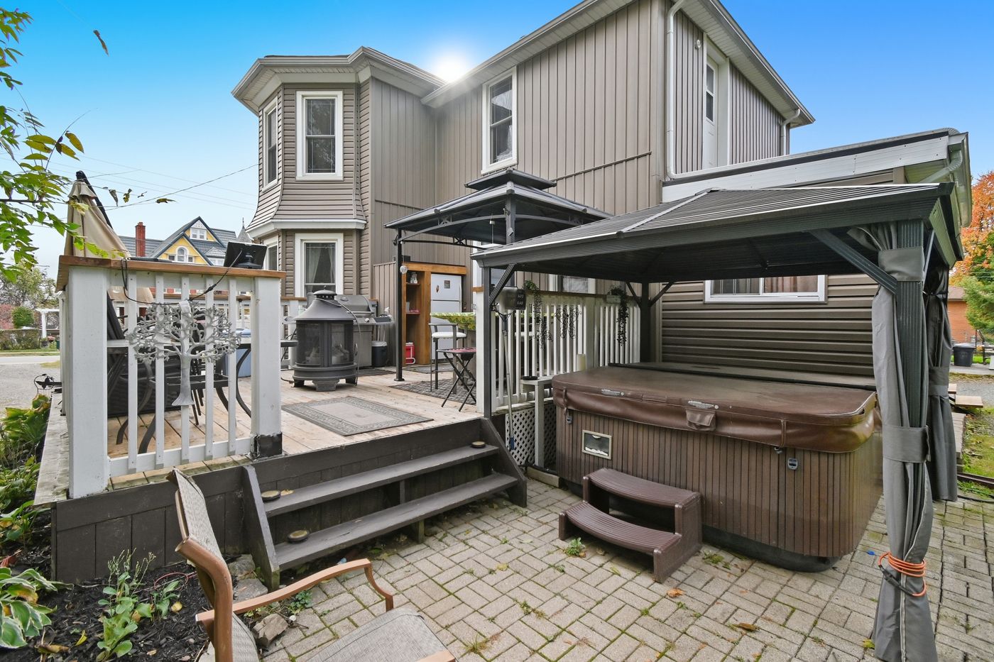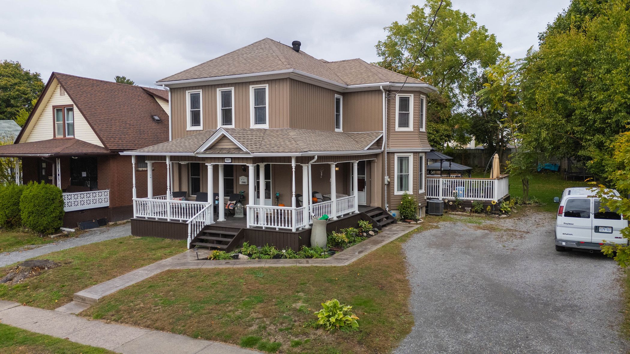 Welcome home to 5981 culp st in niagara falls! This circa 1900 home has been well cared for and thoughtfully updated throughout, while keeping the old charm! Many of the original wooden doors, trim, staircase and pocket doors have been refinished to bring out the amazing character this home has to offer! This home is over 2100 sqft and has over 3000 sqft of living space! With 3 + 1 bedrooms and 4 bathrooms, this home has room for the entire family! The home also could potentially be licenced as a bed and breakfast, as the home meets the requirements for one to operate! The main floor consists of the kitchen with granite countertops, the formal dining room fit for a king, the living room with fireplace, main floor laundry/powder room, and an office! The second floor can be accessed by two staircases, and consists of the primary suite with walkin closet, door to balcony, 4 pc ensuite and the staicase directly down to the kitchen! 2 more good sized bedrooms and another bathroom! The basement has been finished offering more space and consisting of another bedroom, recroom, 3 pc bathroom, utility room, and is roughed in for a wet bar! The electrical panel has been upgraded with updated wiring! The home has vinyll windows and easy to maintain vinyl siding! The home is heated with a forced air gas furnace and cooled with central air! The outside has parking for as many as you would like and has a rare feature where you could make the driveway wrap around the home and exit on the other side! The yard is big with multiple sheds, and has a deck (280sqft), a patio (190sqft) with a hot tub! The home is complete with a wraparound porch (250 sqft)! This is a one of a kind property, and is ready for new owners! Bring your ideas and book your private showing today!