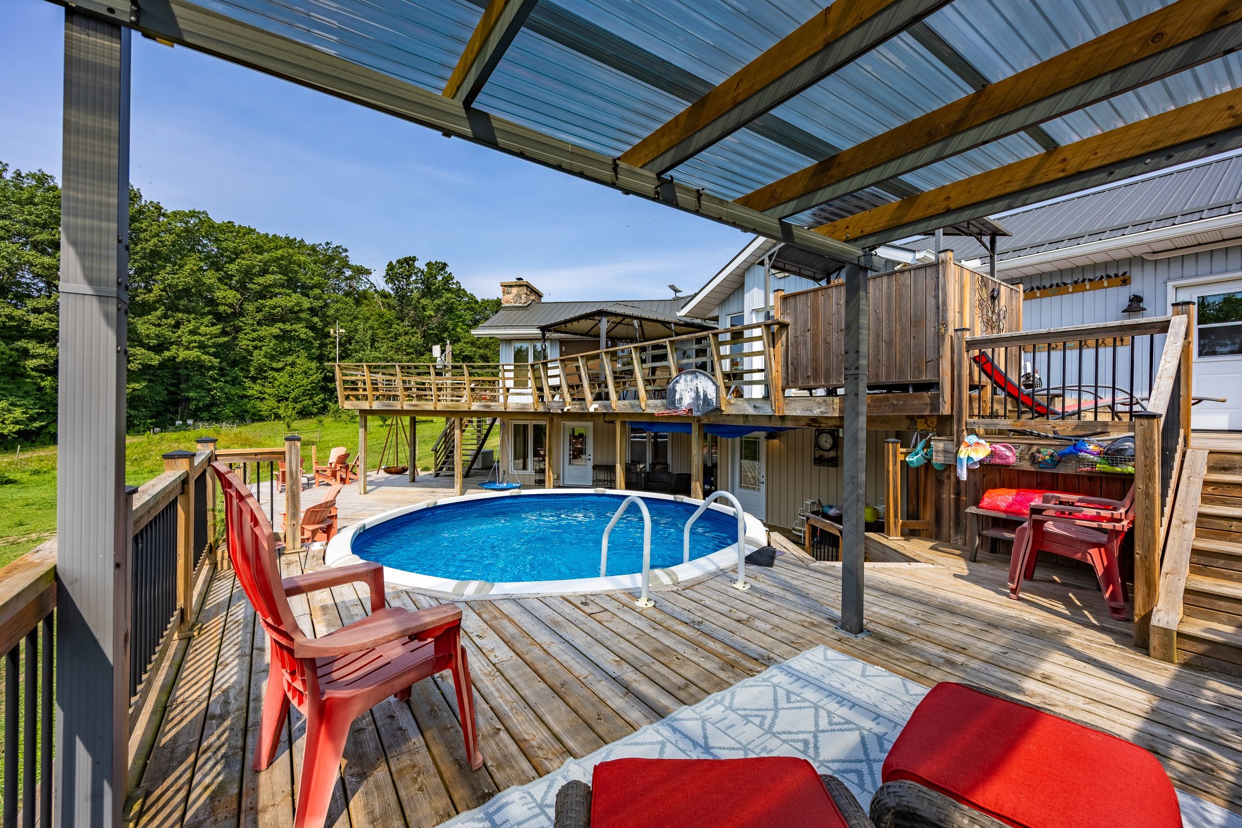 Discover the ultimate rural lifestyle on this rare 93-acre farm/equine retreat, thoughtfully designed for horse lovers, hobby farmers, or anyone seeking a peaceful and productive escape. Sustainability meets beauty this property is enrolled in an alus canada tree planting program, with 3,500 trees planted in 2019. These trees must remain untouched for 15 years and generate an annual income of approximately $518a smart blend of conservation and return. The land has approximately 49 acres of workable farmland, 12 acres of hay, 4 acres of fenced pasture. With the rest bush / trees and around the house . Plenty of space to grow, graze, and enjoy nature in every season. This spacious raised ranch features: 5 generous bedrooms & 4 bathrooms. Fully finished walk-out basement with separate entrance and a temperature-controlled wine cellar, 4 skylights that fill the home with natural light . Above-ground pool built into the deck for summertime fun. Automatic whole-home backup generator for peace of mind. Furnace (2023) and water heater (2022)updated for your comfort and efficiency. Equestrian & agricultural features , 65 x 120 indoor riding arena, , perfect for year-round riding, 28 x 80 barn with horse stalls and hay storage, 40 x 60 equipment barn with room for all your gear. Septic has been pumped out in 2024. Ample space for trailers, turnouts, paddocks, and more . All this, just a short drive to town amenities enjoy the serenity of country life without sacrificing convenience. Whether you're looking to grow your equestrian operation or simply enjoy the wide open spaces, this property offers the perfect blend of land, lifestyle, and long-term value.
