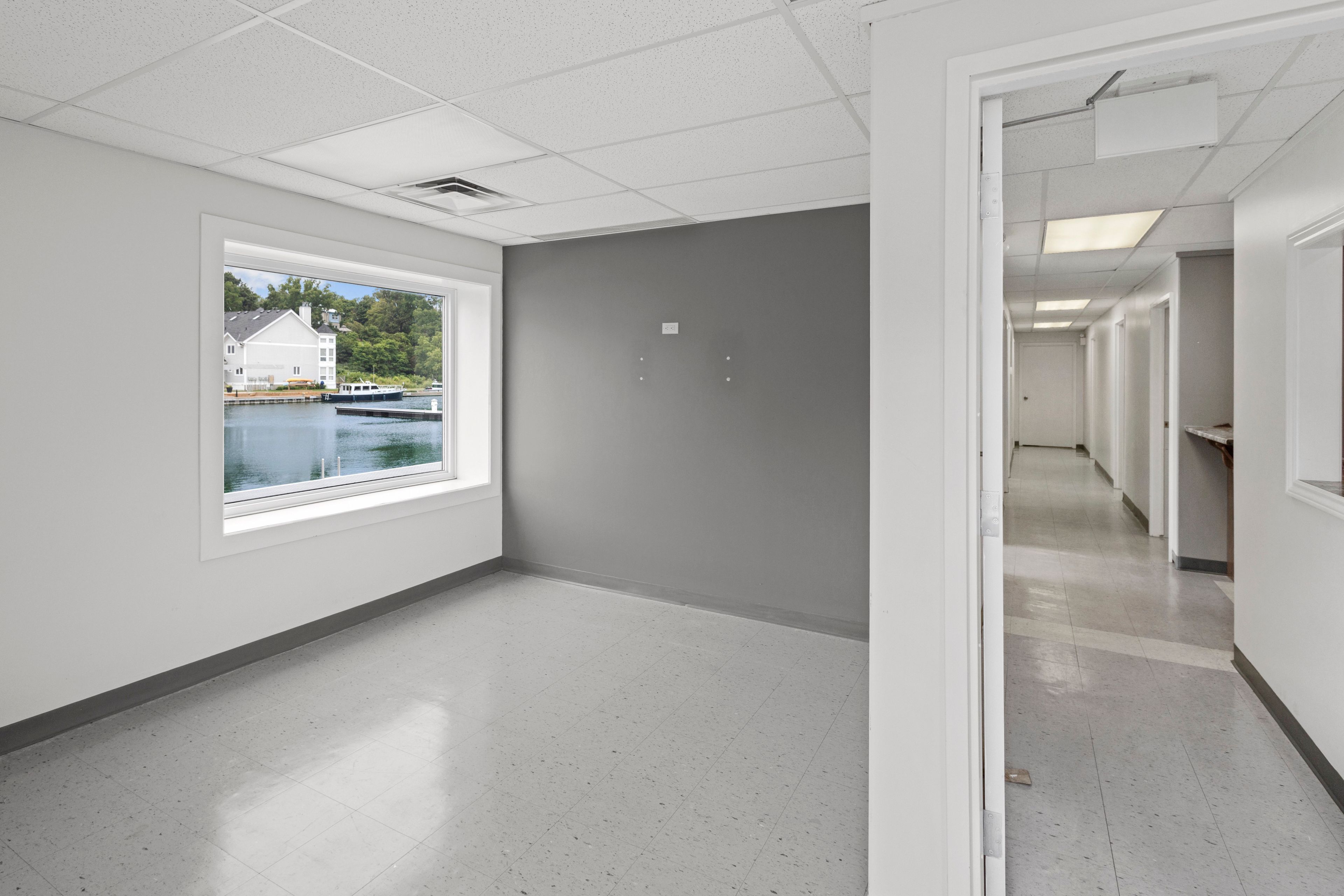 Suite 6 with water view at the harbour is 1 of several rental spaces available with all-inclusive rents & easy access to picton downtown. Historically a medical building, the landlords are looking for long term tenants & will consider a variety of uses for these units. Unit is equipped with washroom, and 8 other flexible spaces, for retail/storage/offices/medical practice or a mix of reception and private spaces.. This suite is accessible from the front parking lot and has a private entrance. The unit has access to the shared spaces, which include: a board room that can be booked for meetings, larger kitchenette & fully accessible washrooms. Units are all inclusive, including: hydro, water/sewer, heat/cooling, reserved parking, public parking, taxes, garbage disposal, private high speed fiber internet, property maintenance, and use of shared spaces. **extras** rent plus hst includes utilities and private high speed internet