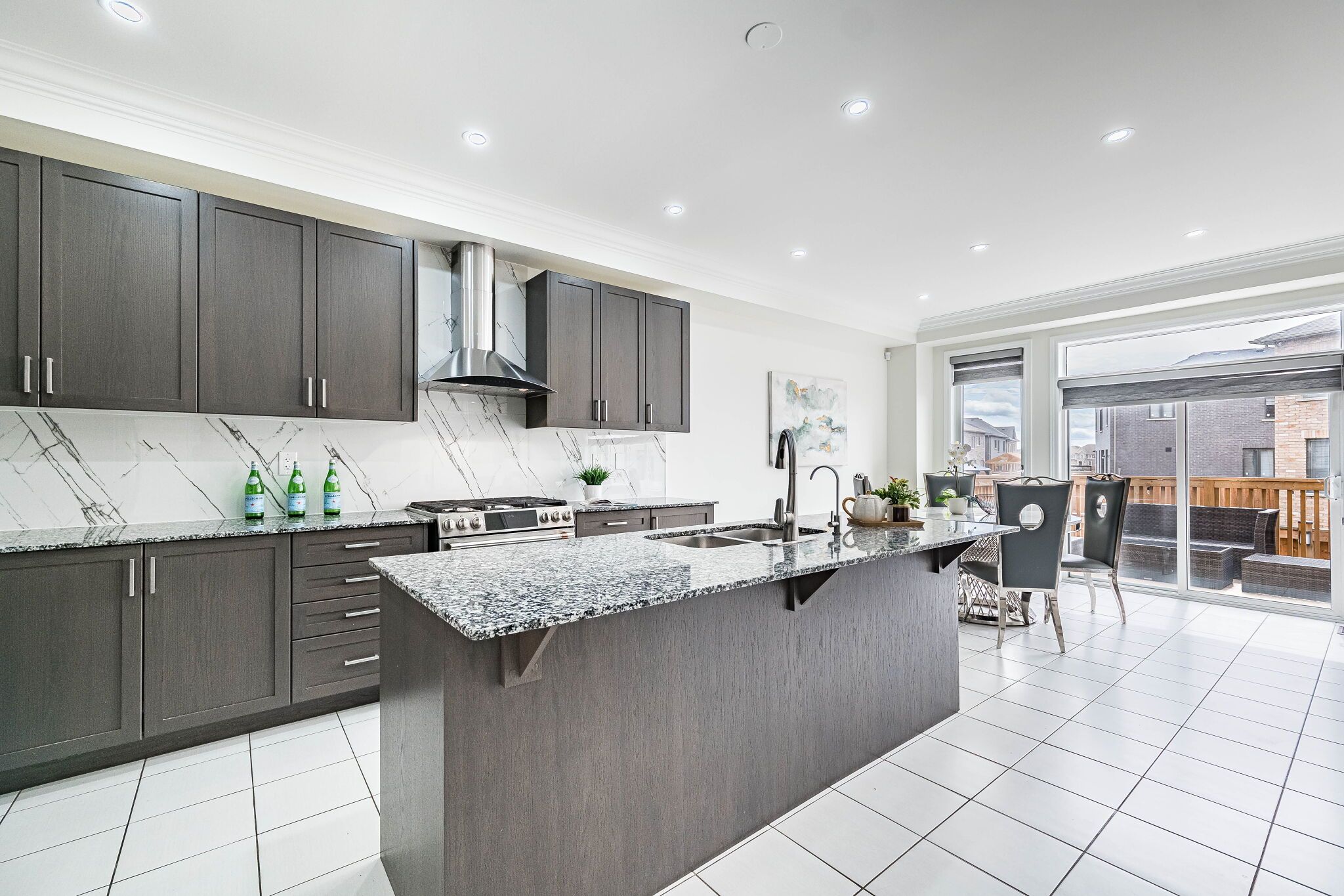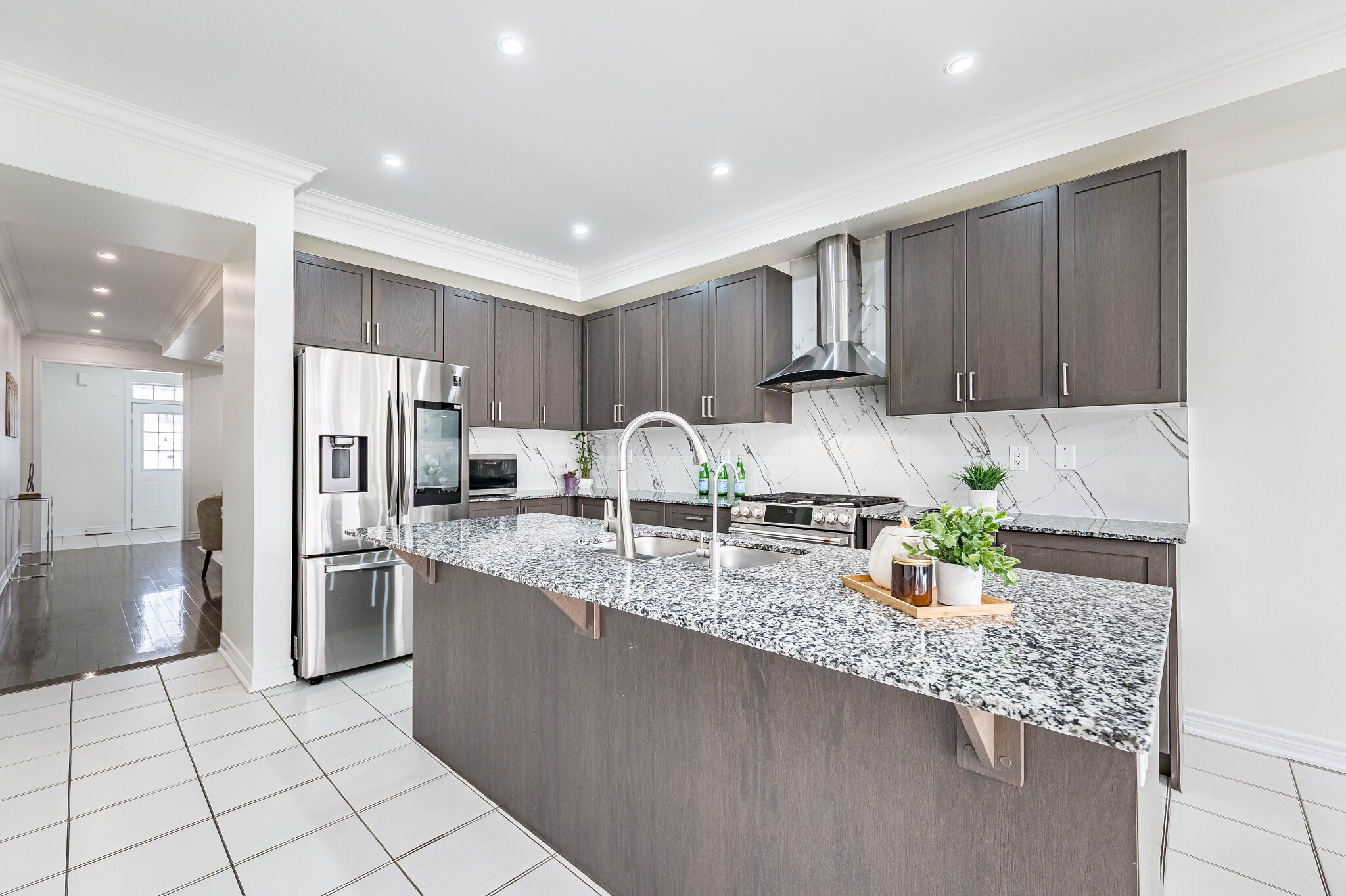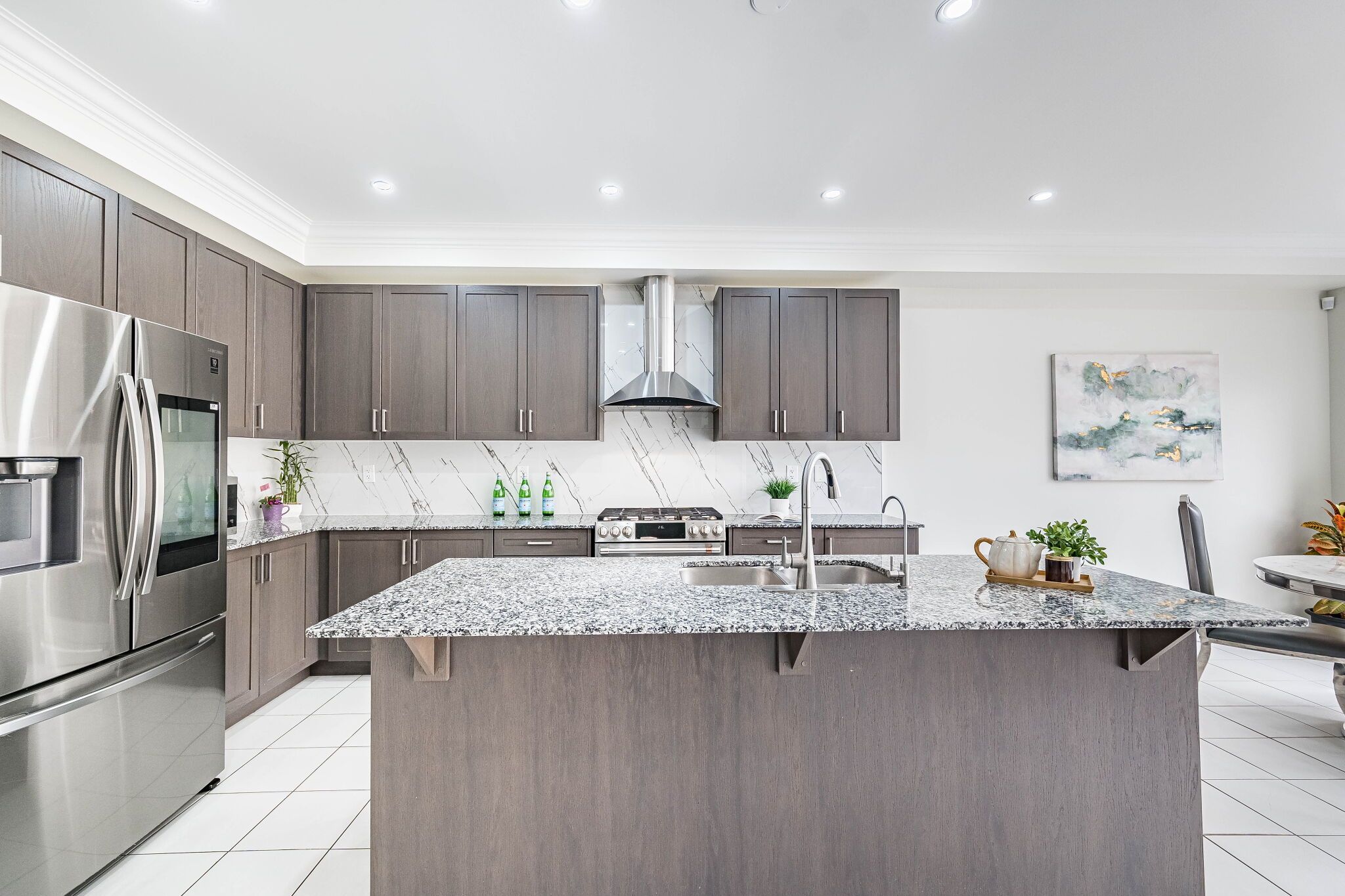 • Bright designer kitchen with quartz countertops and a walkout to the deck.
