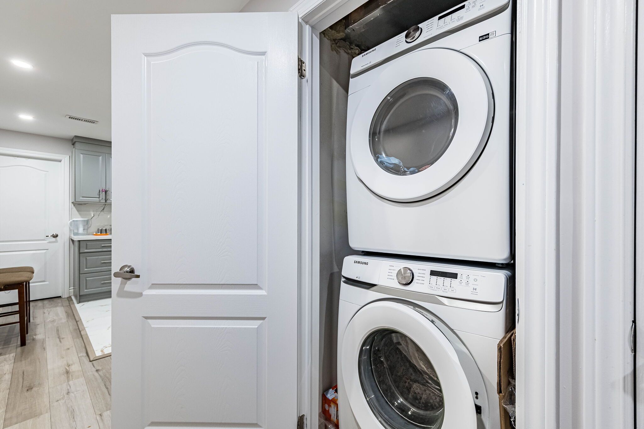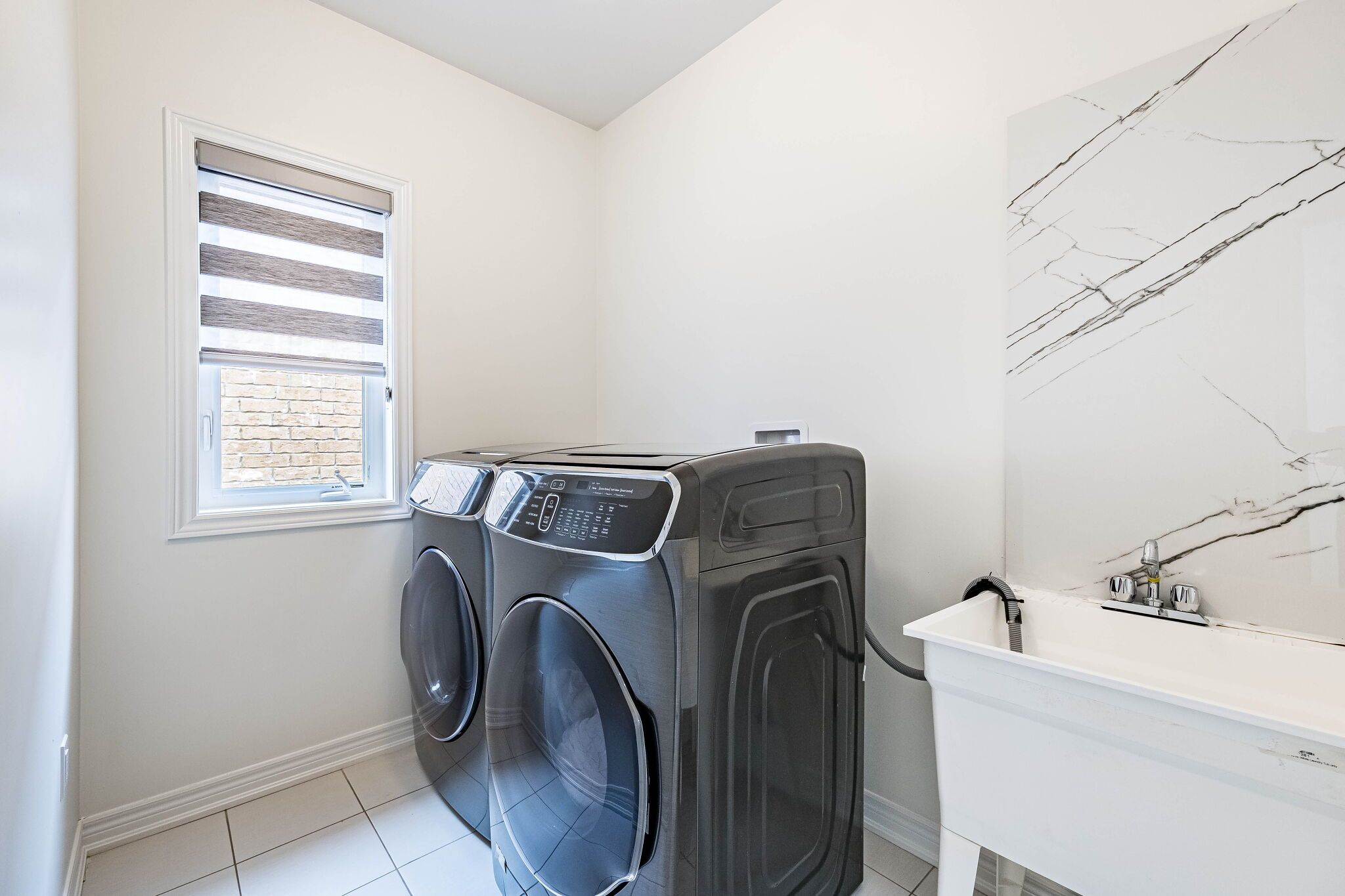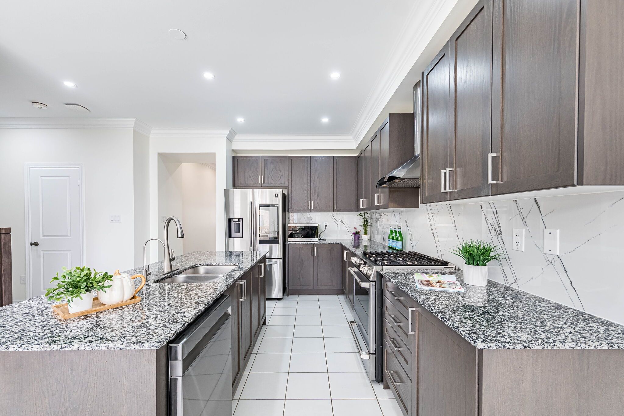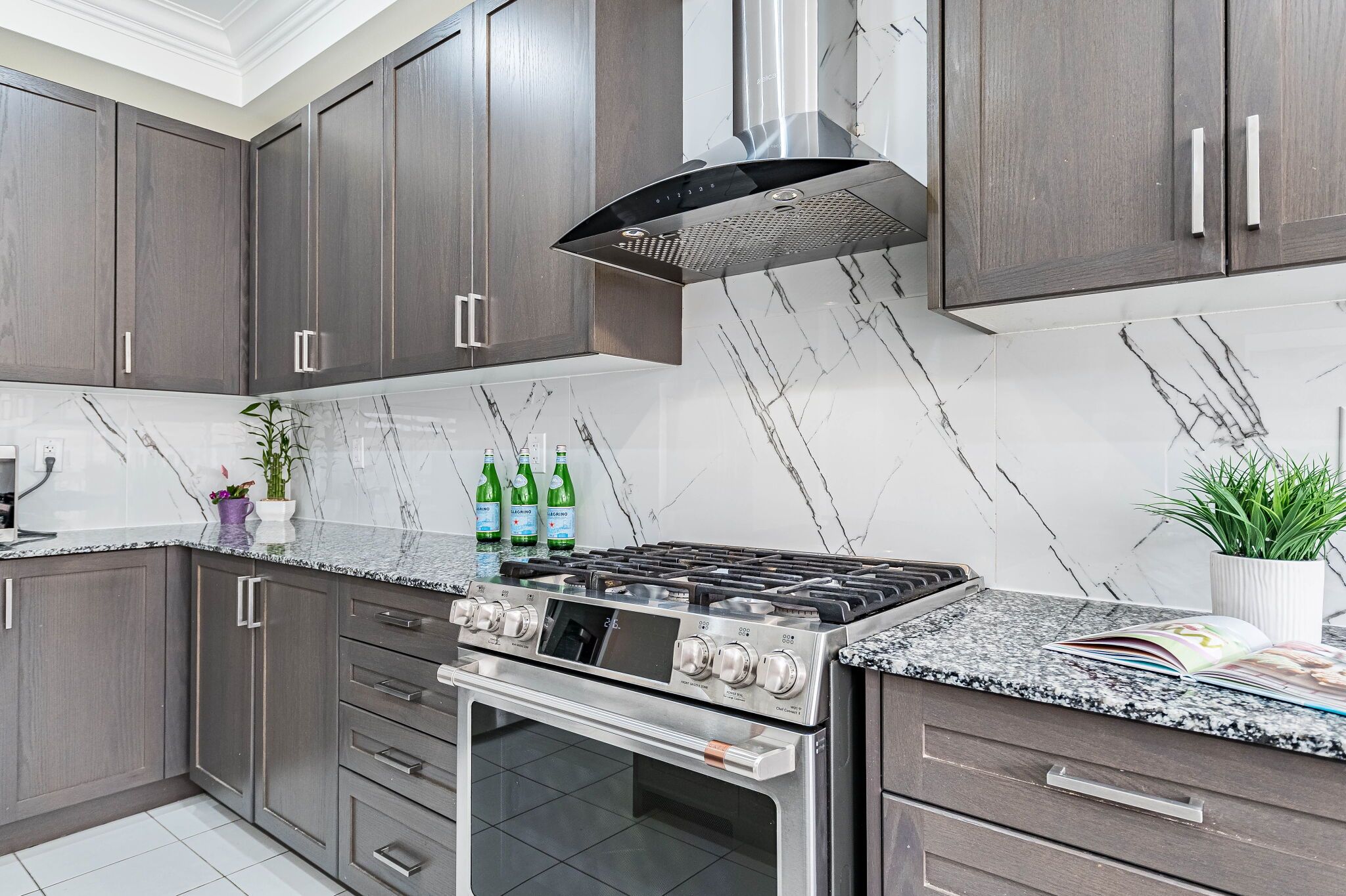• Bright designer kitchen with quartz countertops and a walkout to the deck.