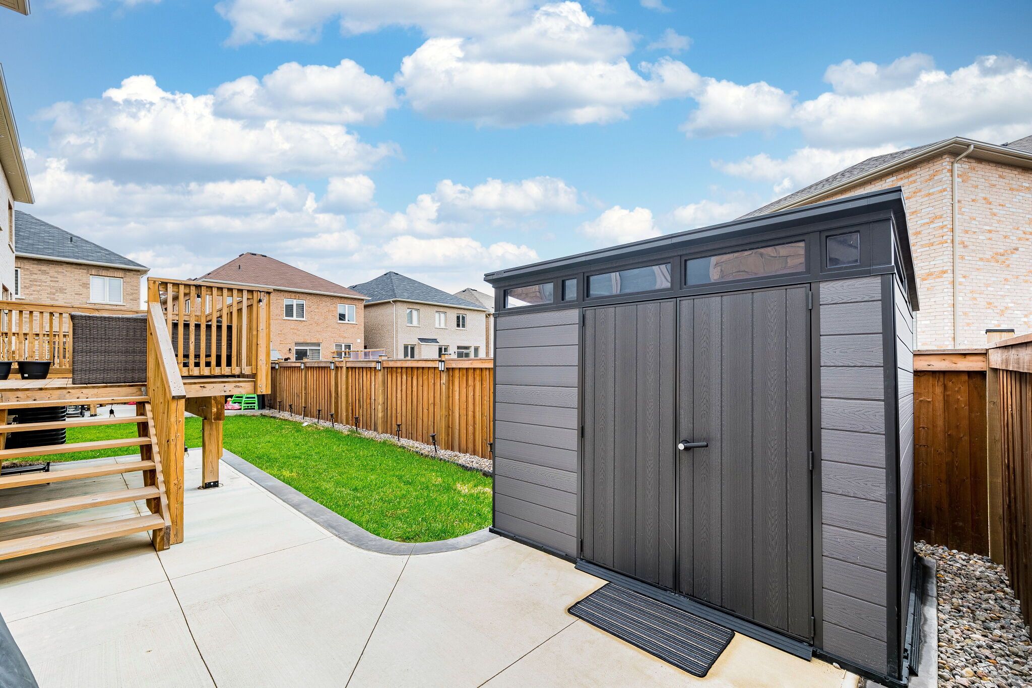 • Large backyard with a deck, perfect for outdoor activities and relaxing.