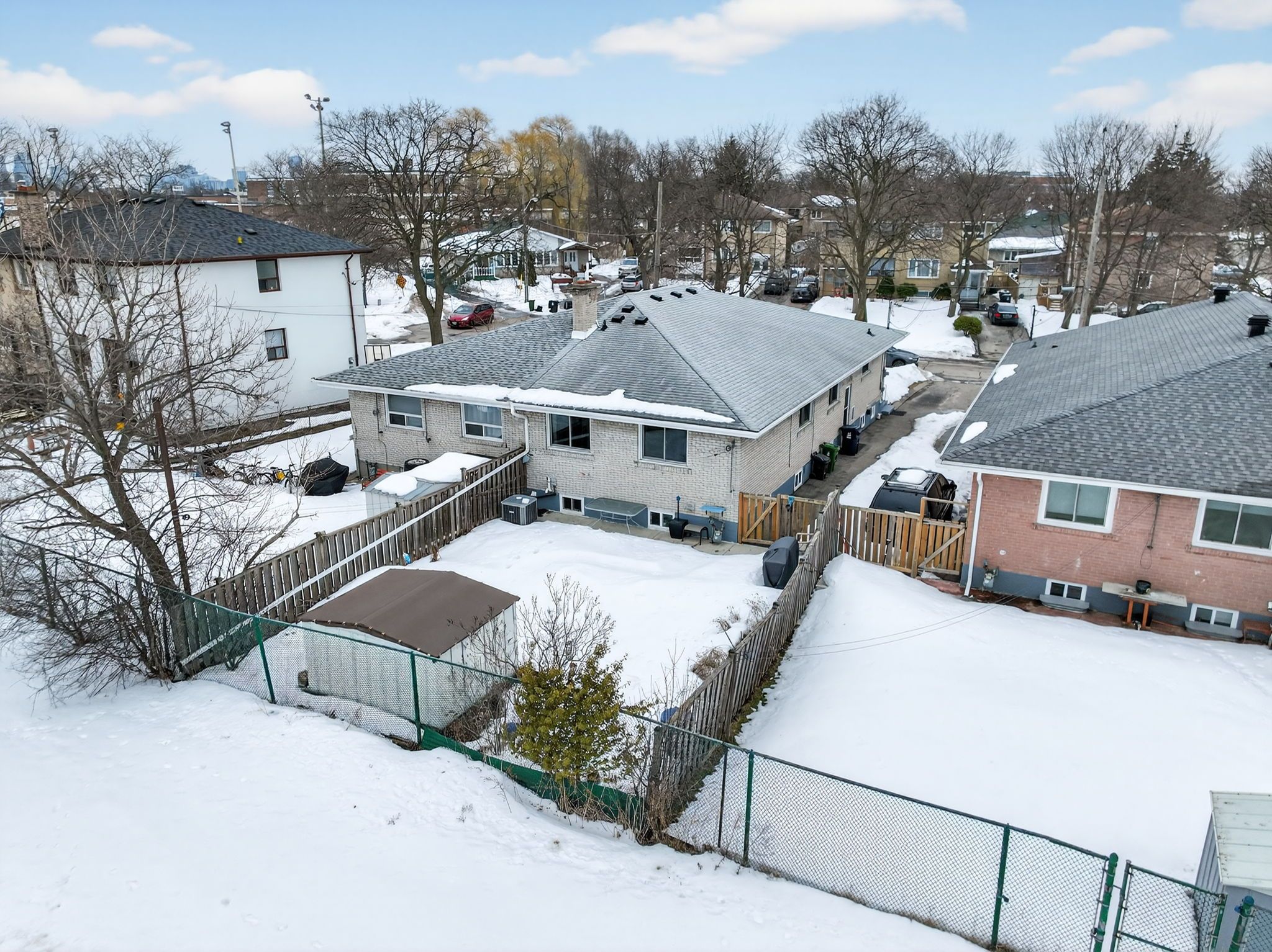 Welcome to this spacious semi-detached bungalow nestled on a quiet street in a sought after convenient location. The bright main level features four well-sized bedrooms, a bathroom, and comfortable living dining combination, creating an inviting space for both everyday living and entertaining. The eat-in kitchen offers plenty of room for casual family meals, while large windows throughout the home bring in an abundance of natural light. The finished lower level features a fully equipped in-law suite with a separate entrance, providing excellent flexibility for extended family living. Complete with its own kitchen, bedroom, two bathrooms, laundry, and a large storage closet, this level offers both privacy and functionality. The fully fenced oversized backyard with a large patio is great for entertaining and features a garden shed for seasonal storage. Located in a peaceful, family-friendly neighbourhood close to transit, shopping, and scenic walking trails, this home combines comfort, versatility, and everyday convenience. An excellent opportunity for families or those seeking multi-generational living space.
