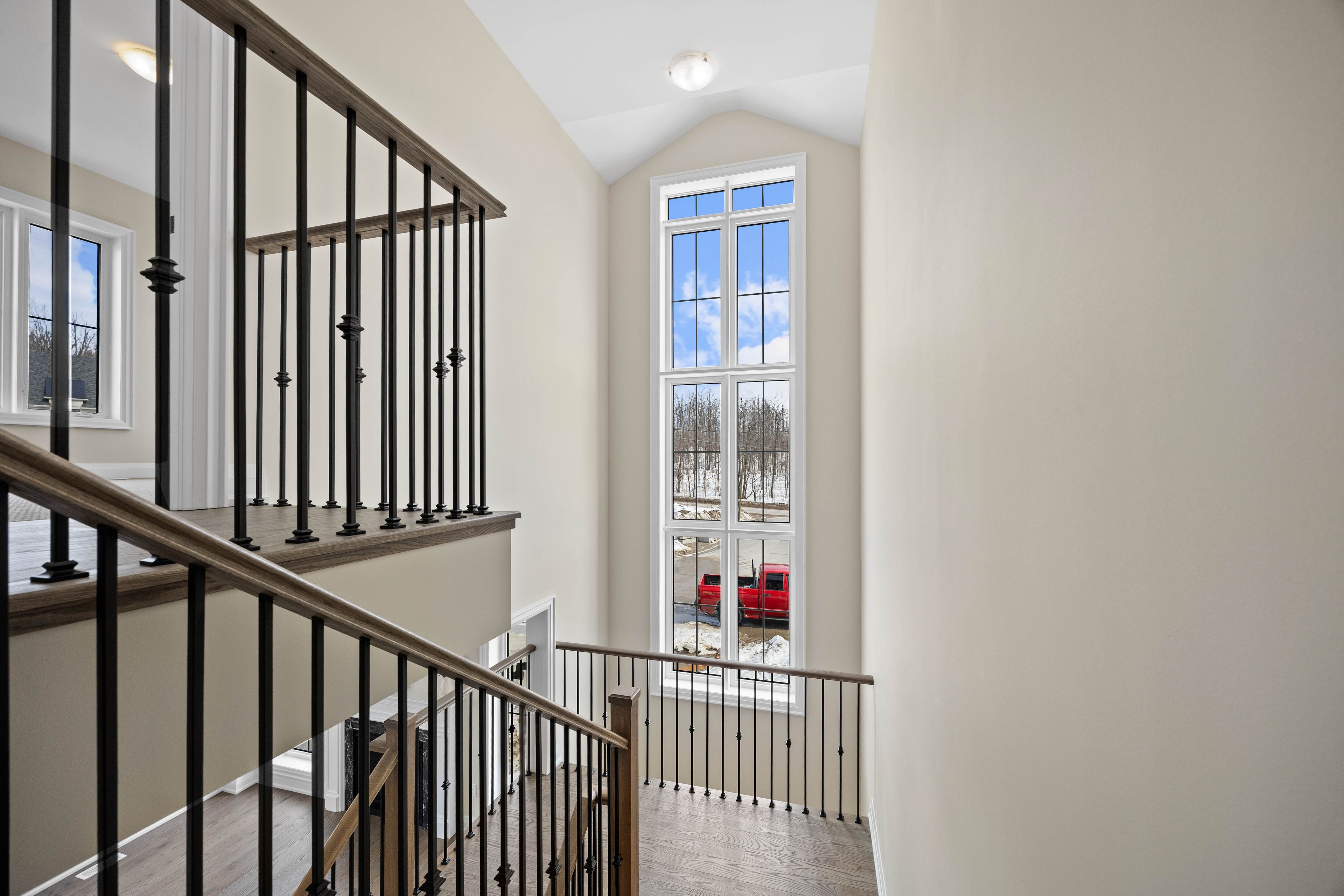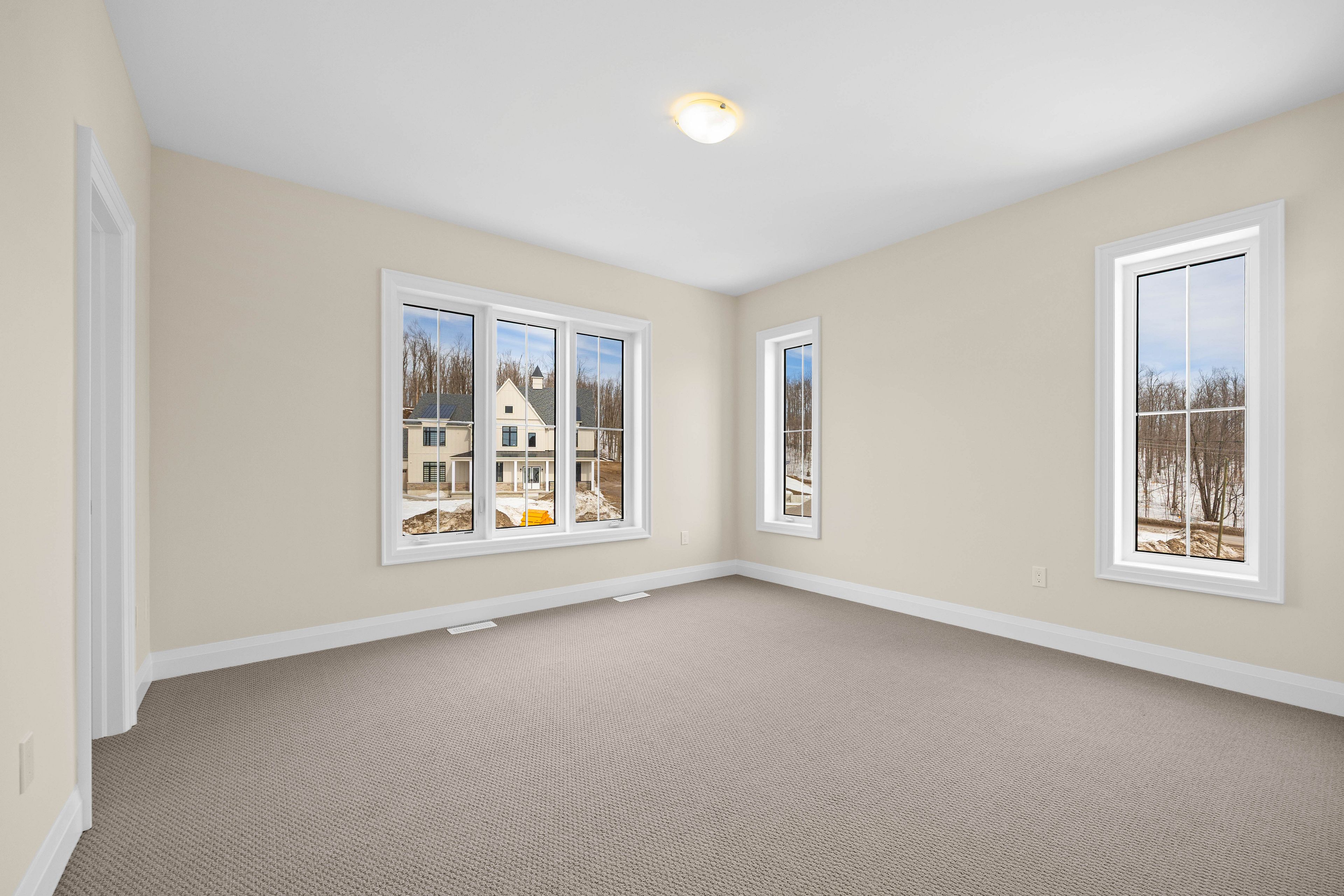 This exceptional executive-style corner residence showcases a refined blend of luxury, scale, and natural light throughout. The main living areas feature a dramatic open-concept design with soaring ceilings, expansive windows, and seamless transitions between the kitchen, dining, and living spaces-creating an atmosphere that feels both grand and warmly inviting. At the heart of the home, the chef-inspired kitchen impresses with a substantial island, premium cabinetry, sleek countertops, butler's pantry and high-end appliances. Designed to be both visually stunning and highly functional, it offers the perfect setting for entertaining or everyday living. Architectural details, a striking statement staircase, custom millwork, and carefully curated finishes elevate the home far beyond standard builder construction. The primary suite offers a true retreat experience with its expansive layout, oversized walkand in closet, and spa-inspired ensuite. A freestanding soaker tub, glass-enclosed shower, and double vanity are beautifully framed by large windows that flood the space with natural light. Additional bedrooms are generously proportioned with clean, modern finishes and excellent closet space, providing flexibility for family living, guests, or a sophisticated home office. Bathrooms throughout the home continue the same elevated design standard, featuring contemporary fixtures and timeless materials. Outdoor living is equally impressive. The exterior blends modern siding with elegant stonework, delivering polished curb appeal and a distinctly upscale presence. Set in a location that offers both privacy and a rare sense of openness for a newer community, this property stands apart. From its architectural character to its thoughtfully selected finishes, this home presents a rare opportunity to enjoy a luxury that feels custom-built-offering comfort, sophistication, and exceptional design at every turn.