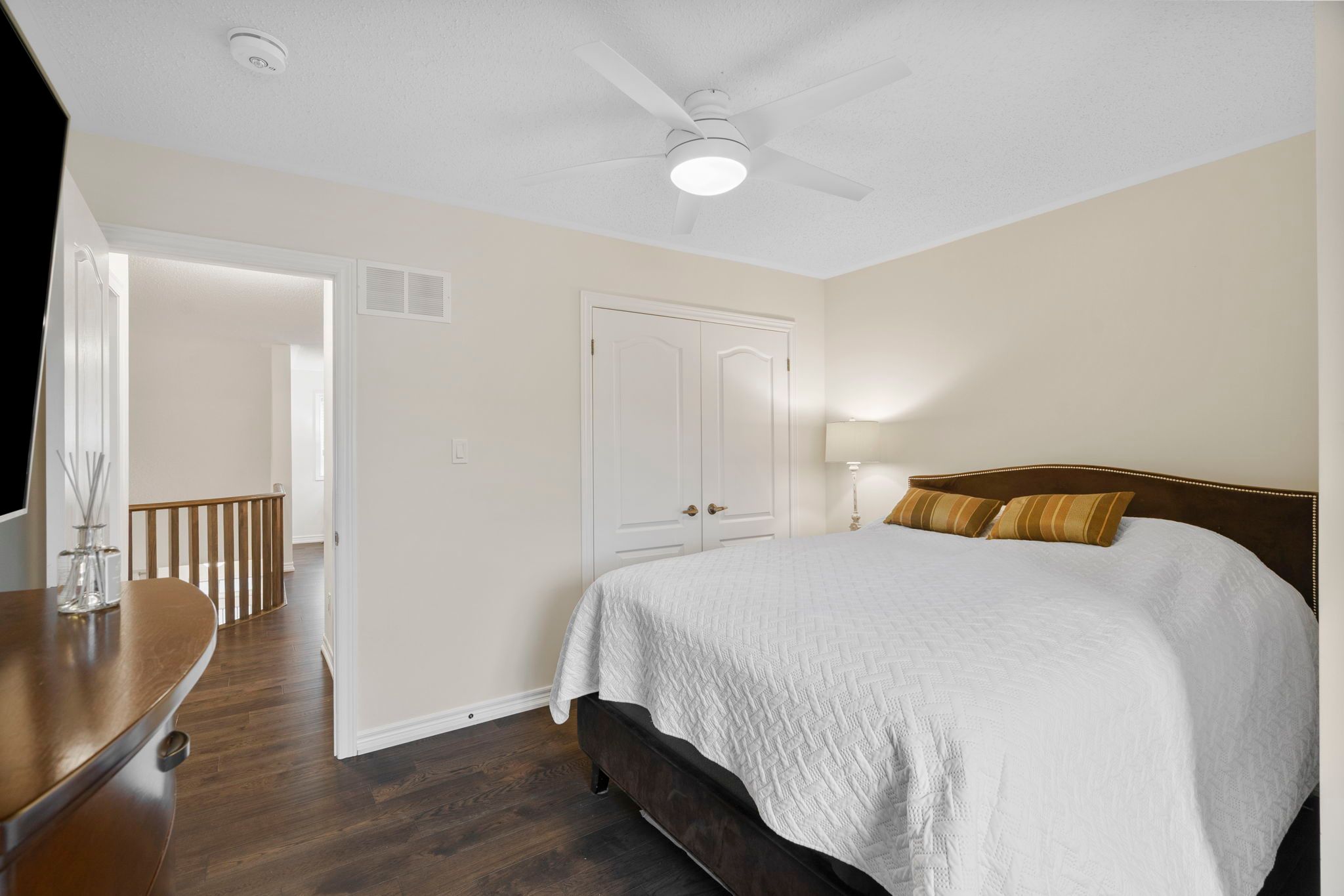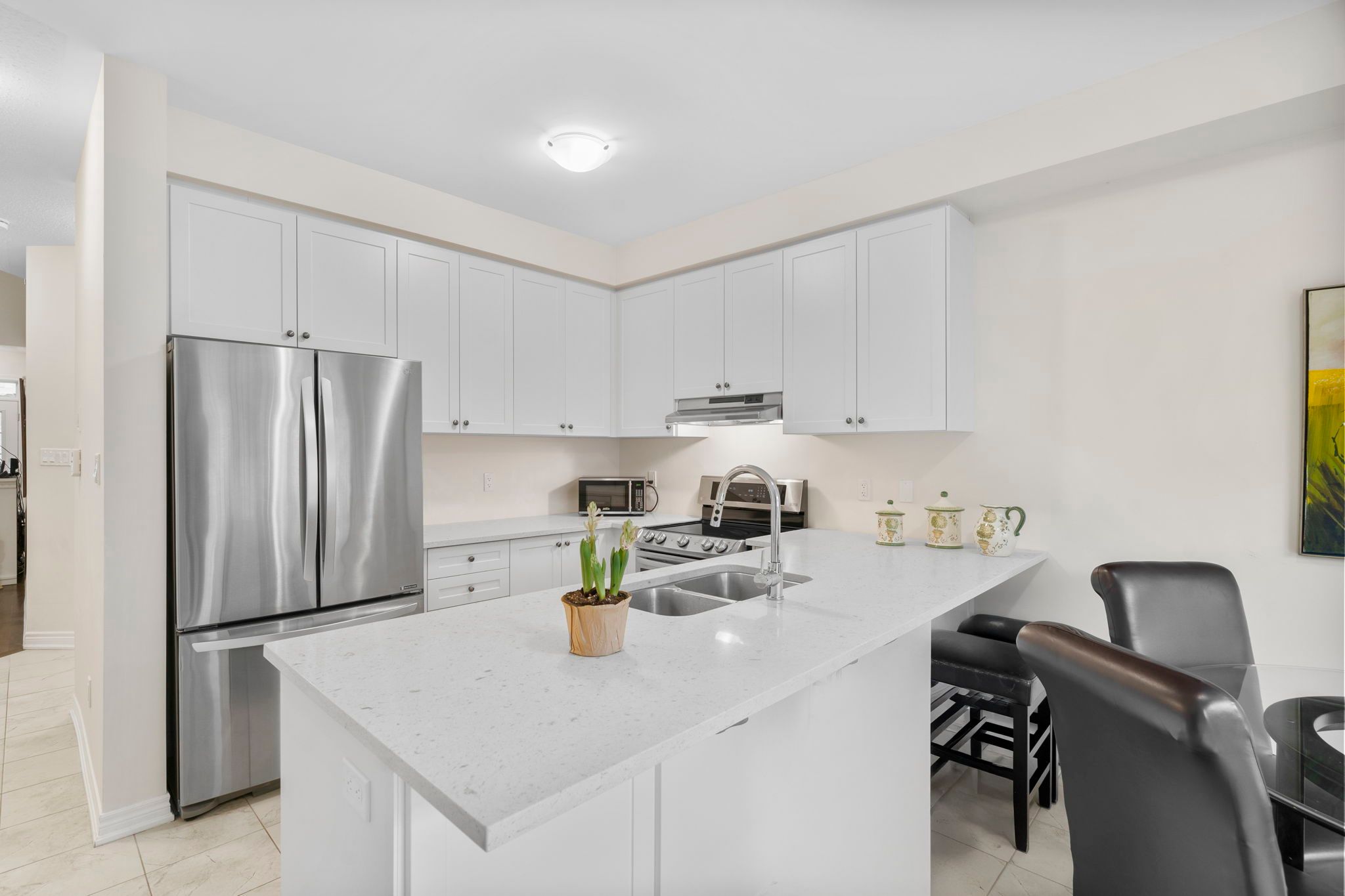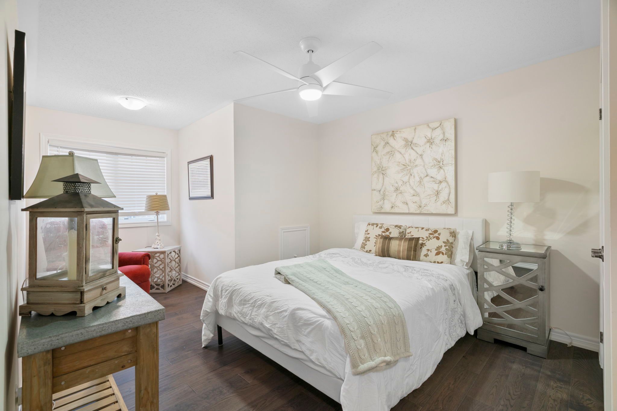 Elegant adult lifestyle living in gated rosedale village discover the perfect blend of luxury, comfort, and convenience in this beautifully upgraded townhome within the sought-after rosedale village community. The luxurious primary bedroom on the main floor offers ultimate comfort with a spa-like ensuite bath, ensuring convenience and elegance. Designed for bright, open-concept living, this home features 9-ft ceilings, upgraded hardwood floors throughout, and a versatile layout with two spacious bedrooms plus a den, ideal for a home office or guest space. The sun-filled eat-in kitchen boasts quartz countertops, stainless steel appliances, ample pantry storage, and a bbq gas line, making it perfect for entertaining. Additional upgrades include an elegant staircase with upgraded spindles, a furnace humidifier, hrv system, drain water heat recovery system, ceiling fans, a garage door opener, and a unilock patio for effortless indoor-outdoor living. Resort-style amenities & maintenance-free living enjoy an active, worry-free lifestyle with exclusive access to a private 9-hole golf course, indoor pool, tennis and pickleball courts, a gym, library, fitness classes, meeting rooms, scenic walking paths, and a vibrant calendar of social events and excursions. Plus, yourmonthly fees include security/concierge service, lawn care, gardening, and snow removal, so you can relax and enjoy life. Prime location ideally situated near shopping, healthcare, and major highways, this home offers unmatched convenience in a secure, beautifully maintained community. A rare opportunity to enjoy upscale, stress-free secure living in rosedale village!