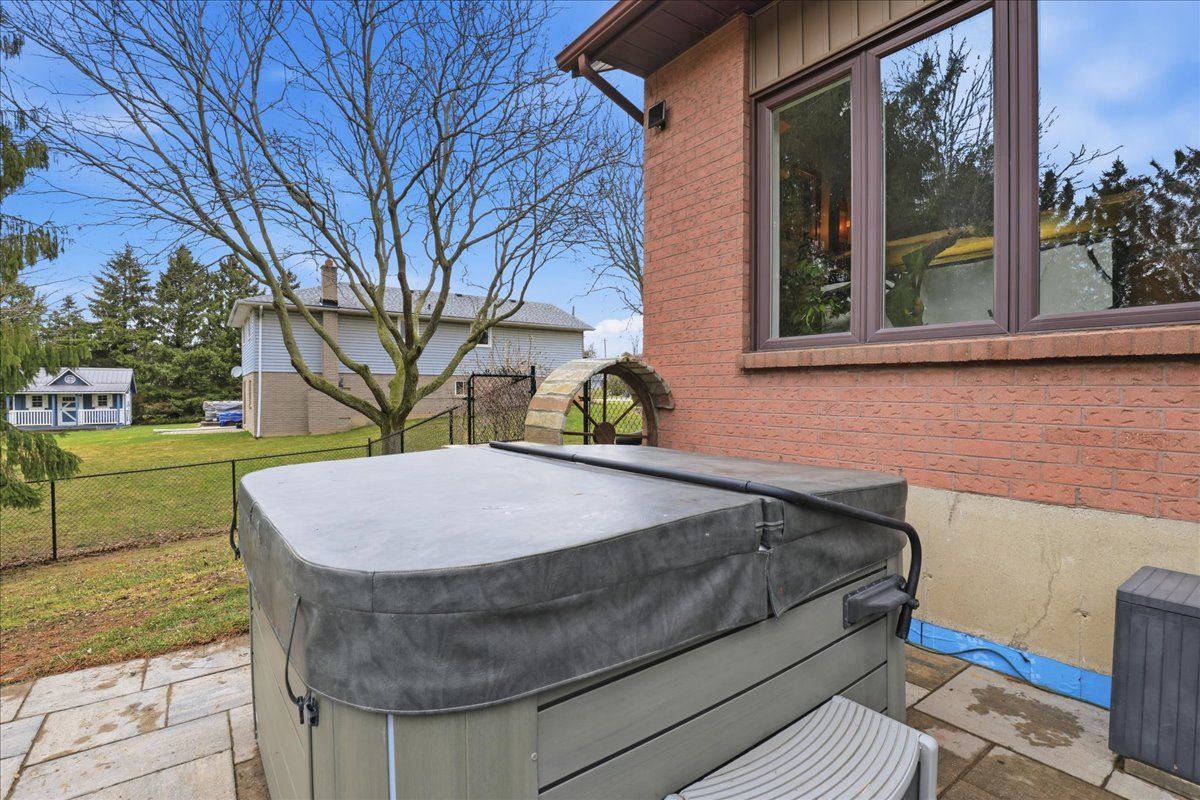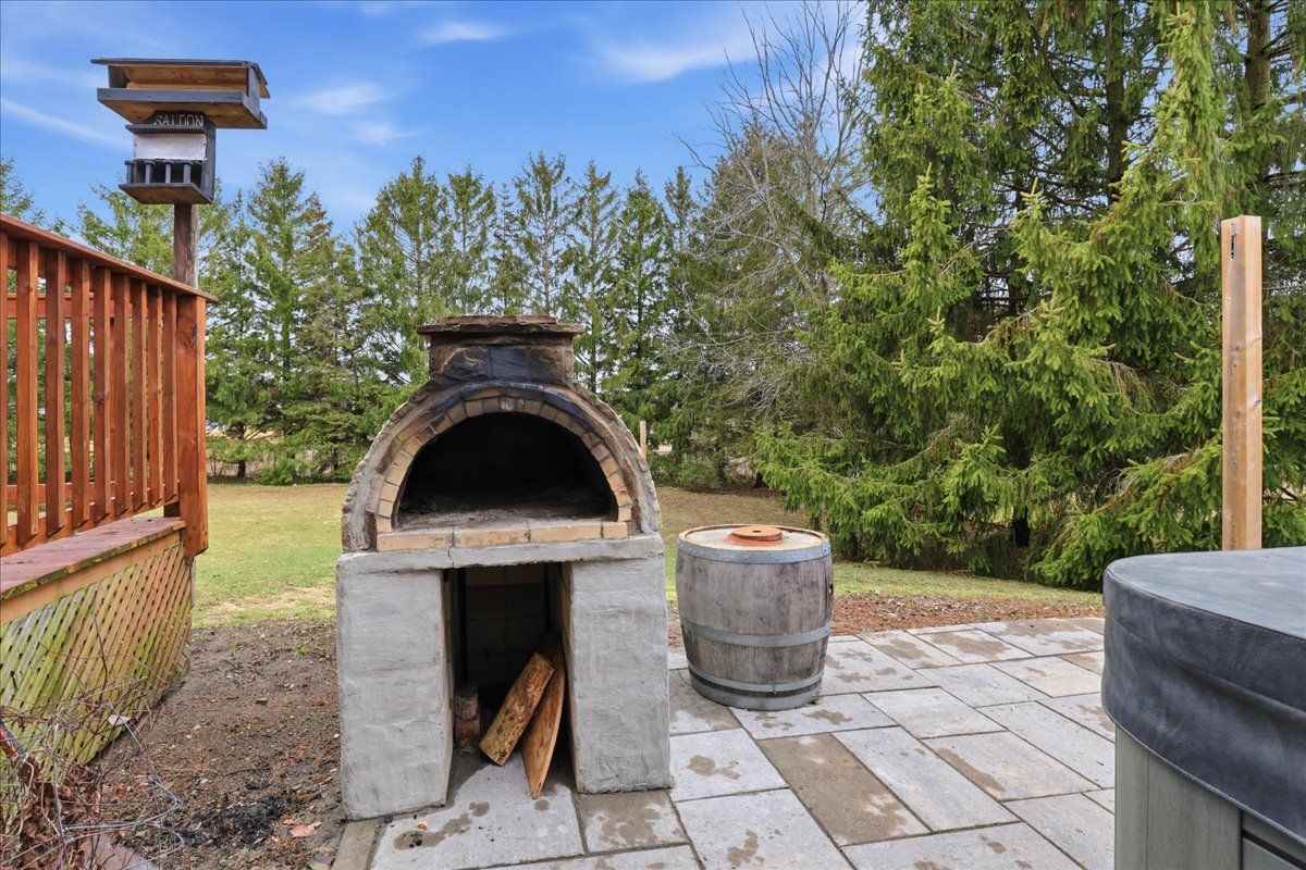 • Large backyard oasis with a deck, hot tub, and pizza oven.