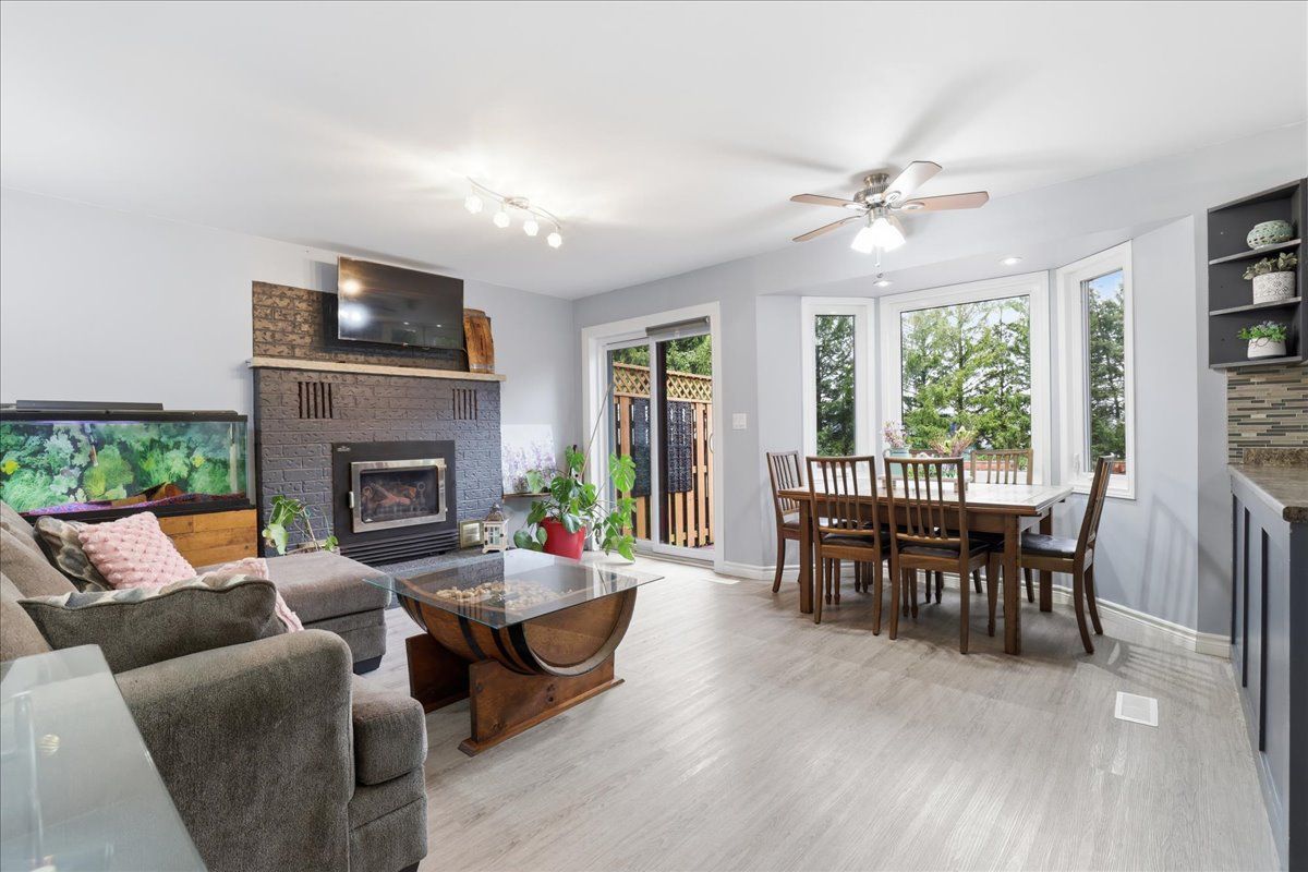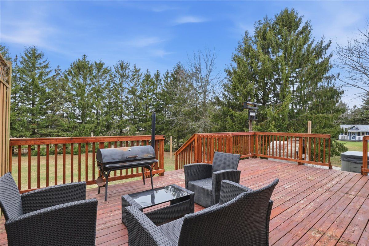 Welcome to 6 bannister - the perfect blend of space, comfort, and country charm! Situated on a generous lot in a peaceful setting, this beautifully maintained 2-storey home offers the ideal lifestyle for families seeking space both inside and out. Featuring a double car garage and oversized driveway, there's plenty of room for vehicles, toys, and guests. Step inside to a bright and inviting main floor with a functional layout, highlighted by a spacious living room with cozy fireplace, perfect for relaxing or entertaining. The updated kitchen offers ample cabinetry, modern finishes, and flows seamlessly into the dining area with walkout to your private backyard deck. Upstairs, you'll find well-sized bedrooms including a large primary retreat, while the updated bathrooms add a touch of modern comfort. The lower level offers additional space with a rec room and workshop area, ideal for hobbies, storage, or future customization. Step outside to your backyard oasis featuring a large deck, hot tub, and custom outdoor pizza oven-perfect for hosting, relaxing, and enjoying the outdoors year-round. Bonus features include a unique games/entertainment room with bar area, updated flooring throughout, and plenty of natural light. Located in a quiet, family-friendly area while still being a short drive to amenities, this is a rare opportunity to enjoy space, privacy, and lifestyle all in one. Don't miss your chance to call this incredible property home!