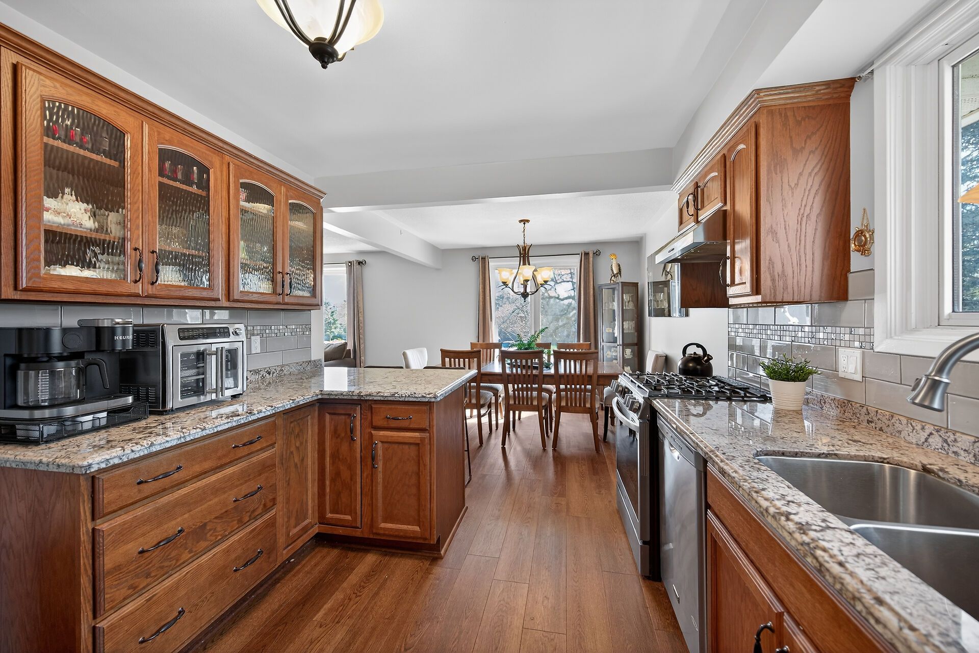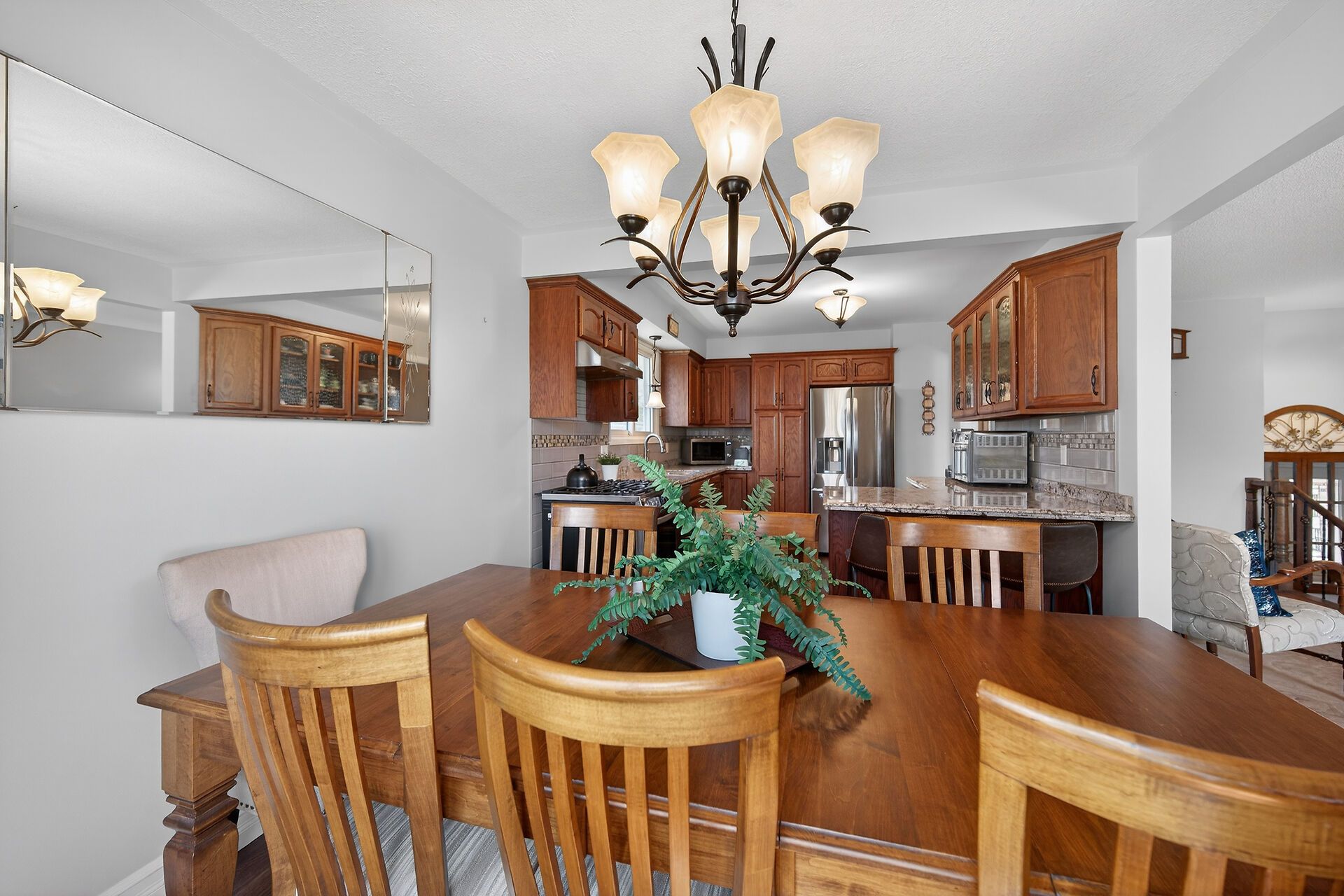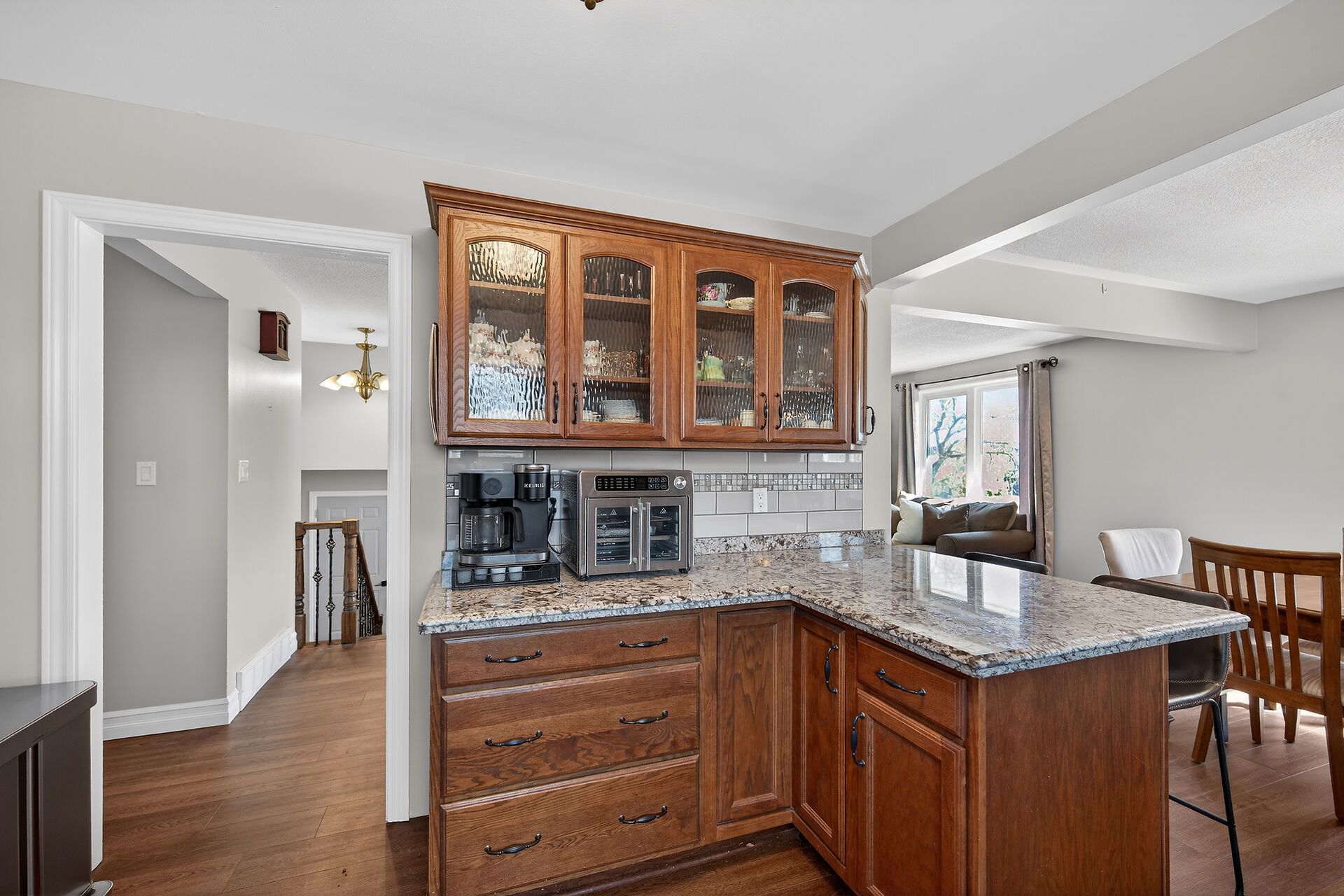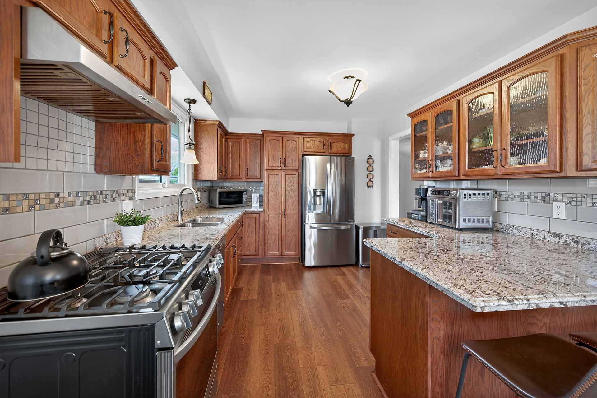 • Updated kitchen with breakfast bar, oak cabinets, and pantry.