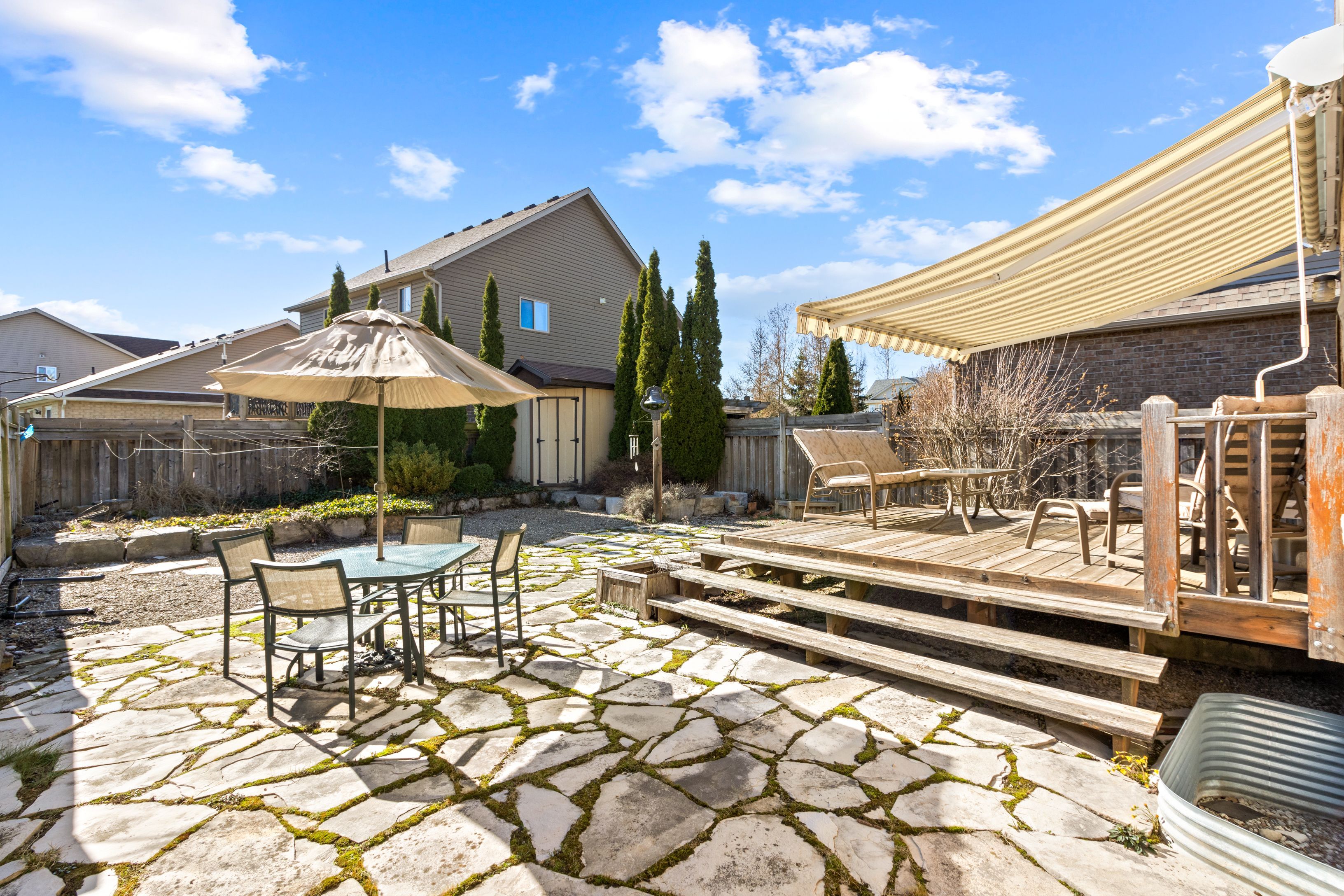 • Beautifully landscaped backyard with a spacious deck and ornamental pond.