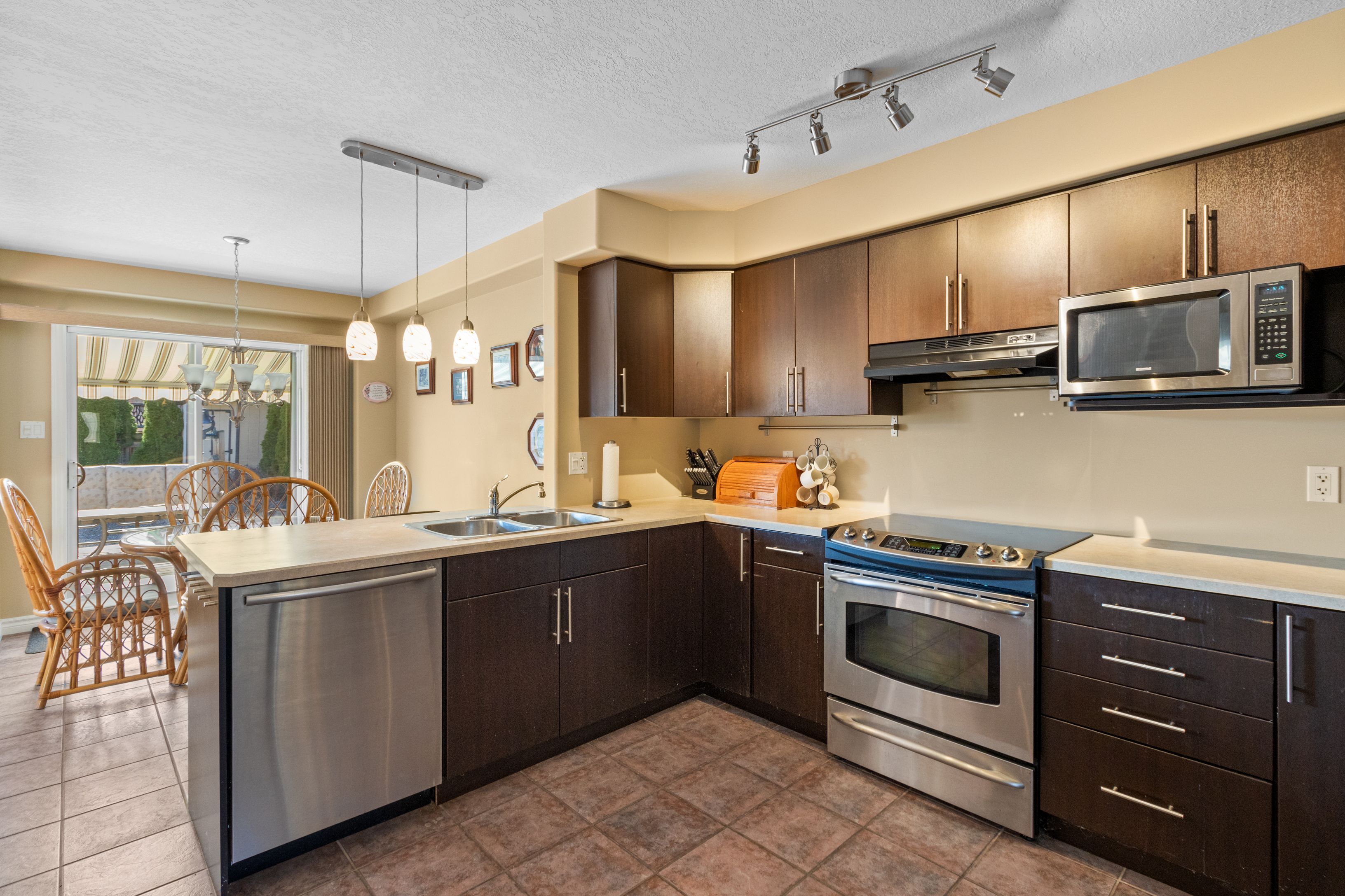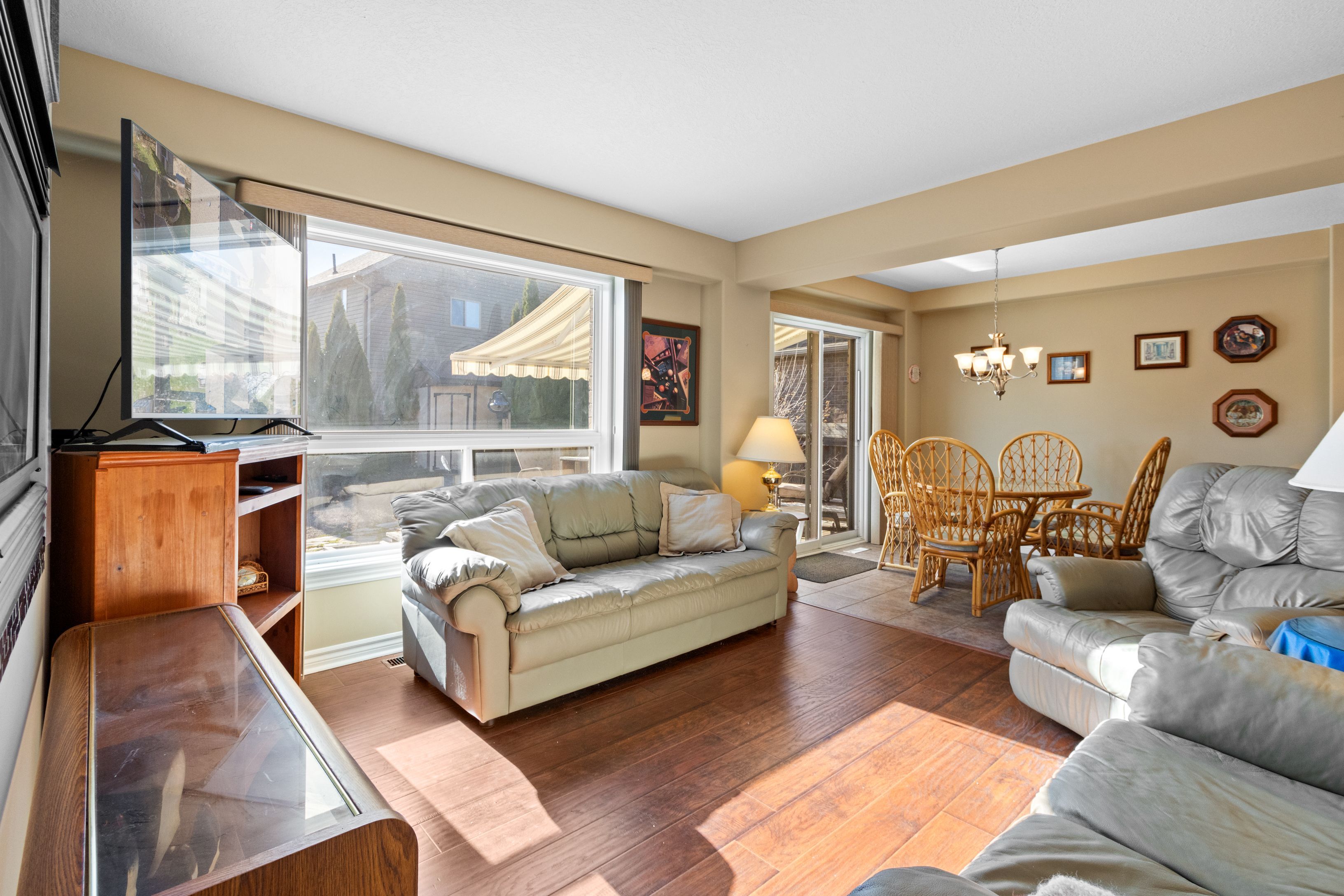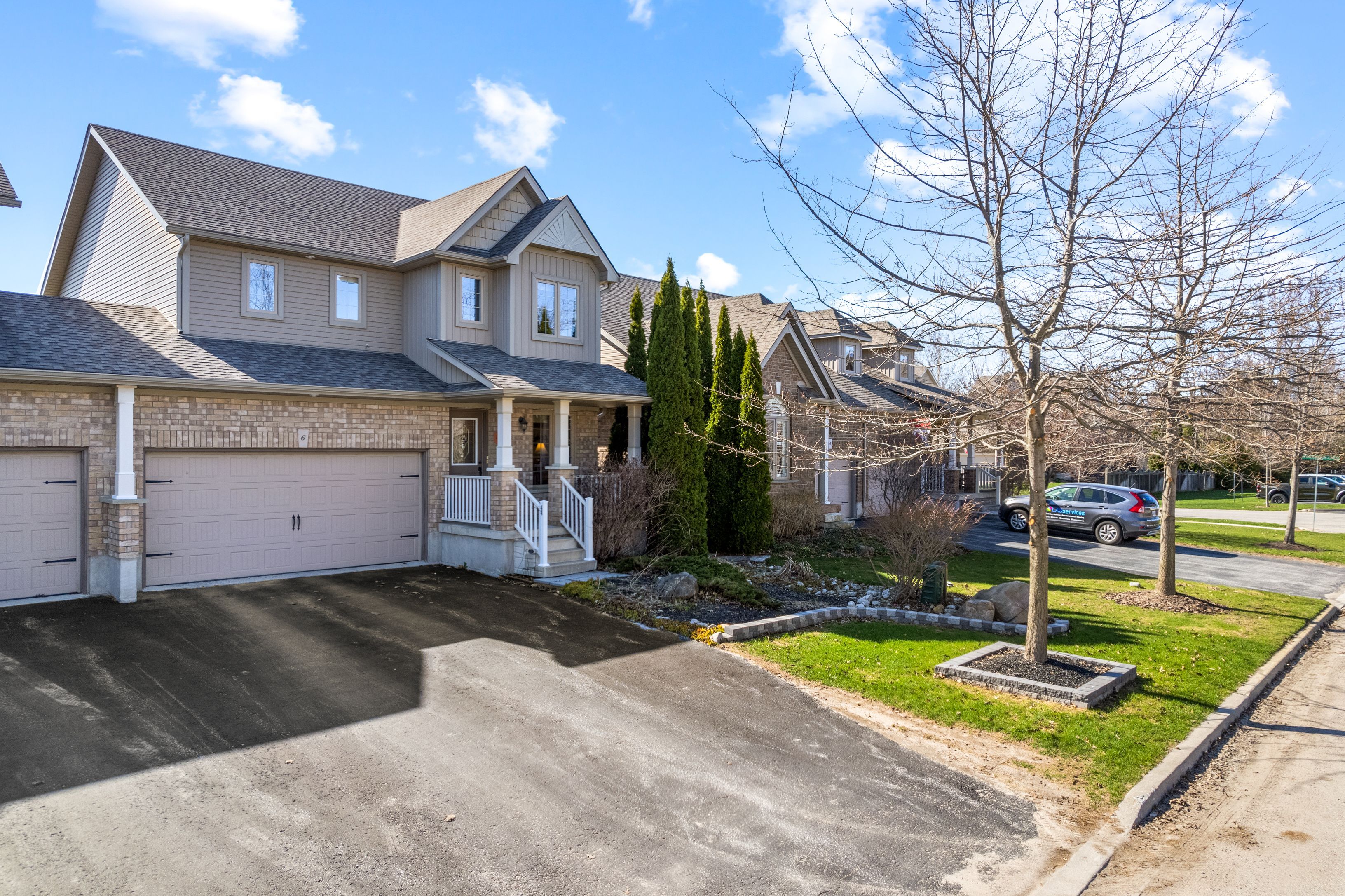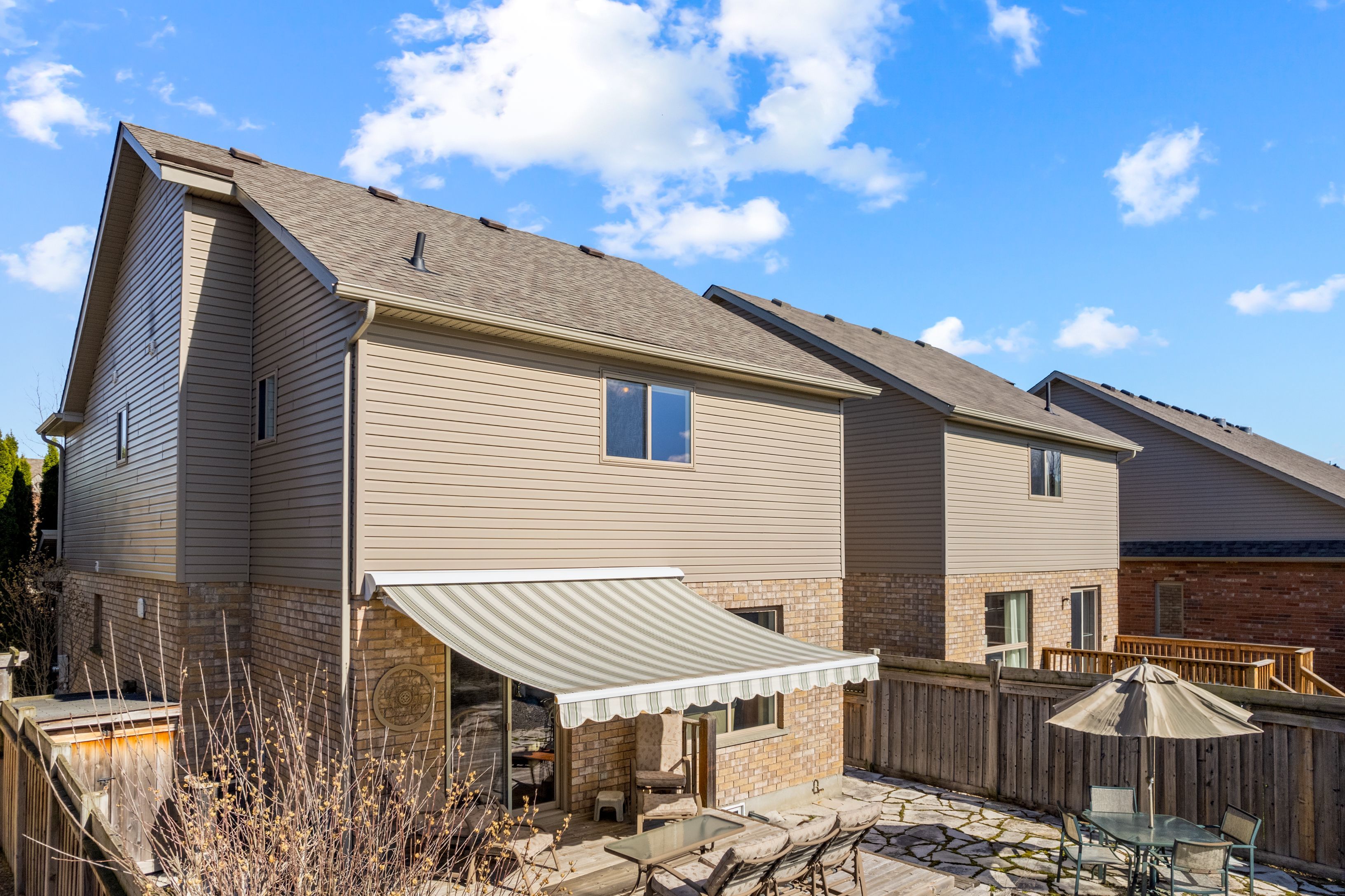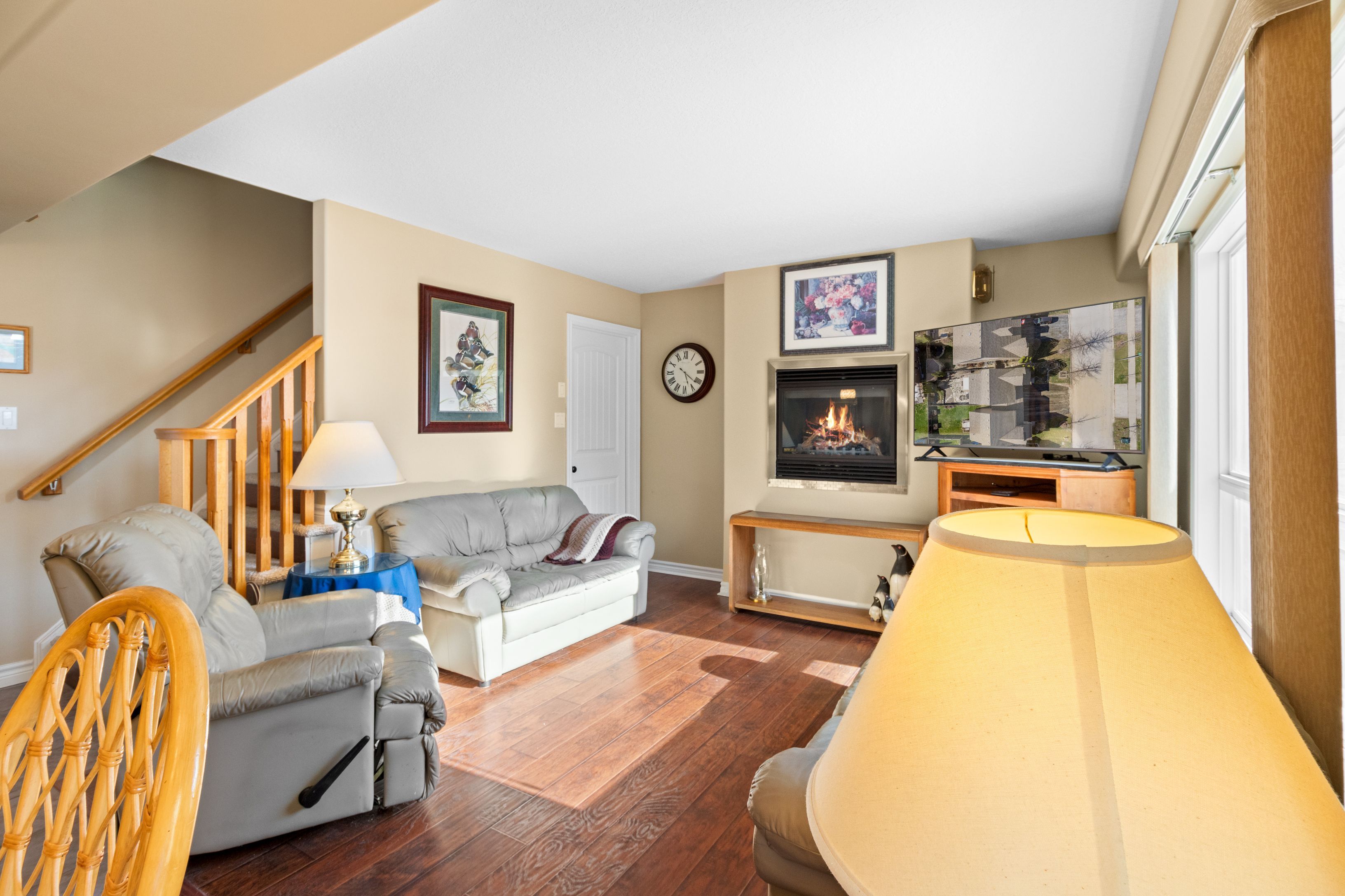 Welcome to this lovely 3-bedroom, 2. 5-bathroom townhome in the family-friendly community of creekside - an ideal place to call home. Perfectly located just minutes from local amenities, walking trails and a community park, this home offers both convenience and lifestyle. Enjoy your morning coffee on the charming front porch before stepping inside to a bright, open-concept living, dining and kitchen area, complete with a cozy gas fireplace and walk-out to a beautifully landscaped backyard. The outdoor space is a true retreat, featuring a spacious deck with retractable awning, flagstone patio, tranquil ornamental pond, garden shed and fully fenced yard. Upstairs, the generous primary suite offers mountain views, a large walk-in closet and a 5-piece ensuite. Two additional bedrooms and a 4-piece bathroom provide plenty of space for family or guests. Additional highlights include an unfinished basement ready for your personal touch, a new furnace (6 months ago), roof replaced 4-5 years ago and an oversized garage with convenient man-door access to the backyard. Short drive to ski hills, golf courses, georgian bay and downtown collingwood. A fantastic home in a welcoming neighbourhood - perfect for families, retirees or anyone looking to enjoy a vibrant, connected lifestyle.