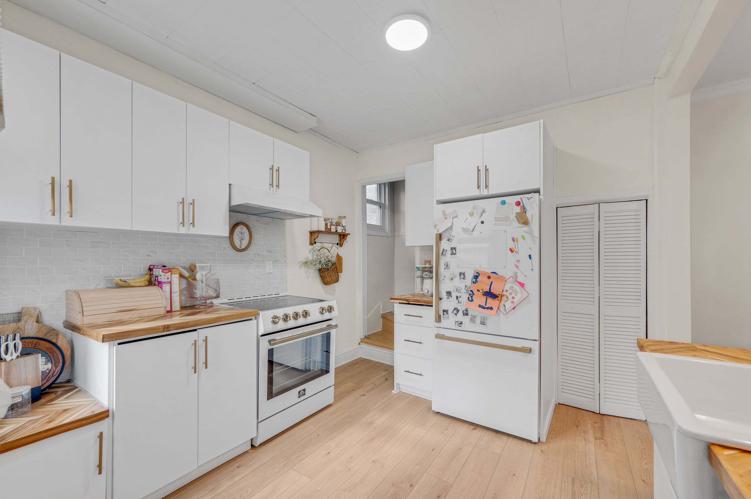 Desirable hamilton mountain location! Stylish and beautifully updated 1. 5-storey brick home with 3 bedrooms and 1 bathroom and private 2 car drive. This move-in-ready property showcases modern finishes throughout, including new flooring, a renovated kitchen with new countertops, island with built in mini fridge and new appliances. Additional upgrades include a new furnace, updated bathroom new washer and dryer and freshly painted through out. The open-concept kitchen and dining area create a bright and functional space, ideal for both everyday living and entertaining. The home's thoughtfully designed interior blends comfort with contemporary style, making it perfect for first-time buyers or downsizers seeking a turnkey property. Enjoy a large private backyard featuring a new deck with privacy screen-perfect for relaxing or hosting. Situated on the mountain brow, close to scenic walking trails and breathtaking views. Conveniently located near vibrant concession street, offering trendy shops, cafés, and restaurants. A fantastic opportunity in a sought-after neighbourhood! Rsa