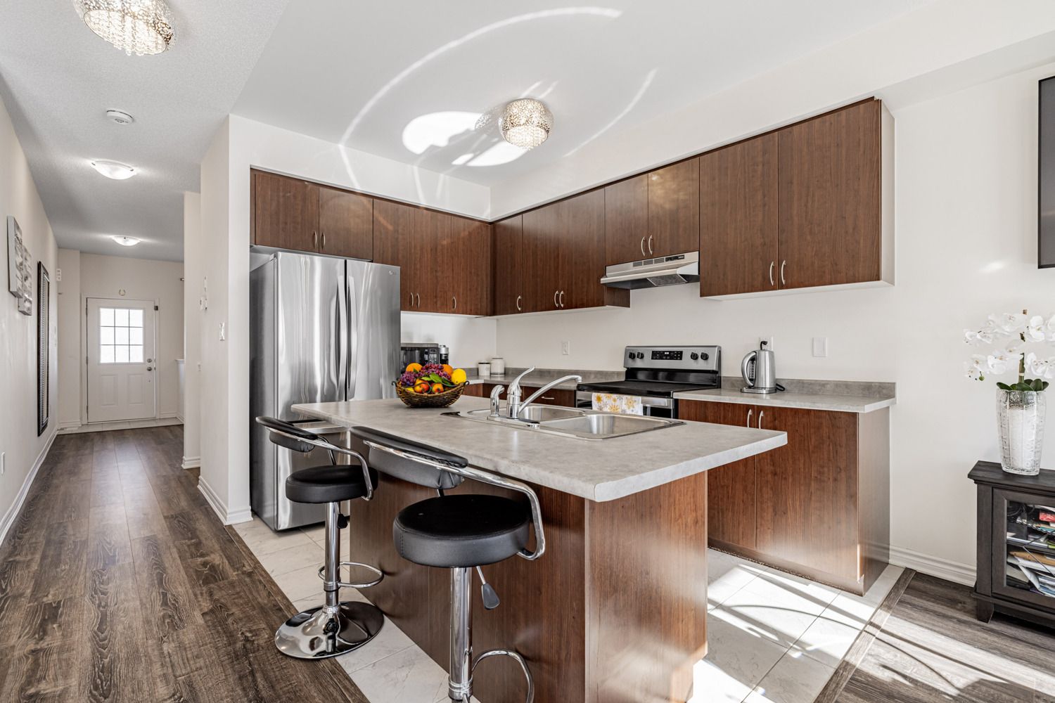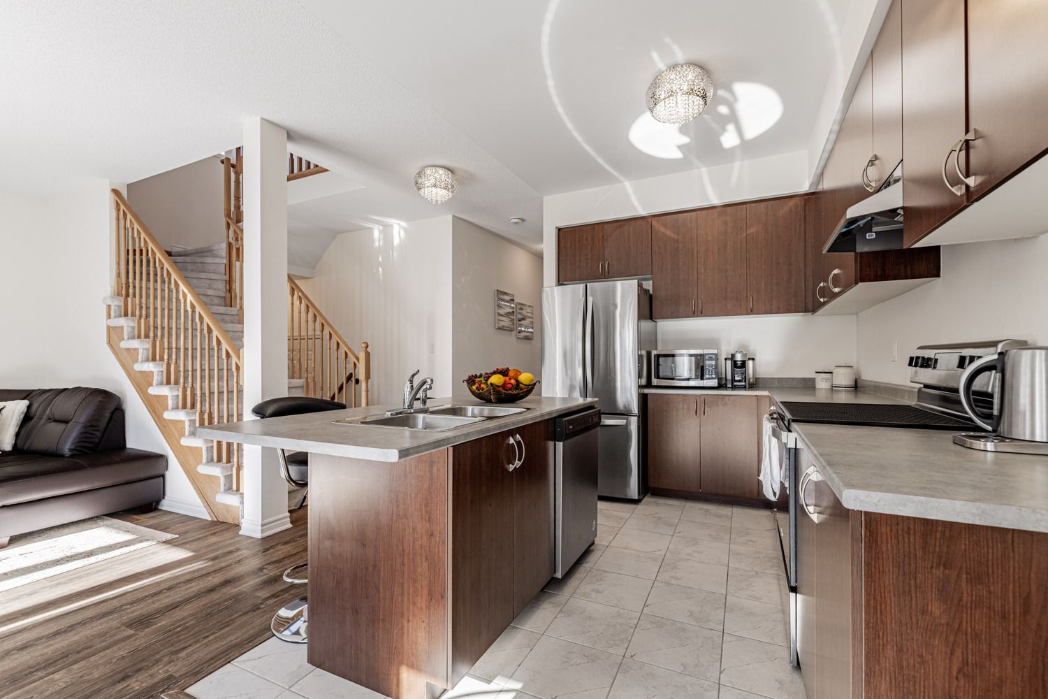 • Bright open-concept layout with 9-ft ceilings for modern living.