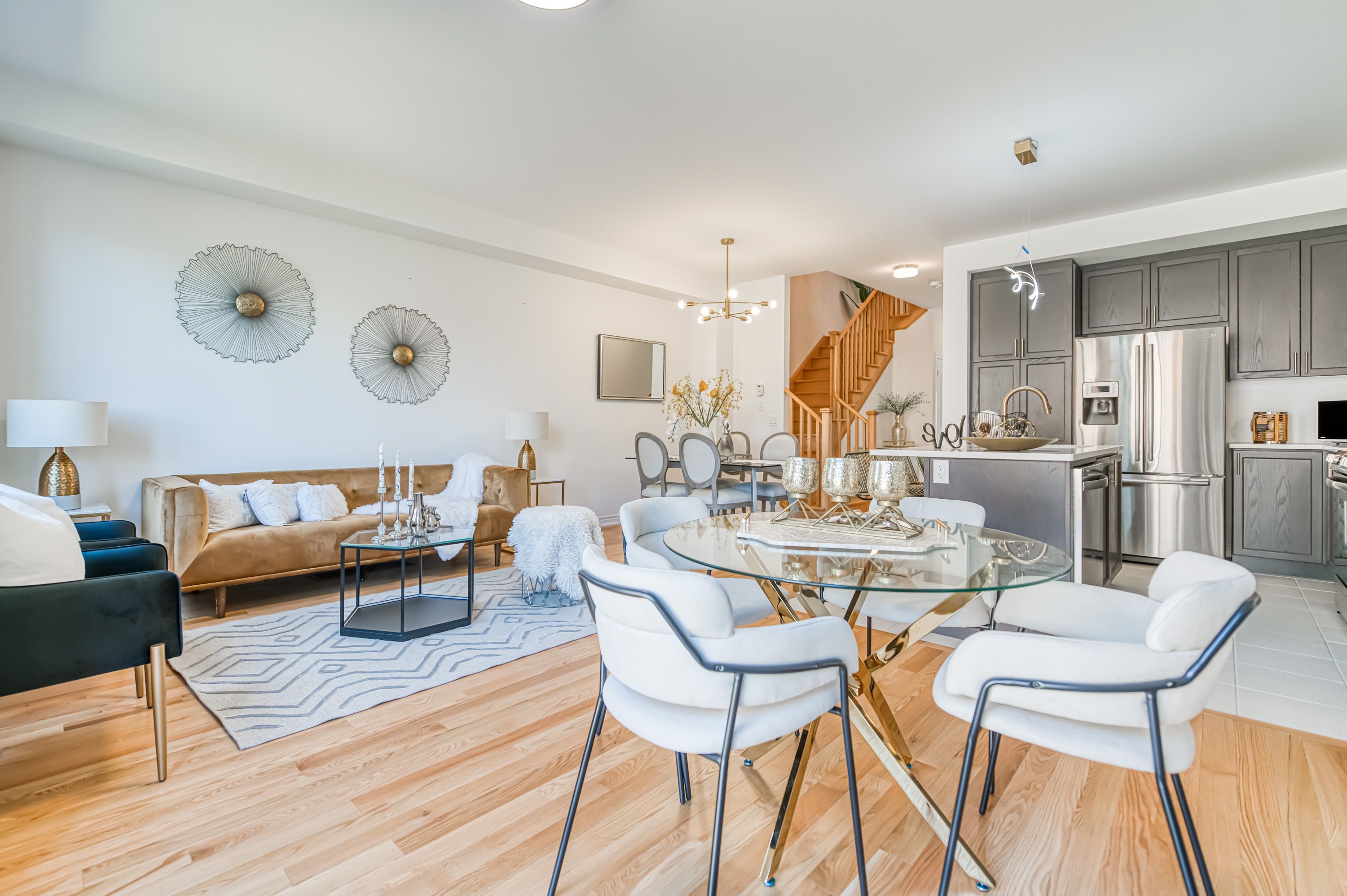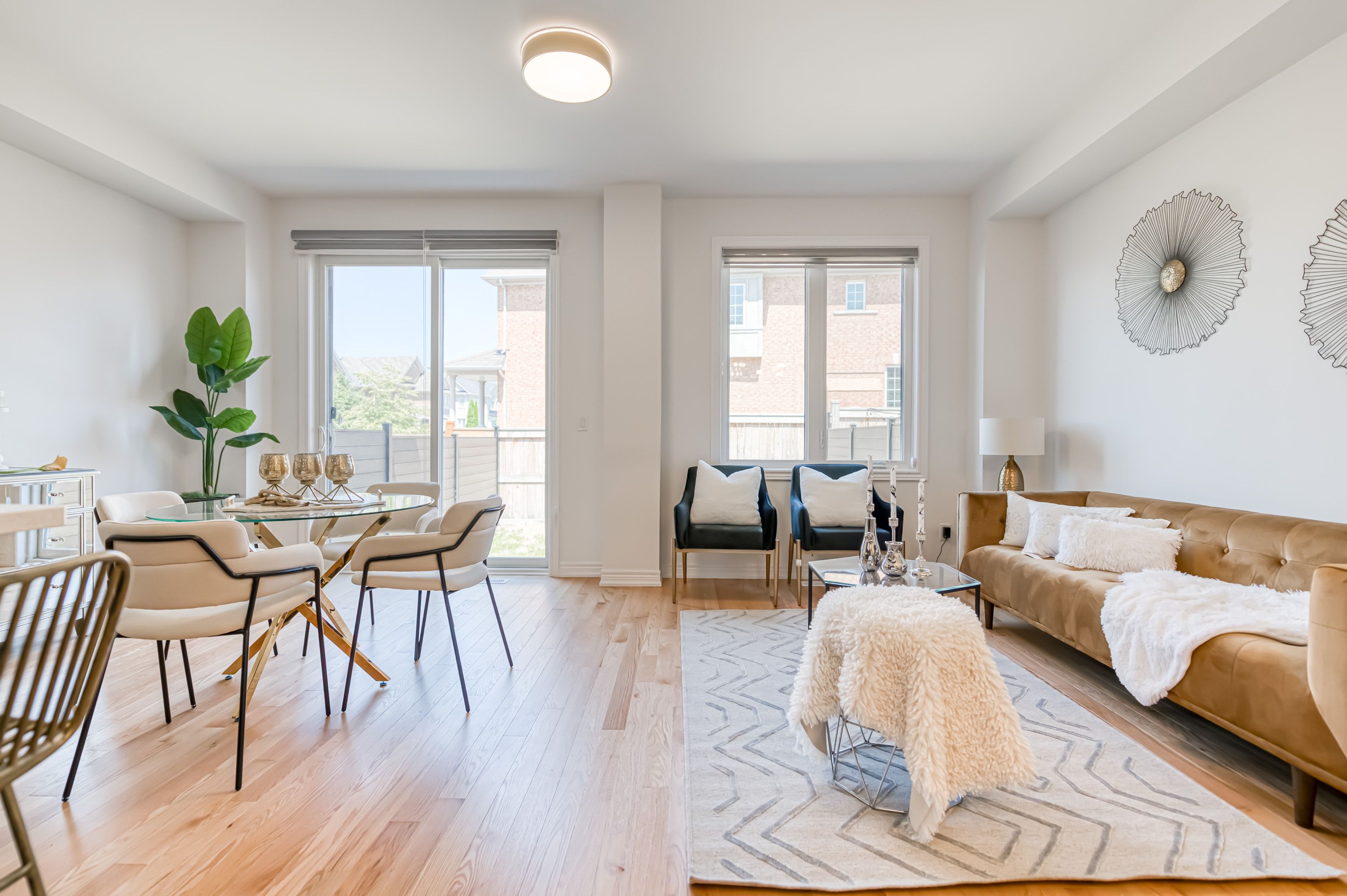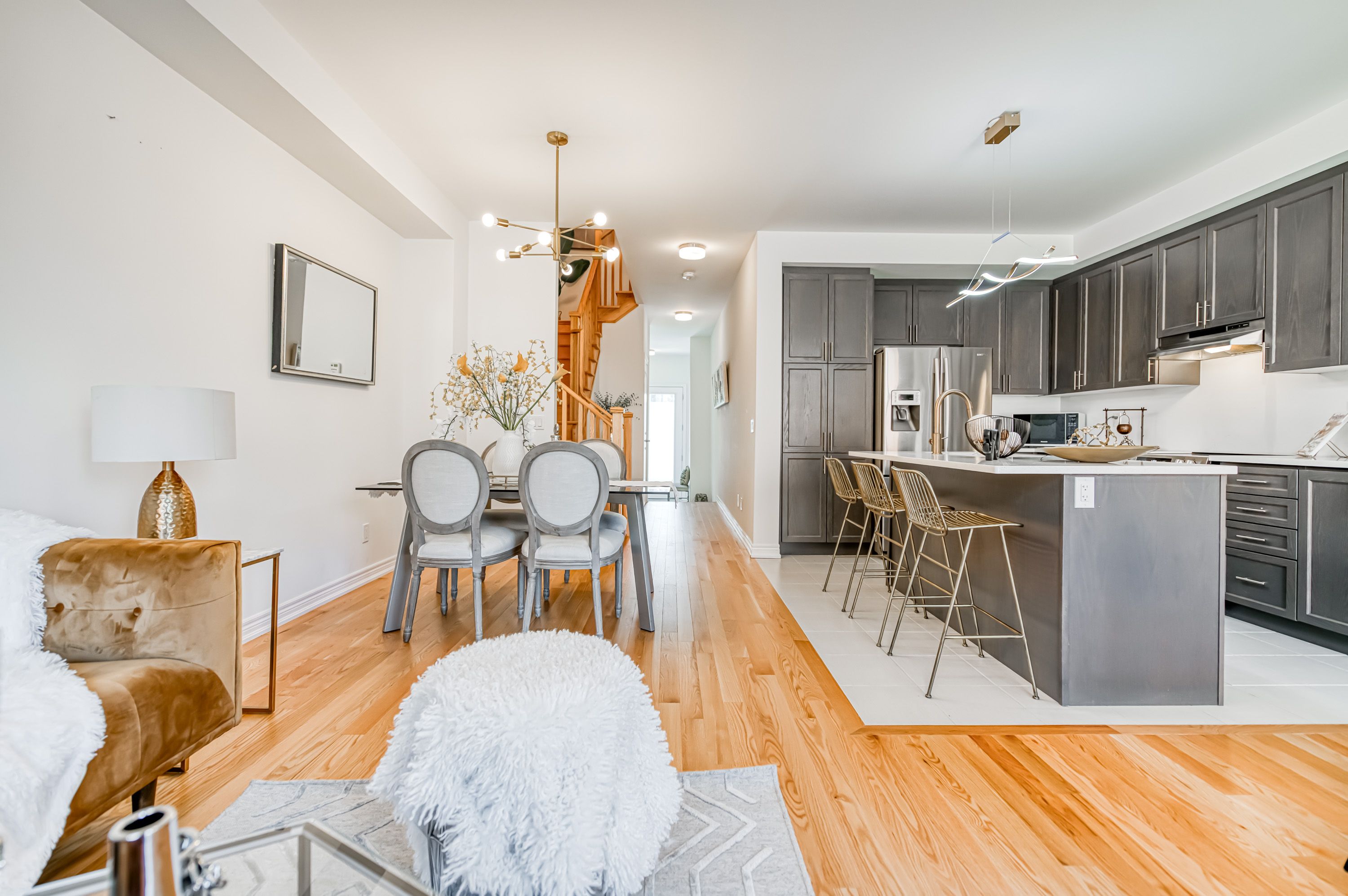 • Bright open concept layout with 9-foot ceilings and hardwood floors.