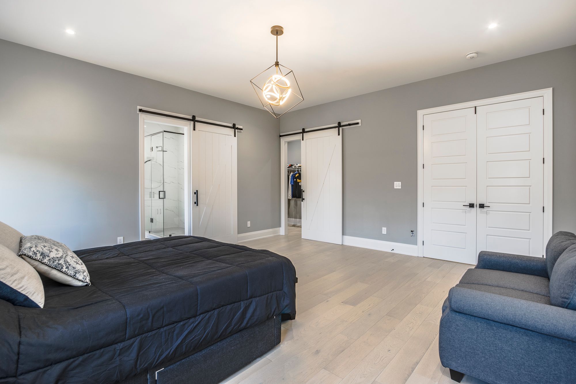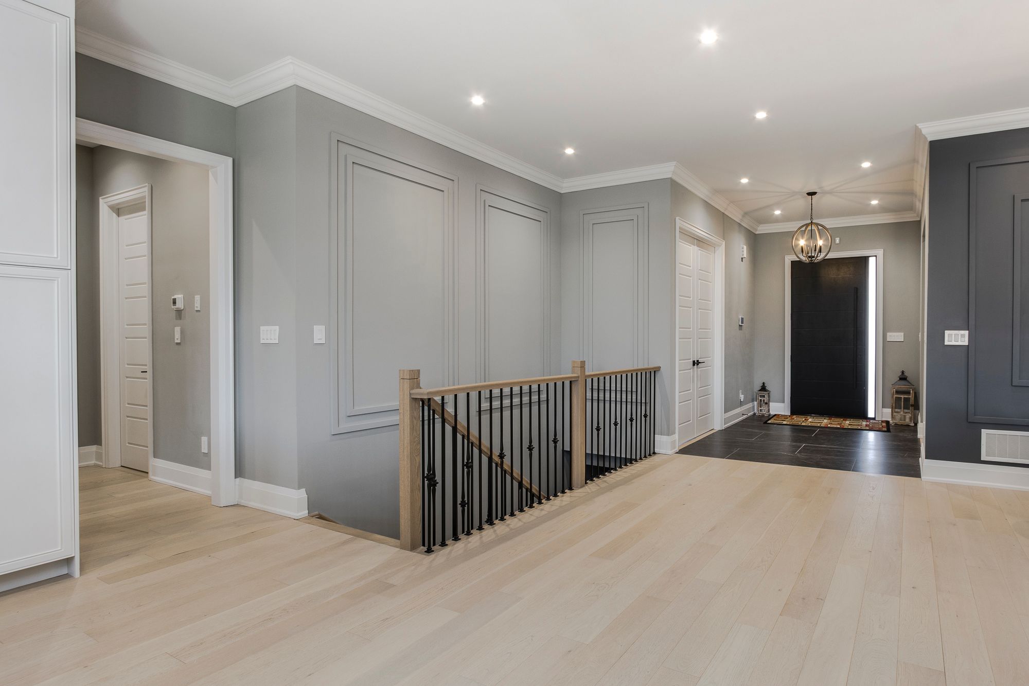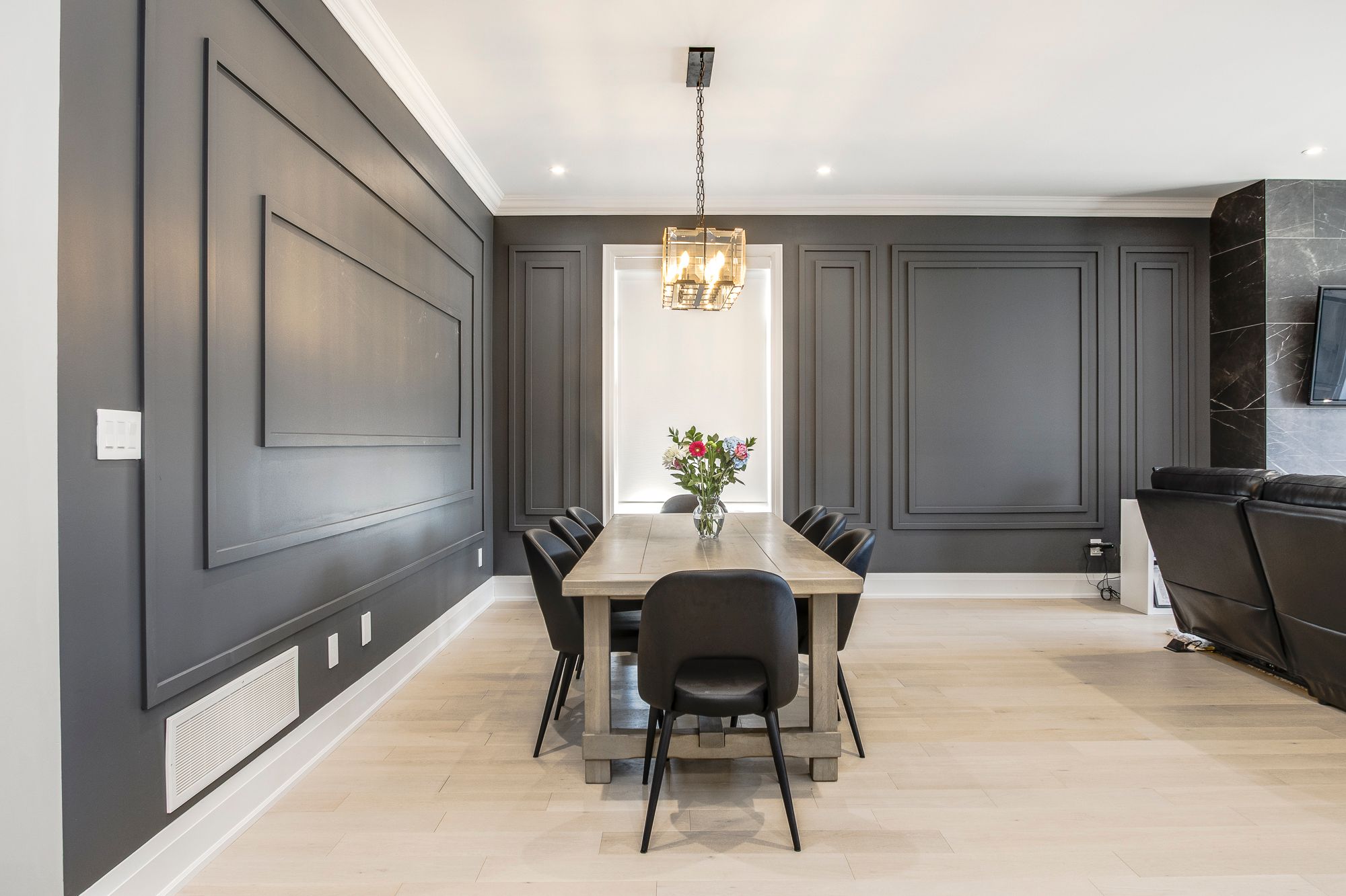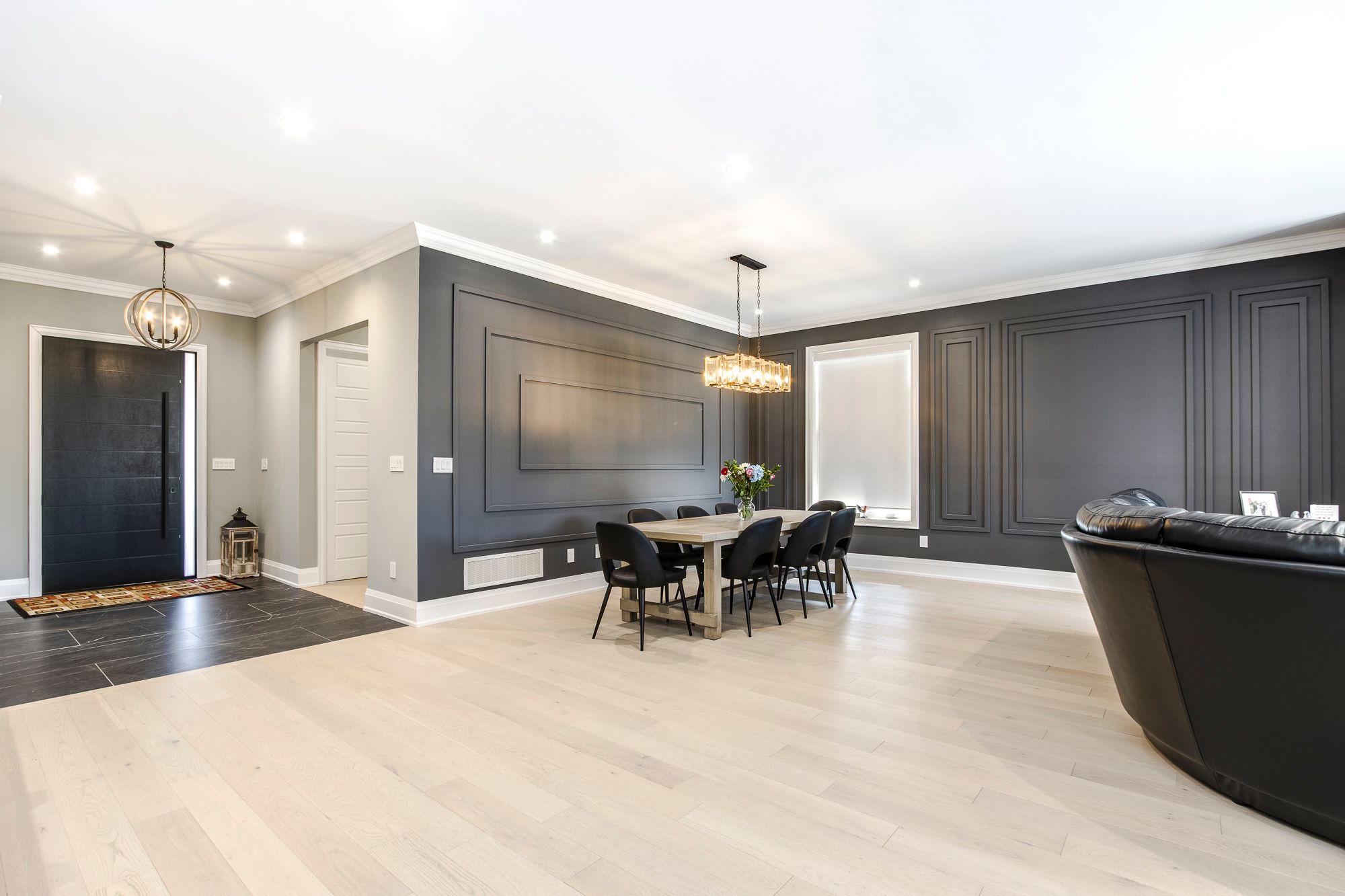 • Open concept layout with bold wall treatments and elegant flooring.