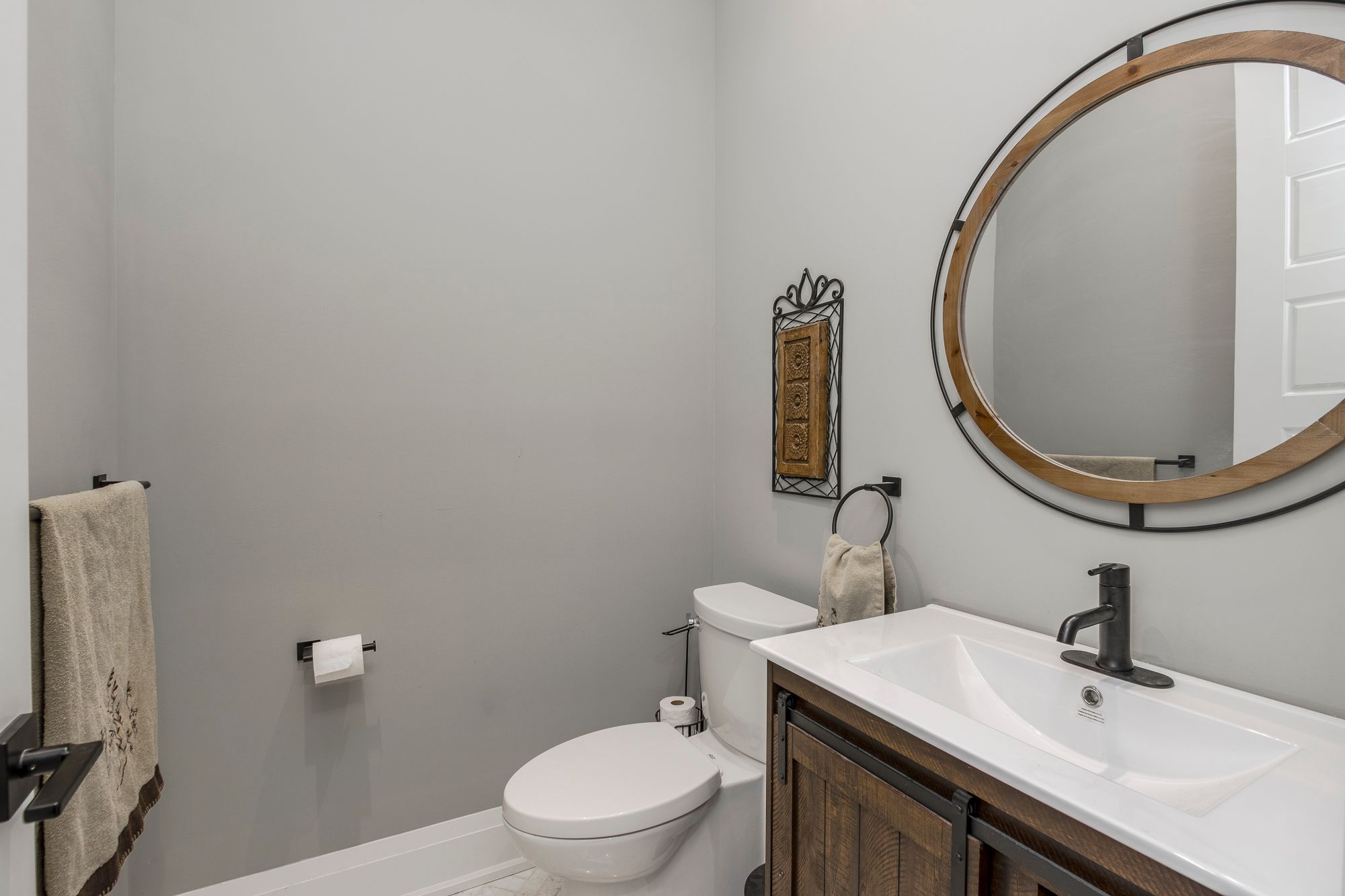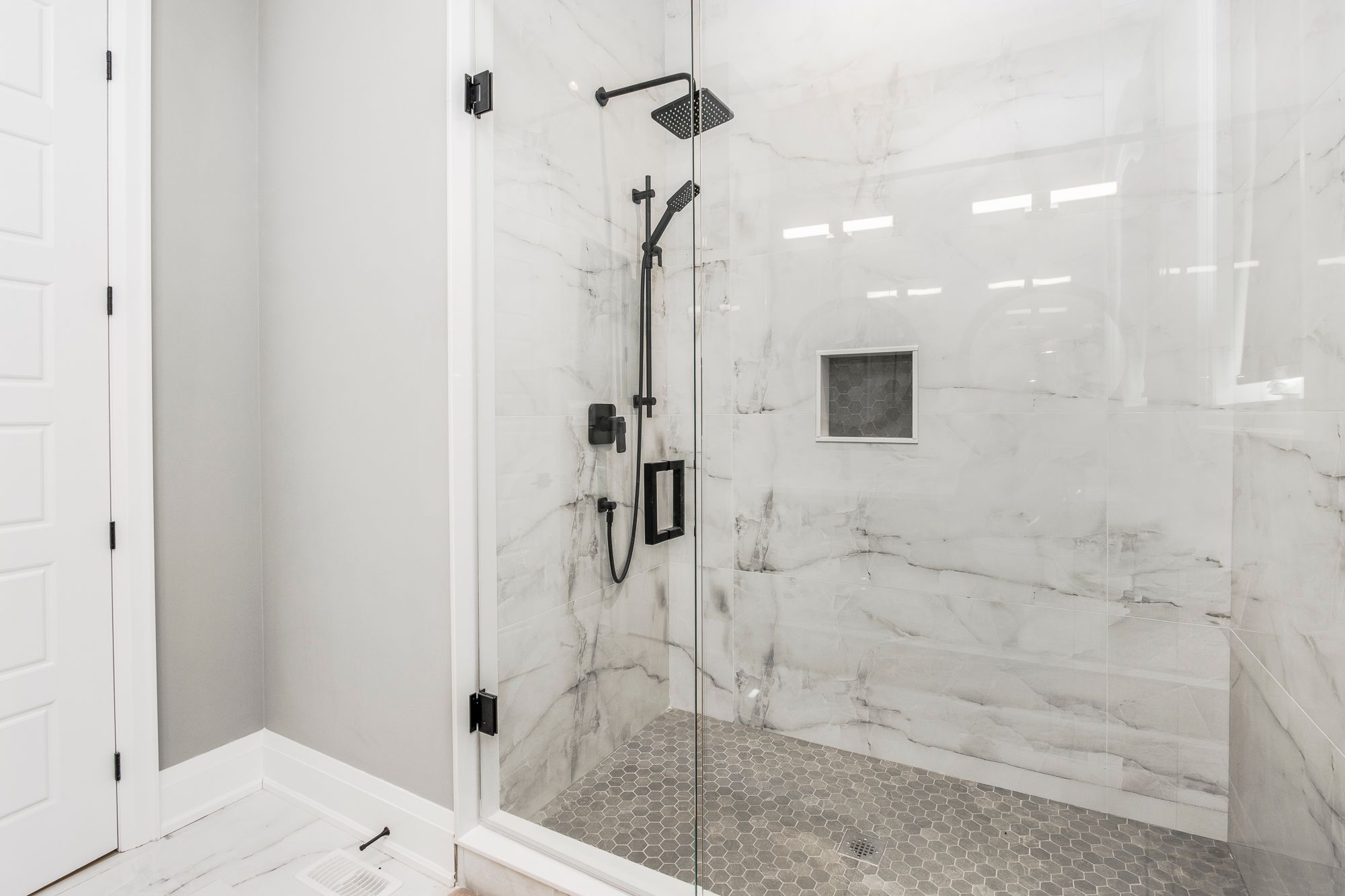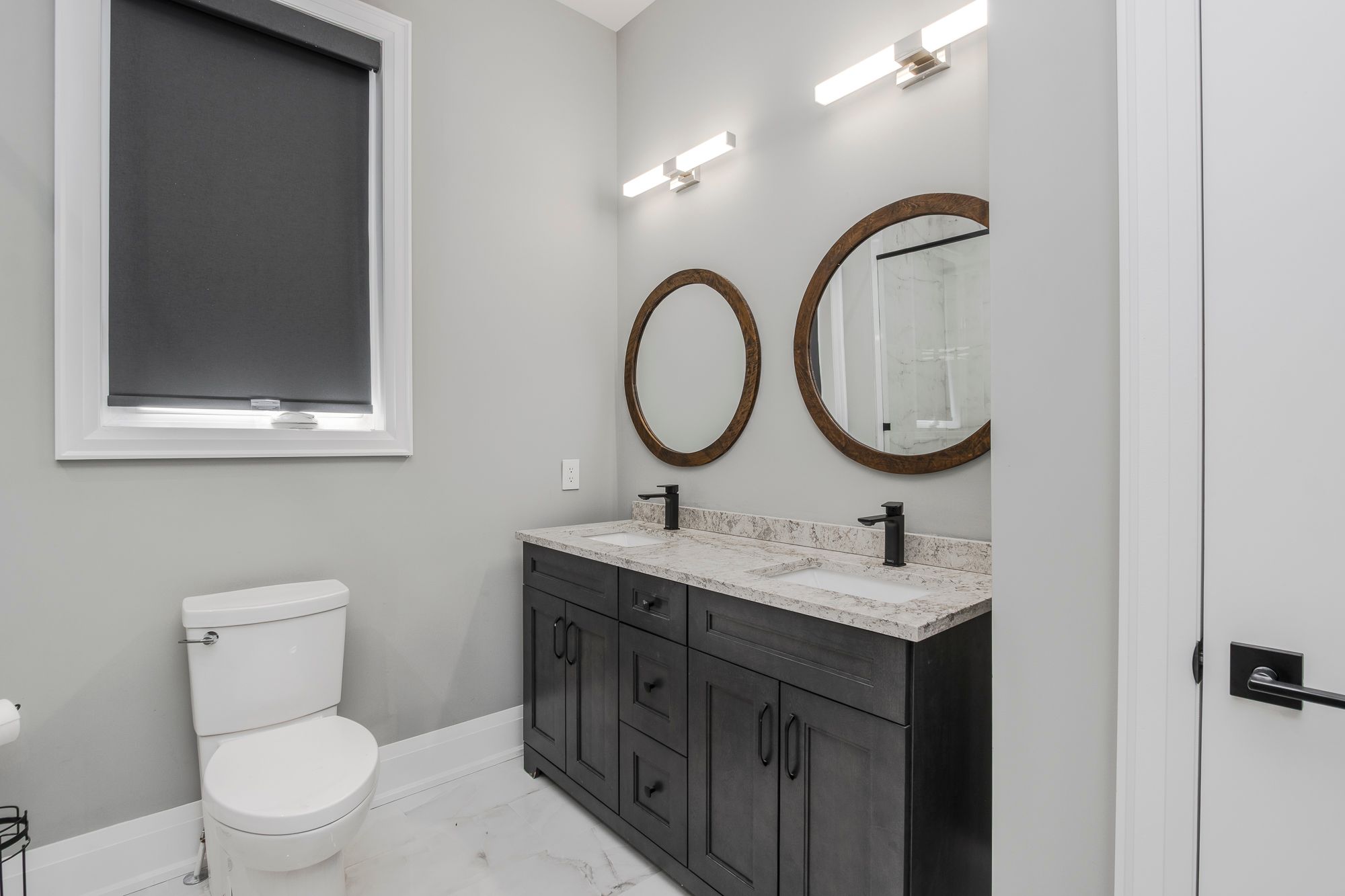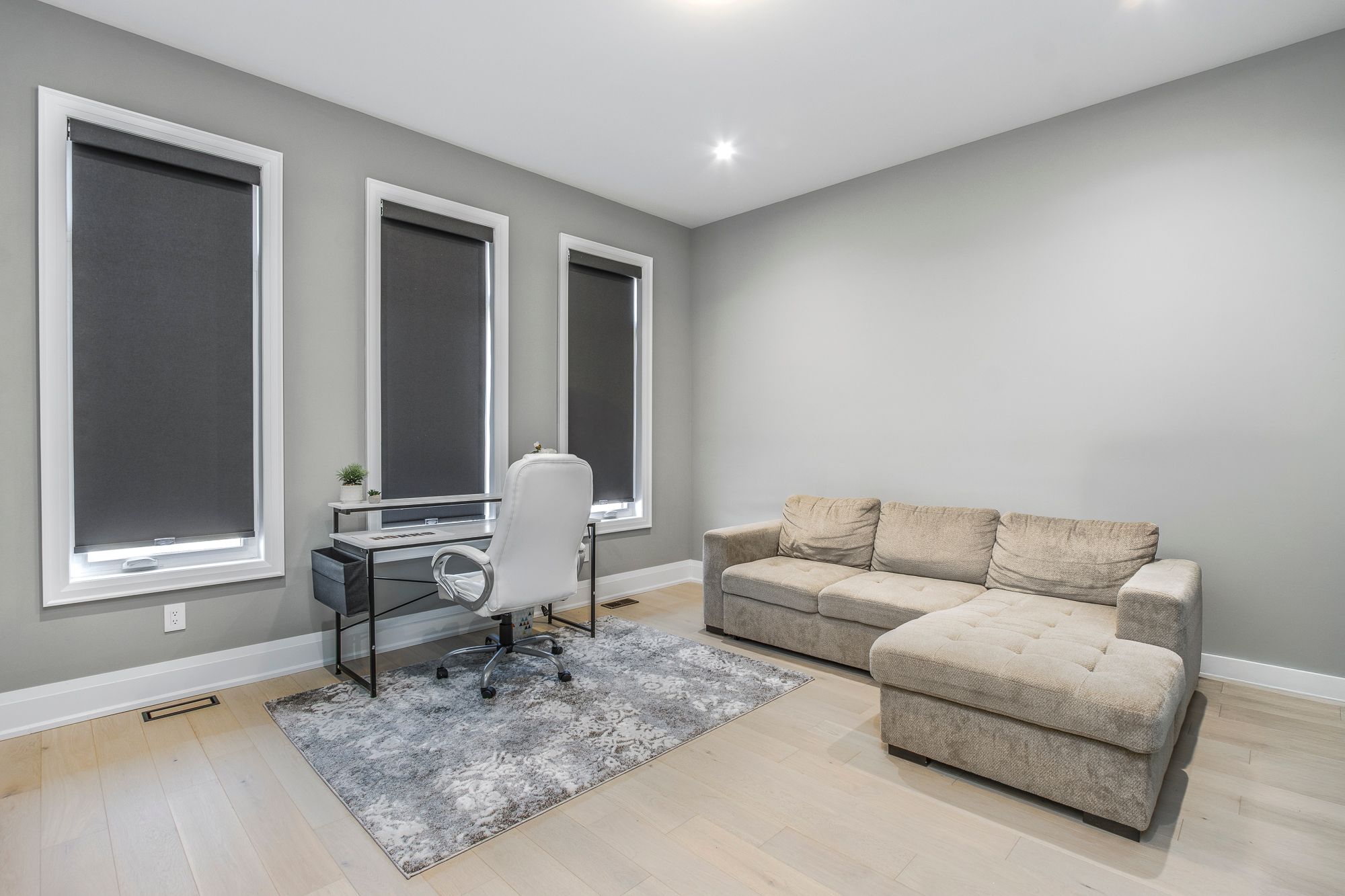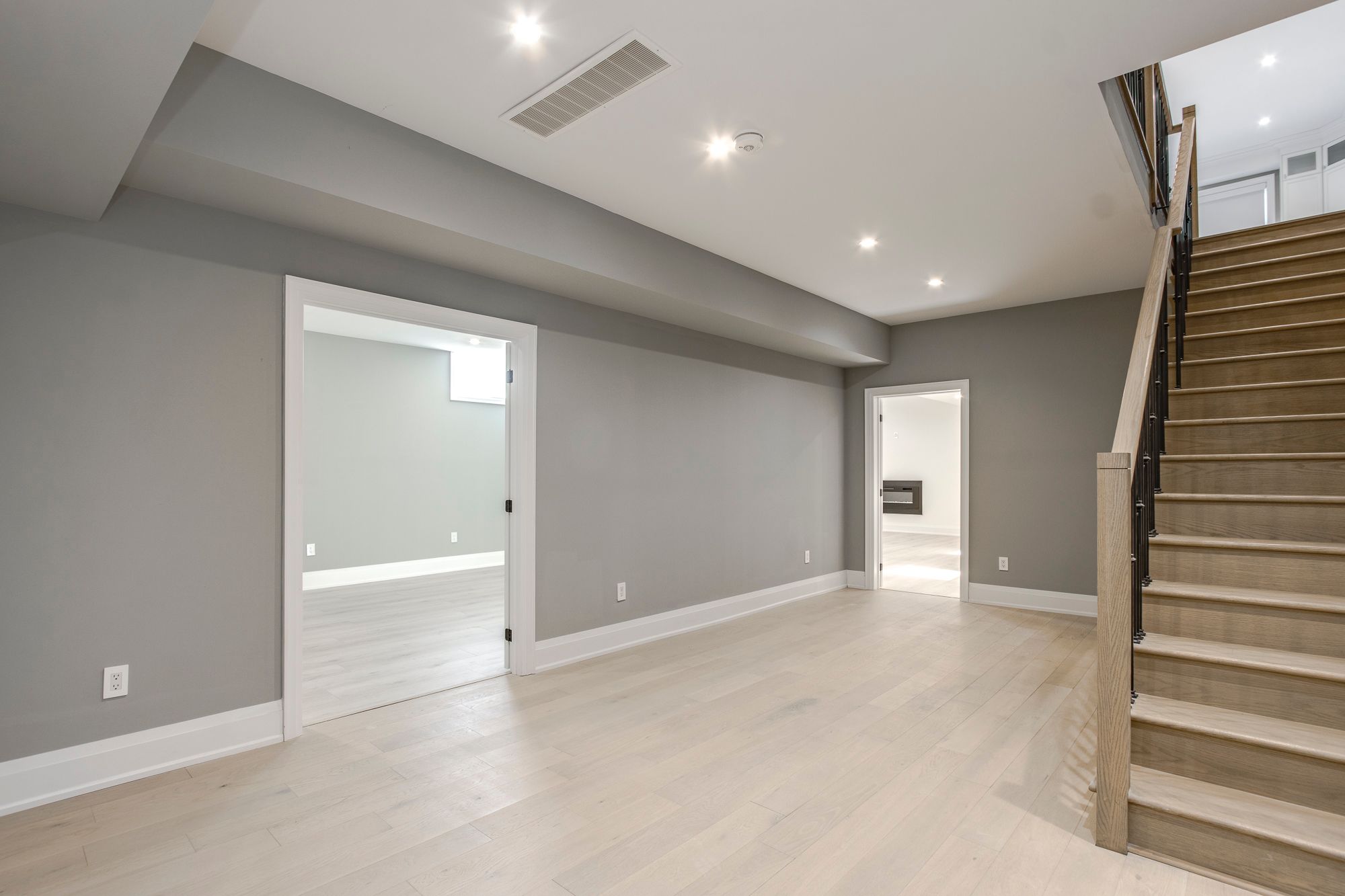 • Open concept layout with bold wall treatments and elegant flooring.