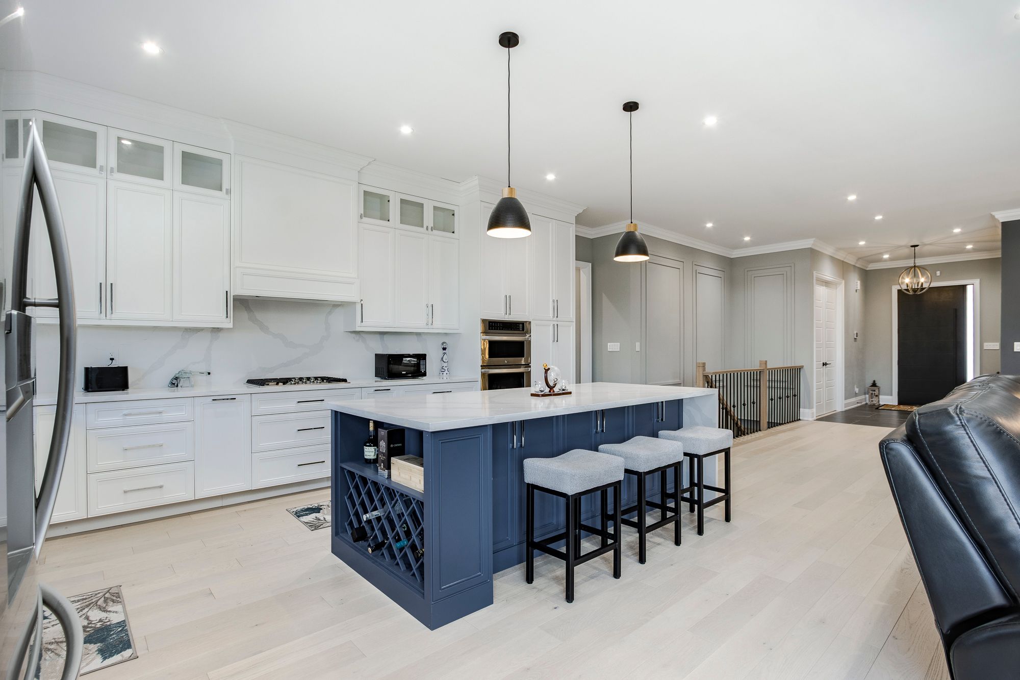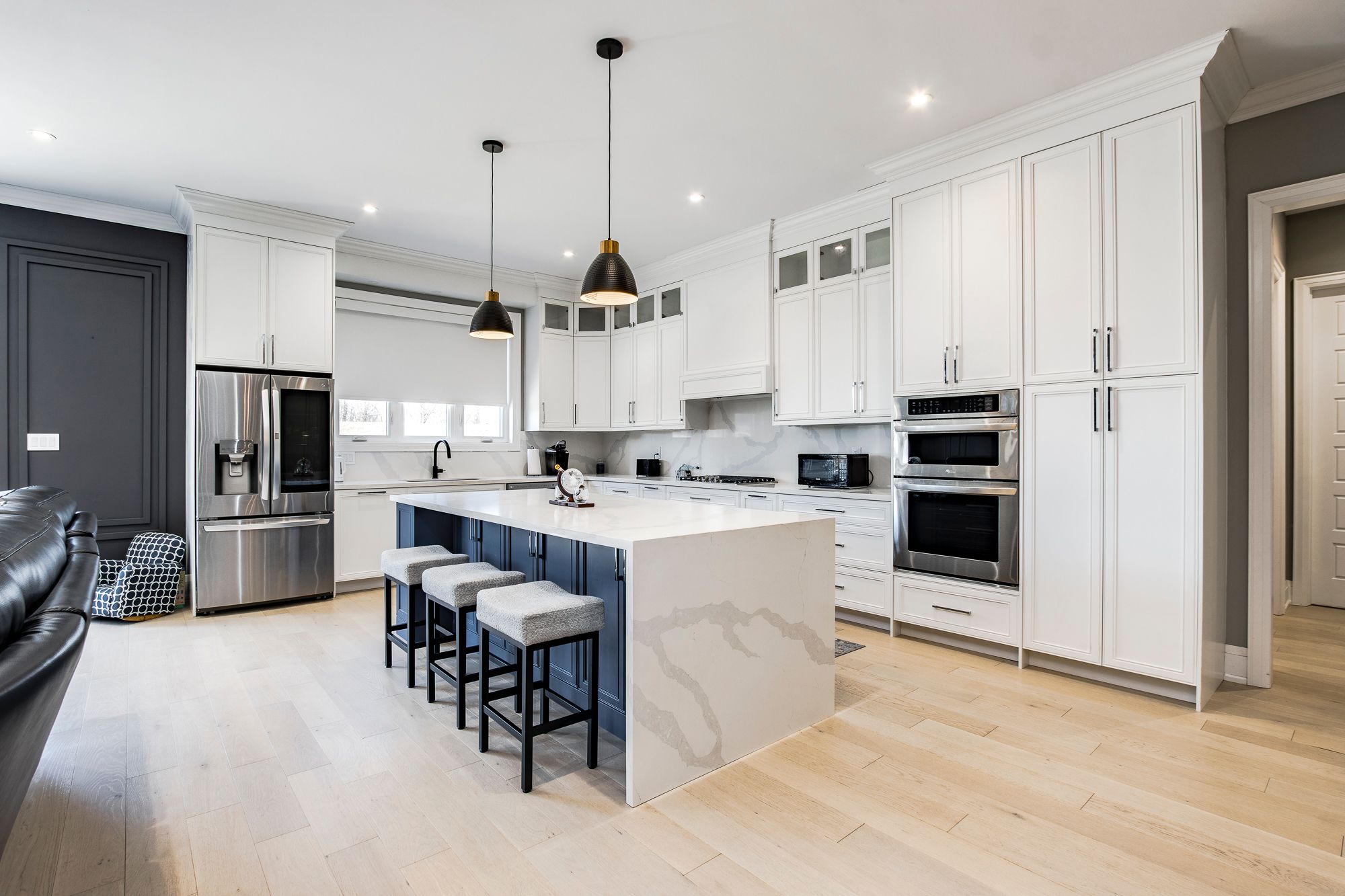• Spacious kitchen featuring an oversized island with quartz countertops.