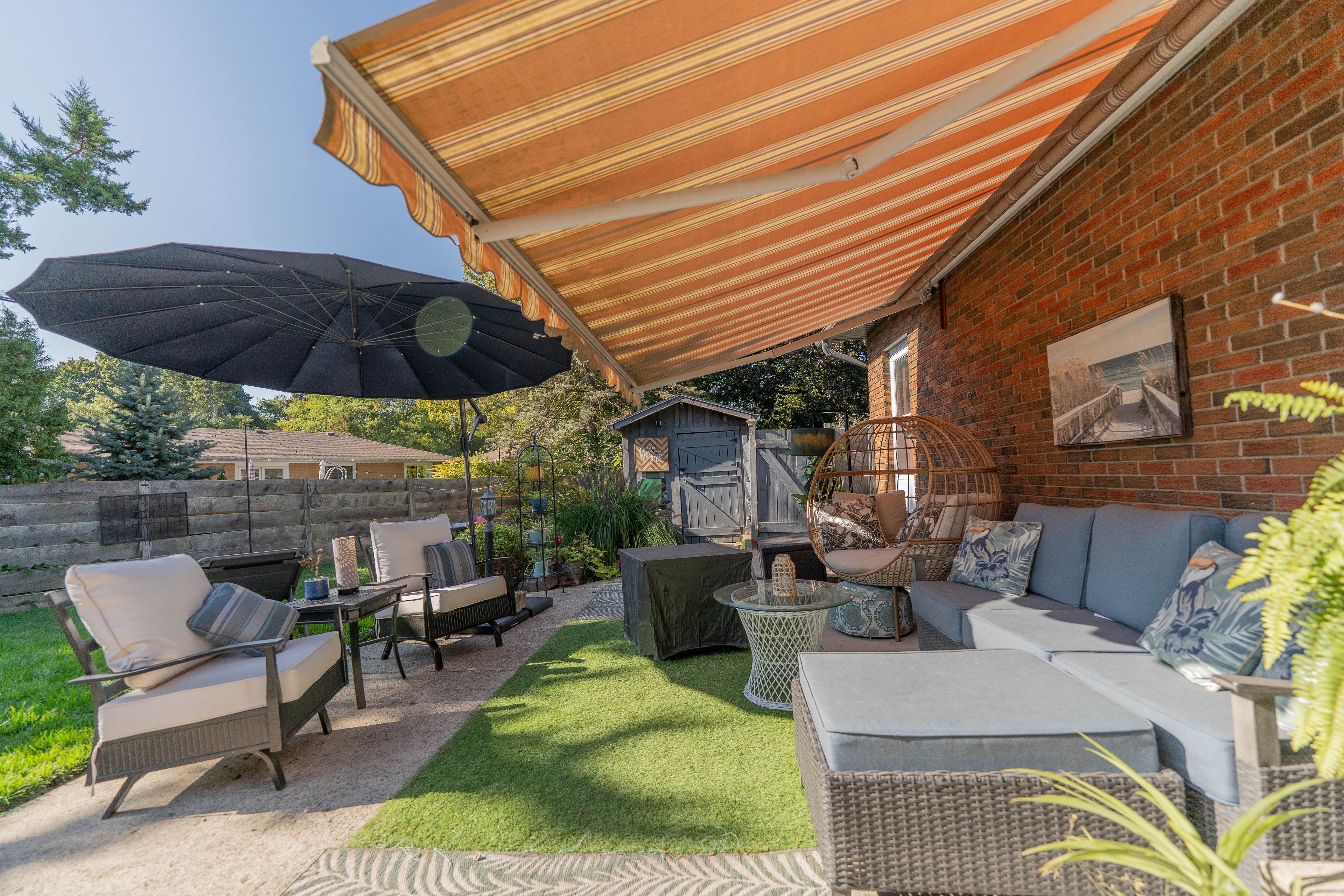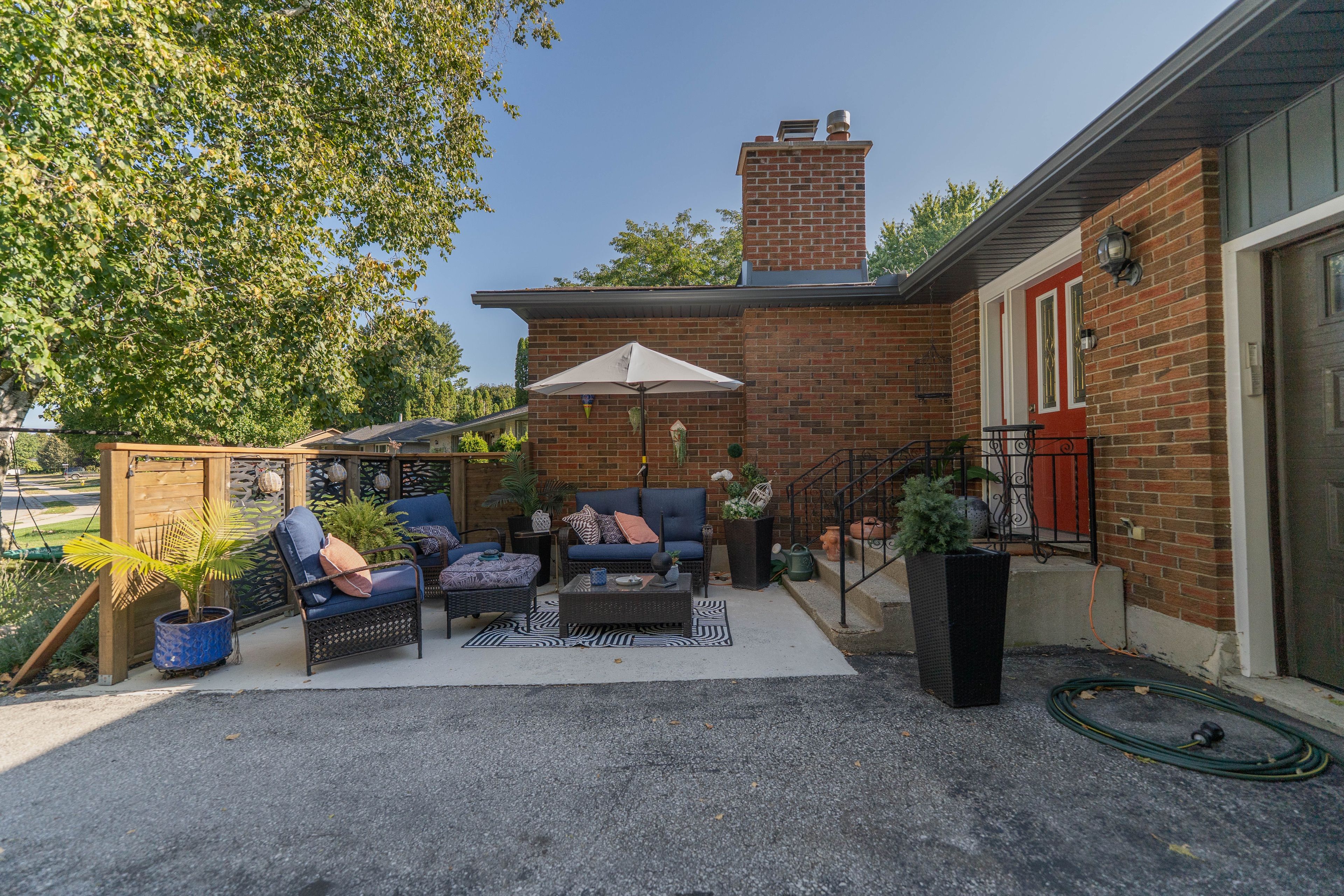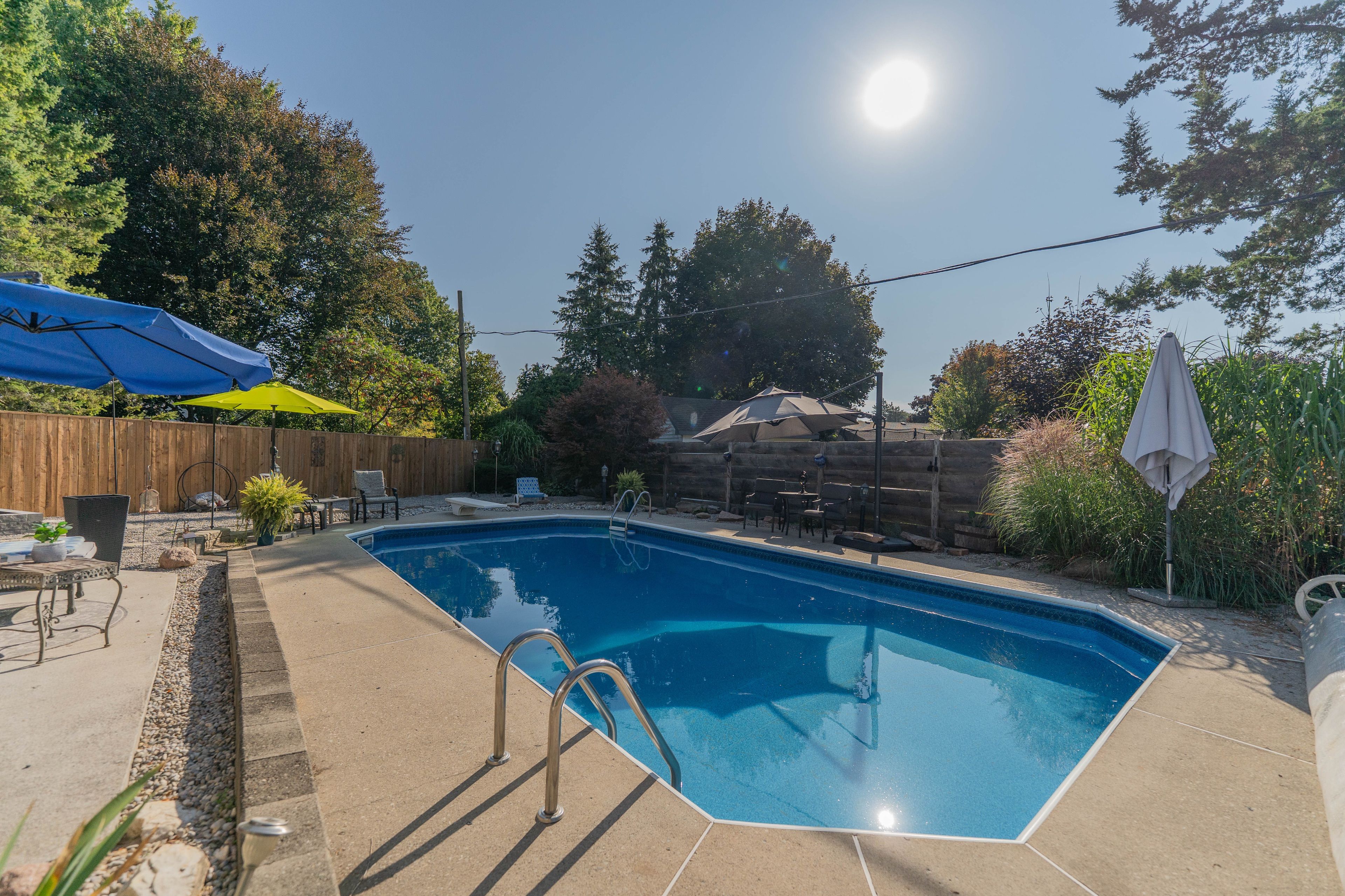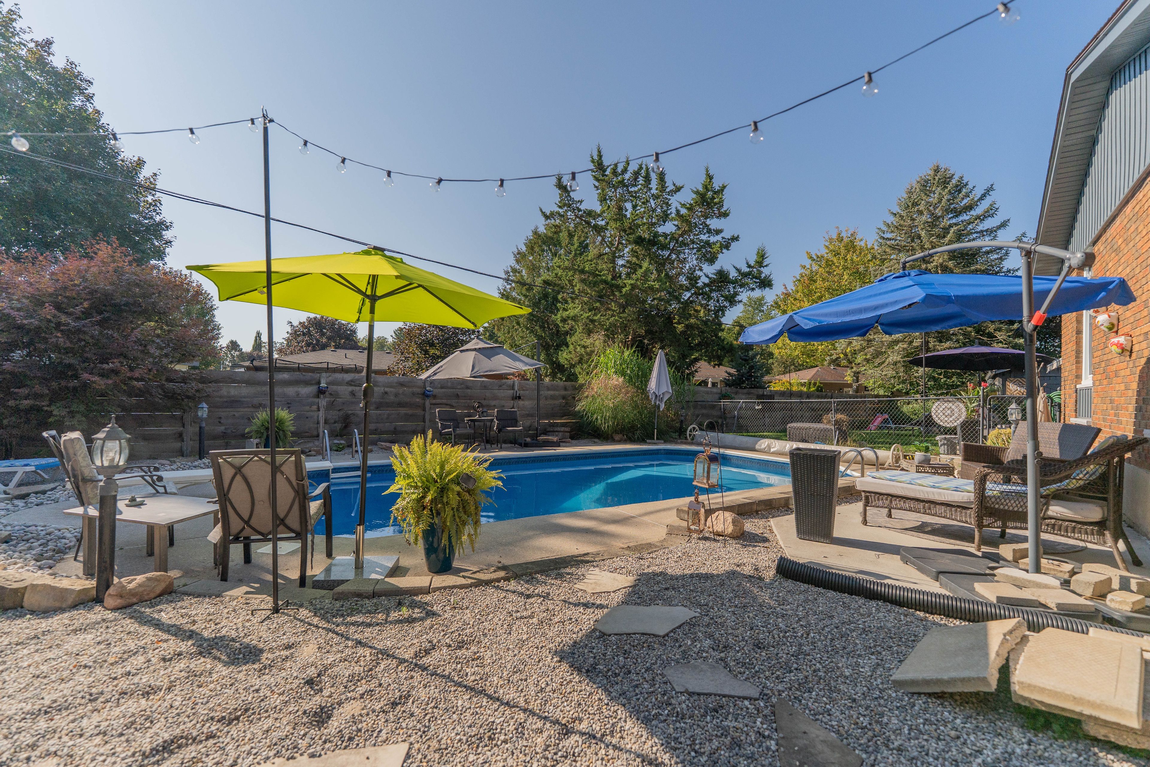 Welcome to this charming and well-maintained brick bungalow, ideally situated just steps from glendale high school in a mature, family-friendly neighbourhood. Set on a generous pie-shaped lot, this home offers a wonderful blend of comfort, functionality, and outdoor enjoyment - with many recent updates already completed. The freshly updated living room is warm and inviting, featuring new pot lights, updated flooring, and fresh paint throughout, complemented by large windows that flood the space with natural light. The eat-in kitchen provides a welcoming spot for everyday meals or casual gatherings with family and friends. The primary bedroom includes access to a convenient 2-piece cheater ensuite, while the main bathroom has been refreshed with a newer vanity for a clean, modern feel. The lower level expands your living space with a finished recreation room and dedicated office area, making it ideal for family movie nights, hobbies, or working comfortably from home. Step outside and discover where this property truly shines. Multiple outdoor living areas include a private, fenced front patio and recently poured concrete patios in the backyard - perfect for entertaining or unwinding at the end of the day. Summer living is a breeze with your own in-ground pool, surrounded by a spacious yard designed for both relaxation and play. An oversized driveway offers ample parking for family and guests. A terrific opportunity to own a move-in ready home in a sought-after location - this one is not to be missed!