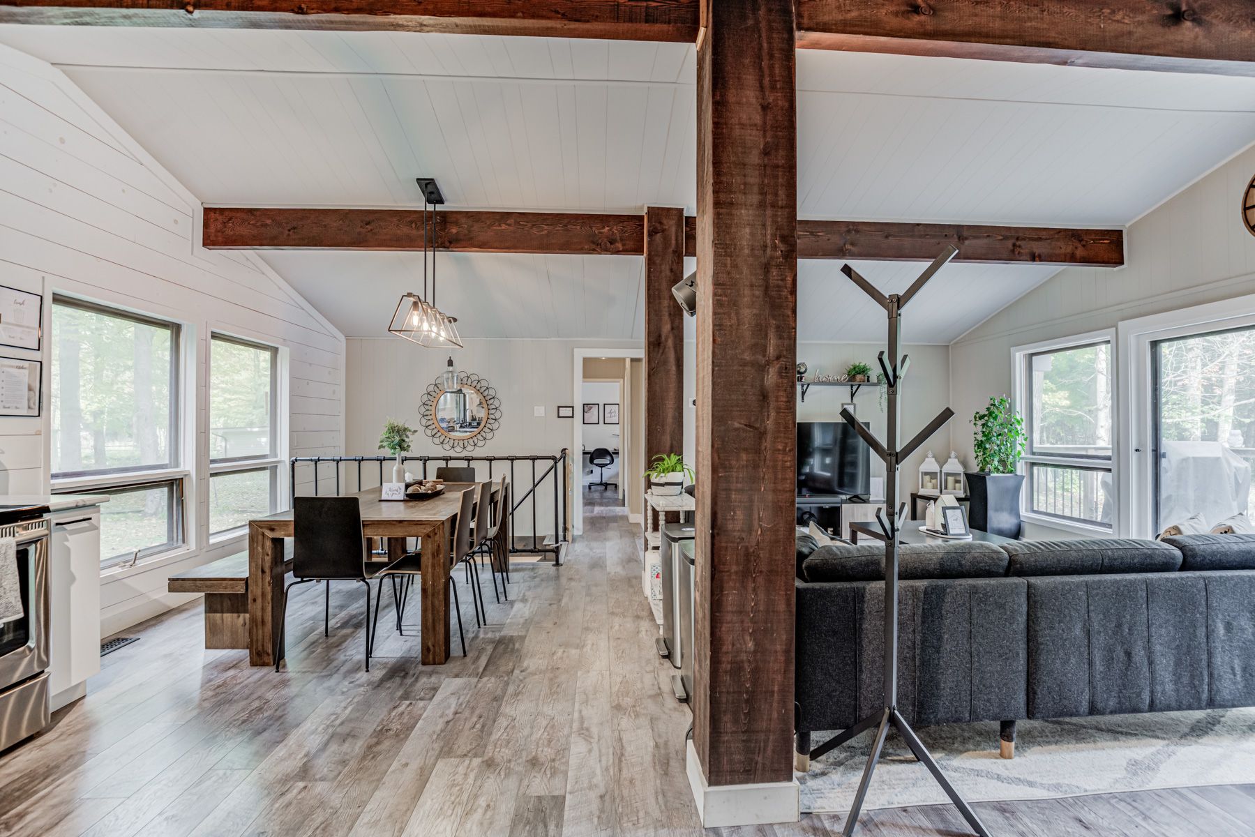 • Cozy fireplace and cathedral ceilings create a welcoming atmosphere.