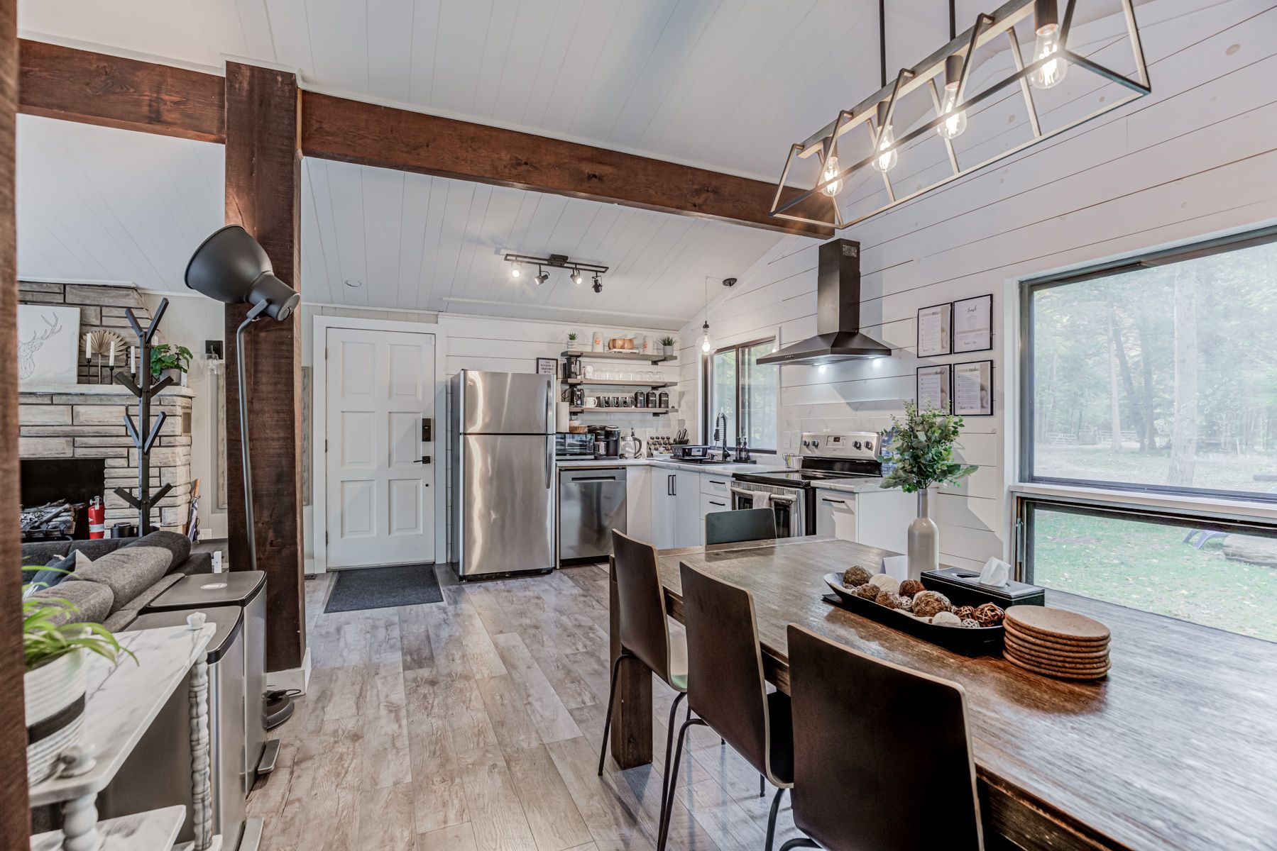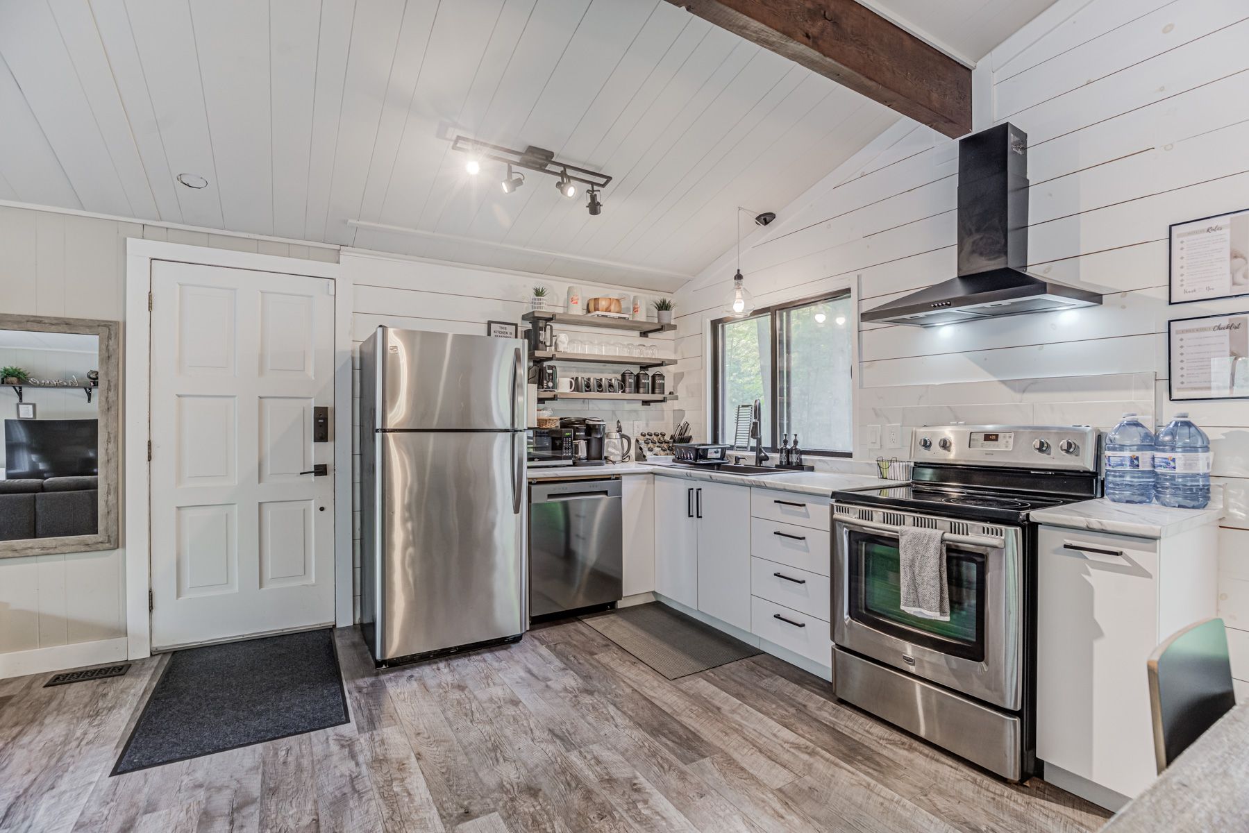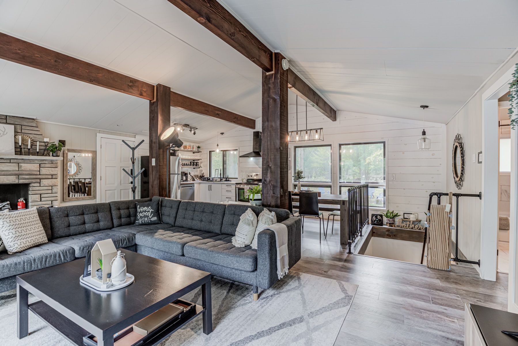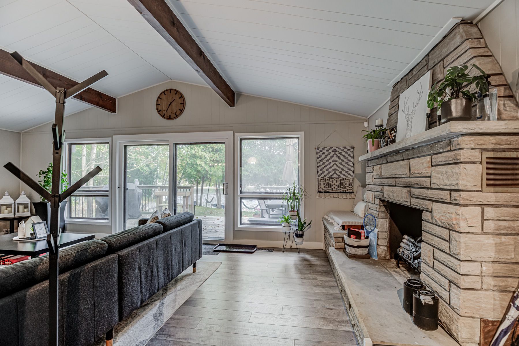 Discover the beautifully renovated, 4-season viceroy home in kawartha lakes, just steps from the waterfront! This turn-key, airbnb boasts an open-concept kitchen, living, and dining area with a cozy wood-burning fireplace, cathedral ceilings, and a walkout to a large deck with stunning water views. The primary and second bedrooms also offer serene waterfront vistas. The main floor features a 4-piece bathroom with a jet tub, while the partially finished basement includes a family room, bathroom with heated floors, laundry room and crawl space for extra storage. With a spacious private driveway, ample parking, and a single-care garage, this property sits on the