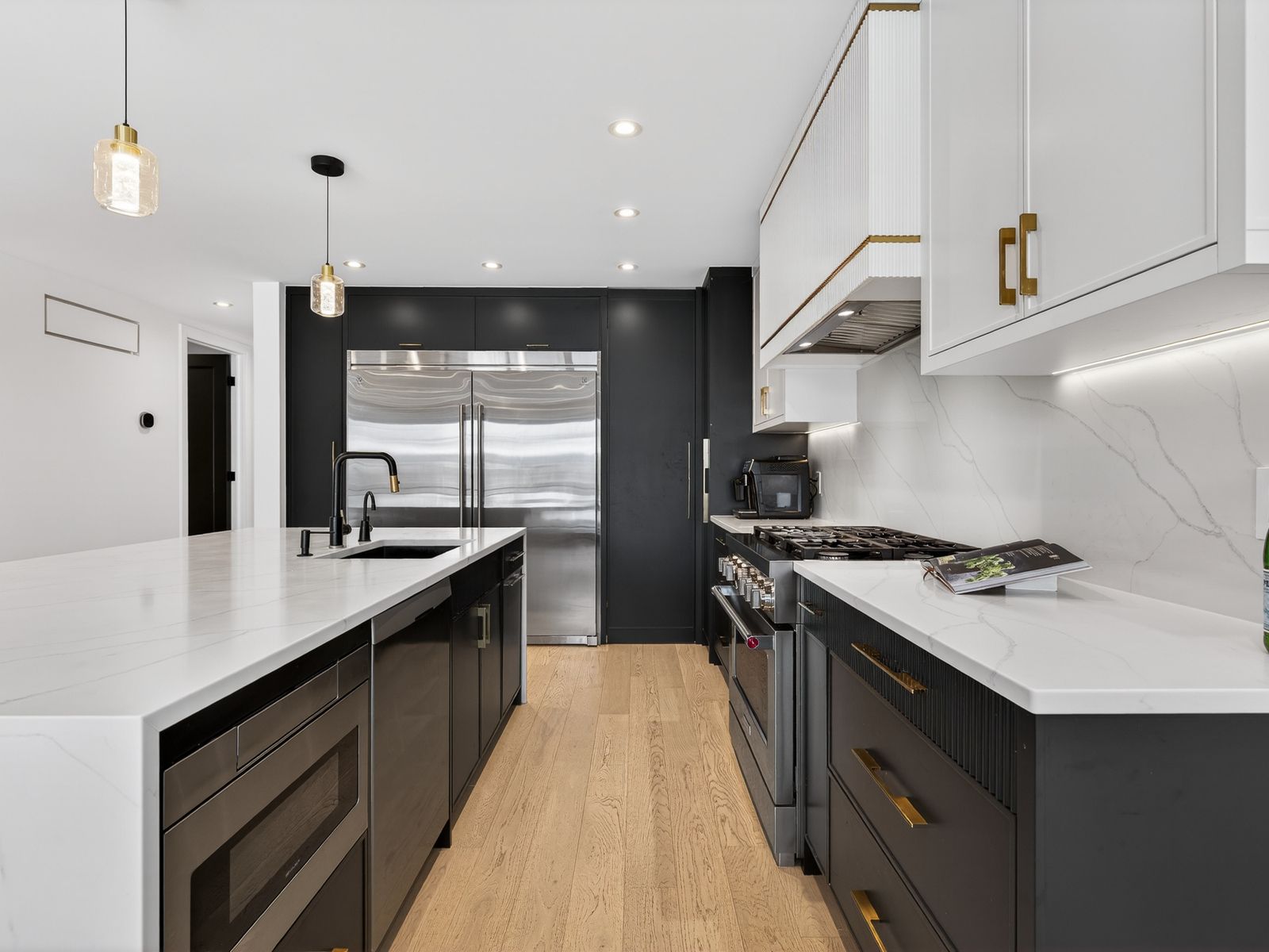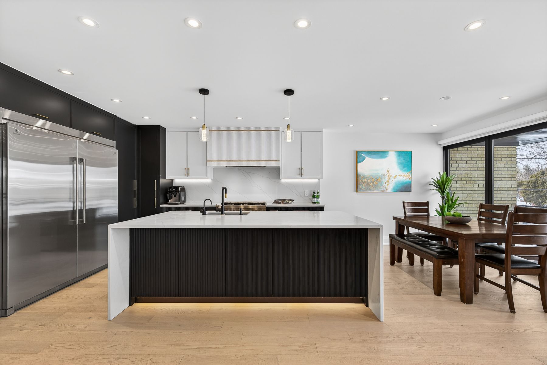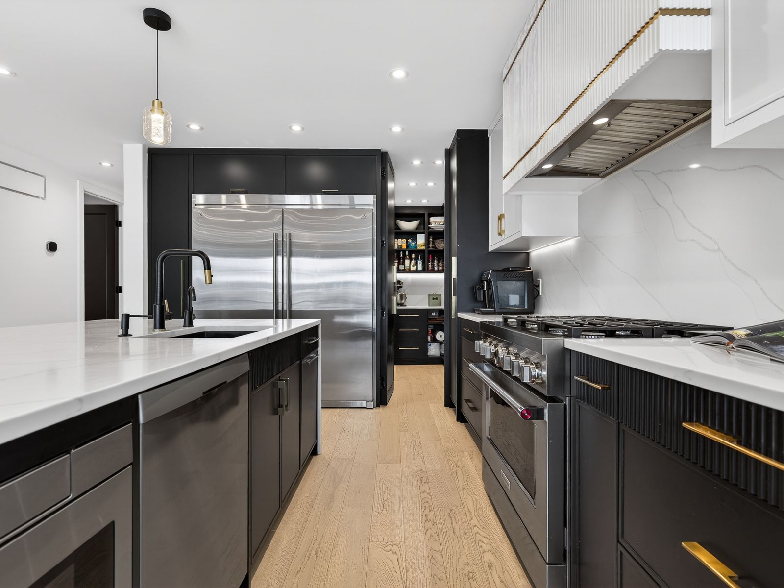 Welcome to this stunning & completely renovated family home (2025) at bathurst and sheppard! Thoughtfully redesigned from the studs up with the owner investing close to $500,000 in renovations. Set on a rare ravine lot with the largest backyard on the street, this home preserves its original brick exterior while delivering modern comfort, efficiency, and space for everyday family living. The heart of the home is the bright open-concept kitchen, dining, and living area, ideal for gathering and entertaining. The chef's kitchen features a stunning 8. 75ft waterfall quartz island with storage on both sides, 3cm quartz countertops, a full-height book-matched backsplash, custom cabinetry, and premium appliances including a 36" six-burner gas range. A walk-in pantry adds everyday convenience. Designed with families in mind, the home offers 7. 5ft solid wood doors, durable 6" white oak hardwood floors, modern pot lighting, and floor-to-ceiling built-ins in every room for exceptional storage. The finished lower level features matching high-end vinyl flooring and is fully plumbed, wired, and vented for a second kitchen, ideal for an in-law suite or future flexibility. The functional layout includes 3+1 bedrooms, 3 full bathrooms, and two sound-proofed home offices, perfect for remote work, study, or quiet retreat. Smart home upgrades, updated mechanicals, and energy-efficient construction provide peace of mind. Enjoy outdoor family time on the 30ft rear deck, 14ft front balcony, and expansive ravine backyard, plus parking for up to four vehicles. Located in a high-ranking school district and ideally positioned minutes to hwy 401, sheppard west subway, with a bus stop down the street, and easy access to downtown, shopping, and entertainment-this is a true turn-key family home in a connected, sought-after neighbourhood.