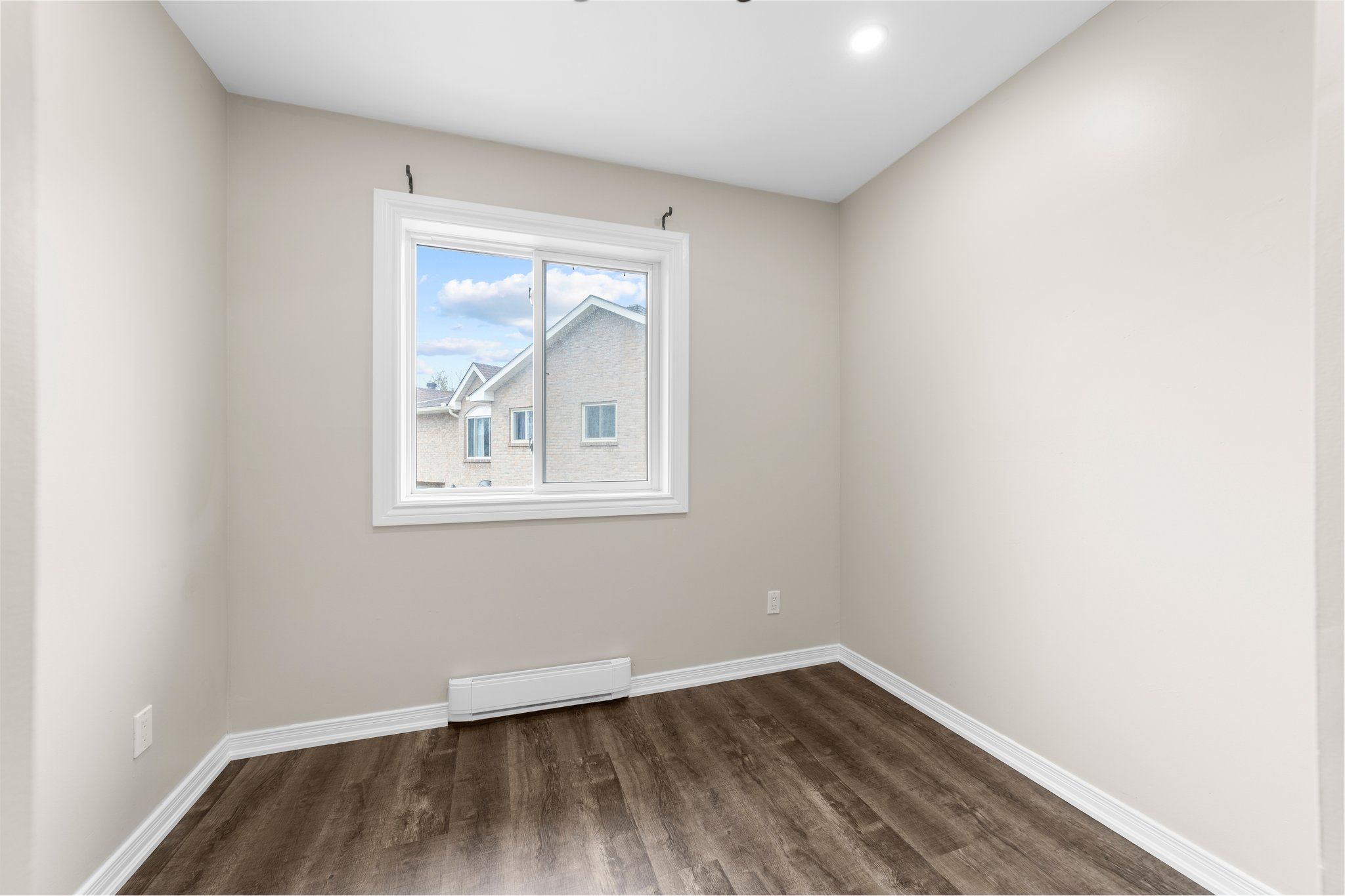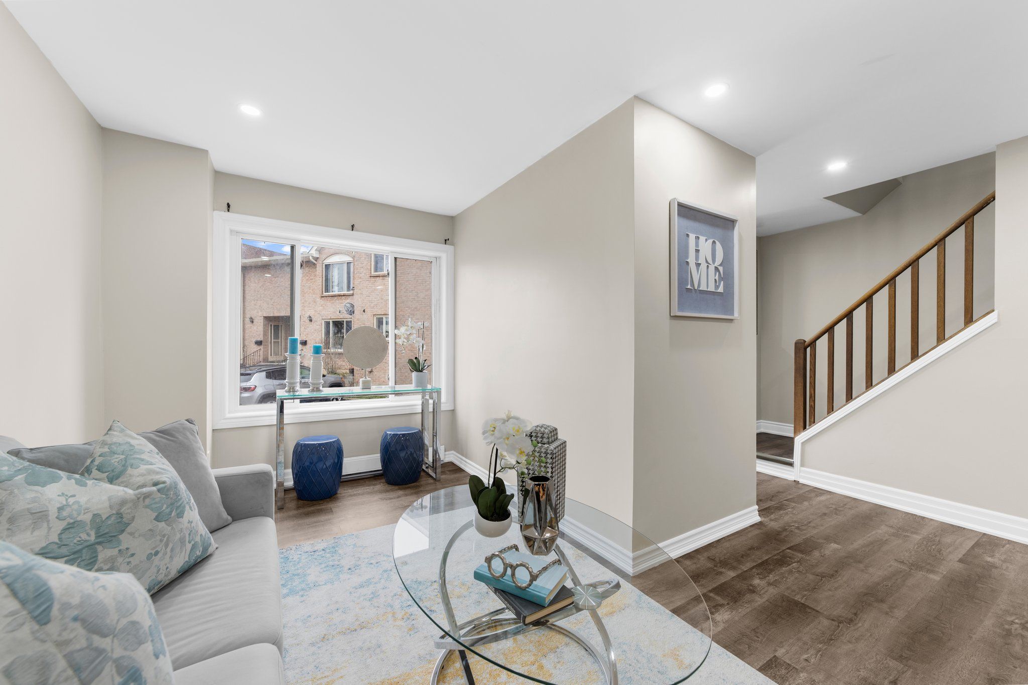 Fabulous end unit townhouse just steps from schools, parks & amenities! Open concept main floor layout with updated flooring throughout. Bright living area w/large picture window, functional eat-in kitchen w/side window! Open stair leads to upper level with modern bath with tub-surround & 3 good-sized bedrooms. Sunny master w/spacious closet! Finished lower level recreation room w/upgraded flooring & huge laundry/storage area and 2pc powder room for guests on main floor ,to complete this gem! Old pictures are used and now house is vacant.