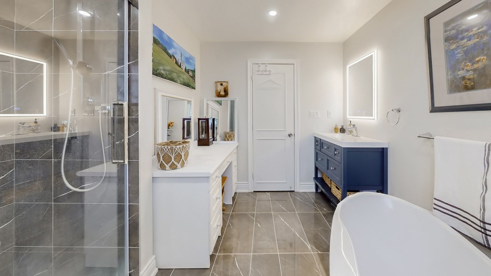 Tucked away on a quiet cul-de-sac in one of north york's most desirable family neighbourhoods, this executive residence sits on a rare premium lot with approximately 67-ft frontage, offering exceptional space, privacy, and curb appeal. Recently completed front interlocking enhances the home's exterior presence while providing a beautifully finished entrance. With nearly 3,000 sq ft above grade plus a fully finished lower level with separate entrance, this home offers outstanding versatility for growing families, multi-generational living, or potential income opportunities. A welcoming double-door entry opens to a spacious foyer and elegant staircase, leading to bright, well-proportioned principal rooms filled with natural light. The formal living and dining areas overlook the backyard and create an inviting setting for both everyday living and entertaining. The updated eat-in kitchen connects seamlessly to an expansive two-tier oversized sundeck perfect for outdoor dining, relaxation, and summer gatherings. The family room with rich wood paneling and fireplace offers warmth and character, creating a comfortable space for family time. The upper level features a generous primary bedroom with renovated ensuite, complemented by four additional sun-filled bedrooms ideal for family living. The finished lower level offers excellent flexibility with multiple bedrooms, bathrooms, a kitchen, and separate entrance ideal for extended family or private living space. Additional highlights include newer hardwood flooring, laminate flooring, updated bathrooms (primary, main, and powder rooms), main floor laundry, side entrance, crown mouldings, large driveway, and generous storage throughout. Ideally located close to parks, transit, shopping, and top-ranking schools including a. Y. Jackson secondary school, bayview middle school, and zion heights junior high, this property presents a rare opportunity to secure a spacious family home in a highly sought-after and convenient location.