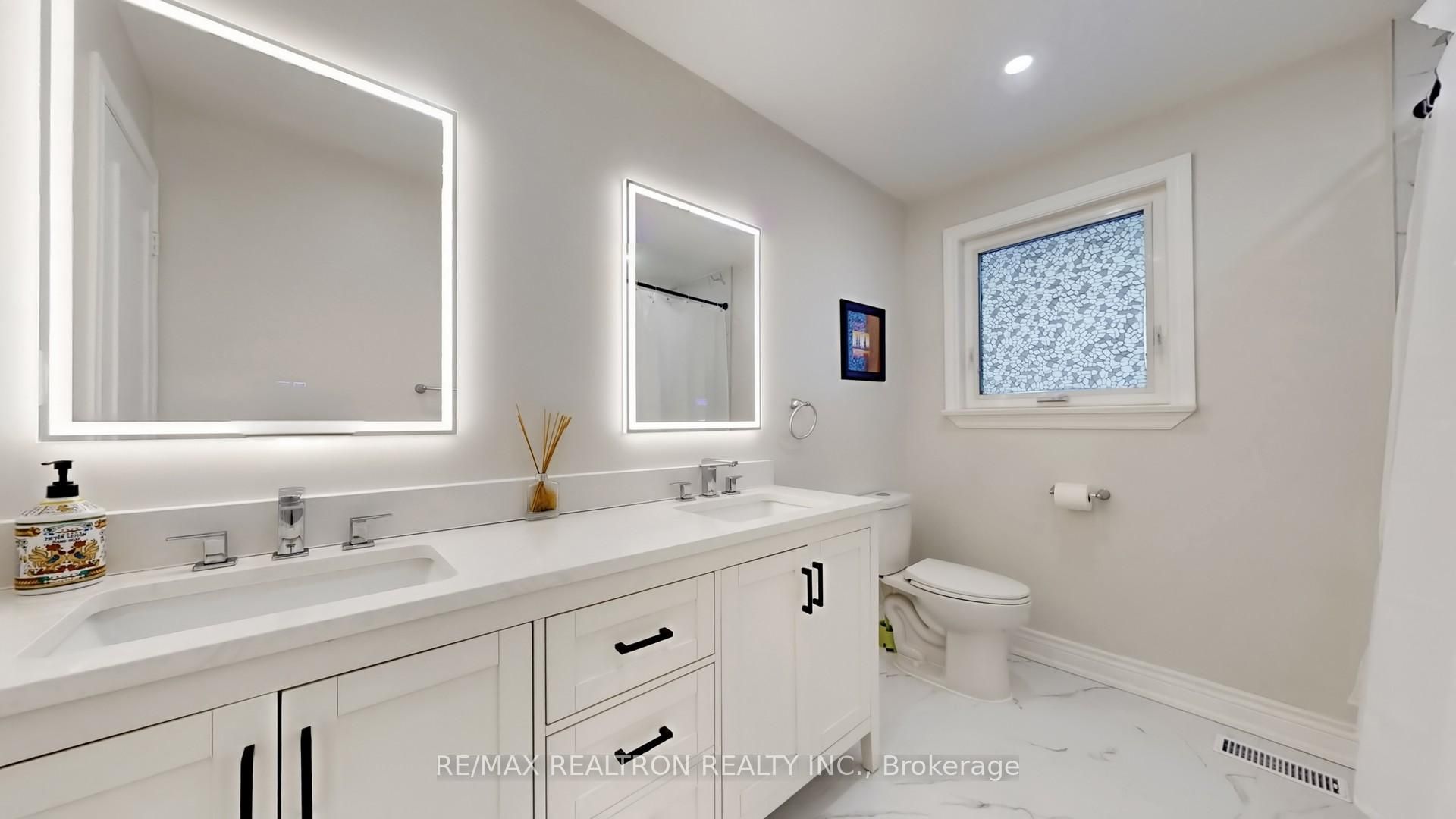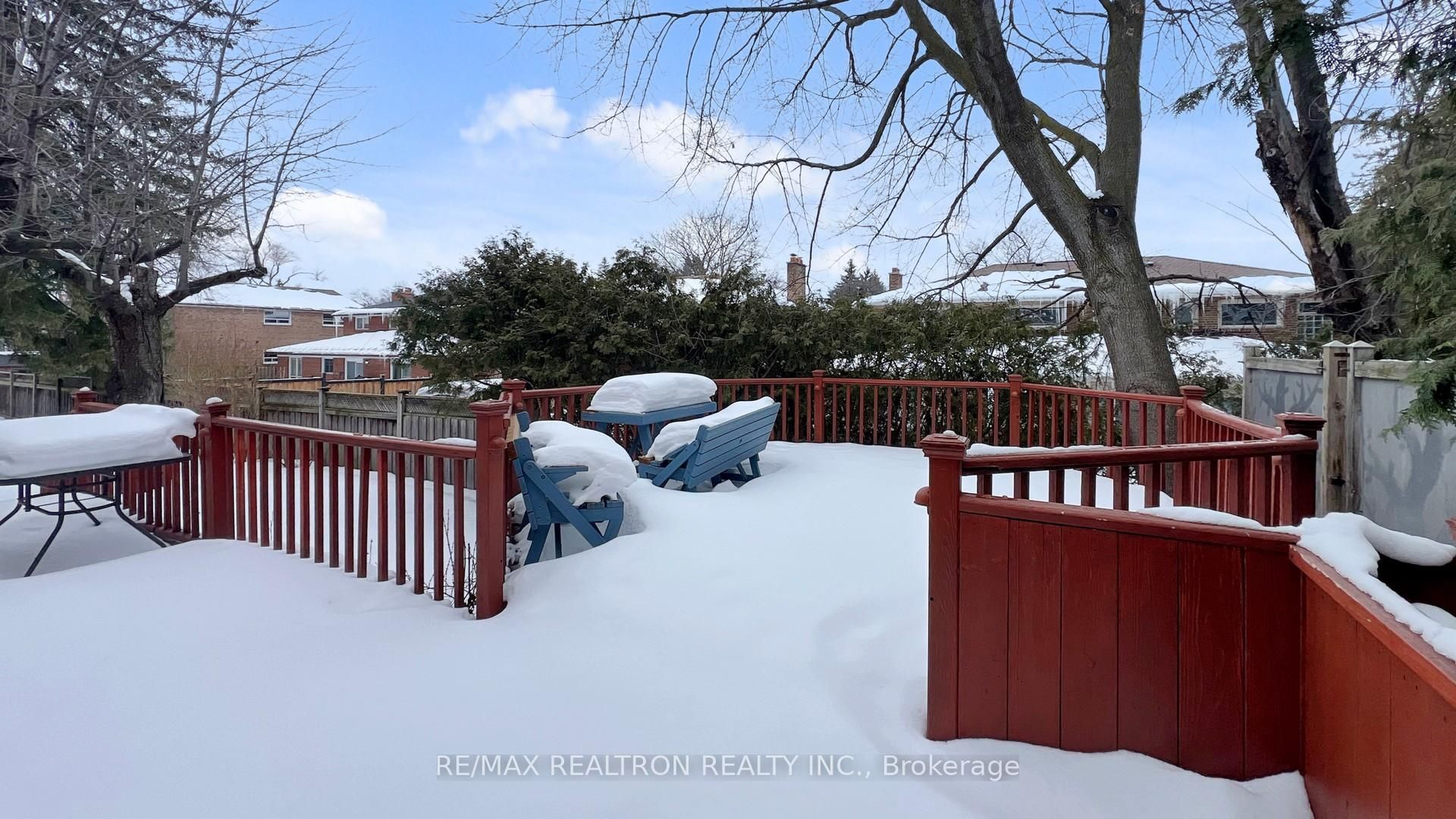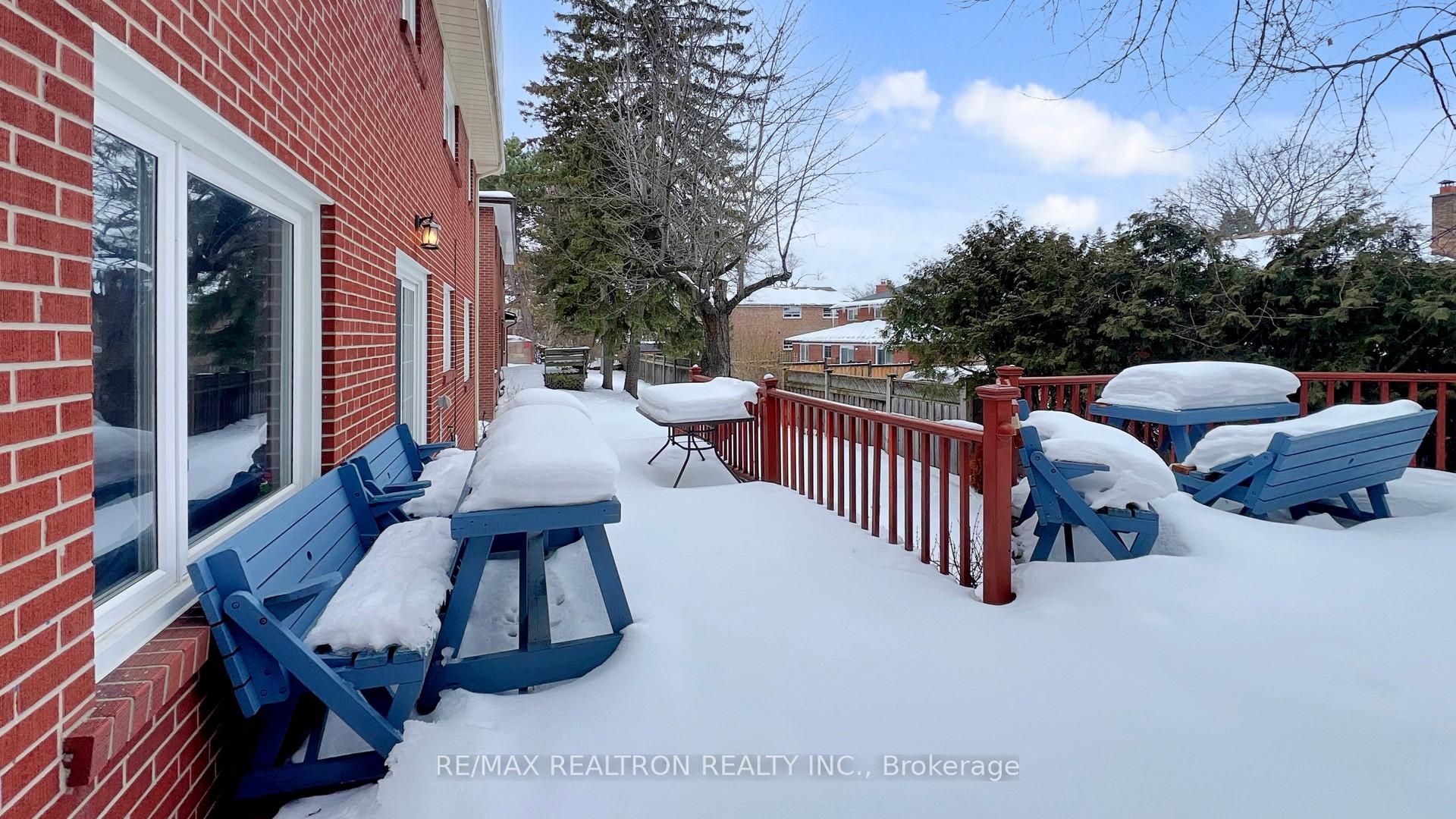 Tucked away on a quiet cul-de-sac in one of north york's most desirable family neighbourhoods, this executive residence sits on a rare premium lot with approximately 67-ft frontage, offering exceptional space, privacy, and curb appeal. Recently completed front interlocking enhances the home's exterior presence while providing a beautifully finished entrance. With nearly 3,000 sq ft above grade plus a fully finished lower level with separate entrance, this home offers outstanding versatility for growing families, multi-generational living, or potential income opportunities. A welcoming double-door entry opens to a spacious foyer and elegant staircase, leading to bright, well-proportioned principal rooms filled with natural light. The formal living and dining areas overlook the backyard and create an inviting setting for both everyday living and entertaining. The updated eat-in kitchen connects seamlessly to an expansive two-tier oversized sundeck perfect for outdoor dining, relaxation, and summer gatherings. The family room with rich wood paneling and fireplace offers warmth and character, creating a comfortable space for family time. The upper level features a generous primary bedroom with renovated ensuite, complemented by four additional sun-filled bedrooms ideal for family living. The finished lower level offers excellent flexibility with multiple bedrooms, bathrooms, a kitchen, and separate entrance ideal for extended family or private living space. Additional highlights include newer hardwood flooring, laminate flooring, updated bathrooms (primary, main, and powder rooms), main floor laundry, side entrance, crown mouldings, large driveway, and generous storage throughout. Ideally located close to parks, transit, shopping, and top-ranking schools including a. Y. Jackson secondary school, bayview middle school, and zion heights junior high, this property presents a rare opportunity to secure a spacious family home in a highly sought-after and convenient location.