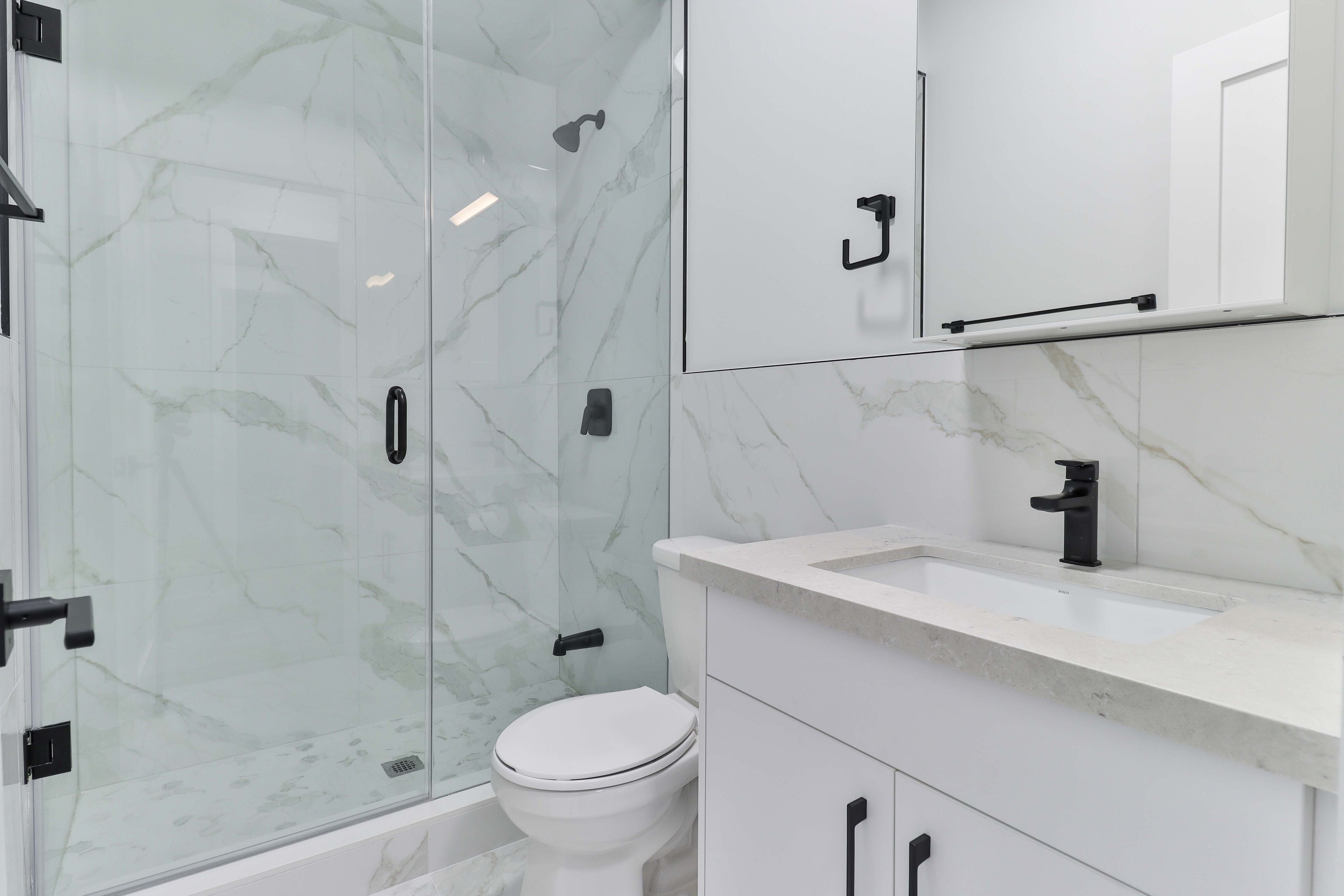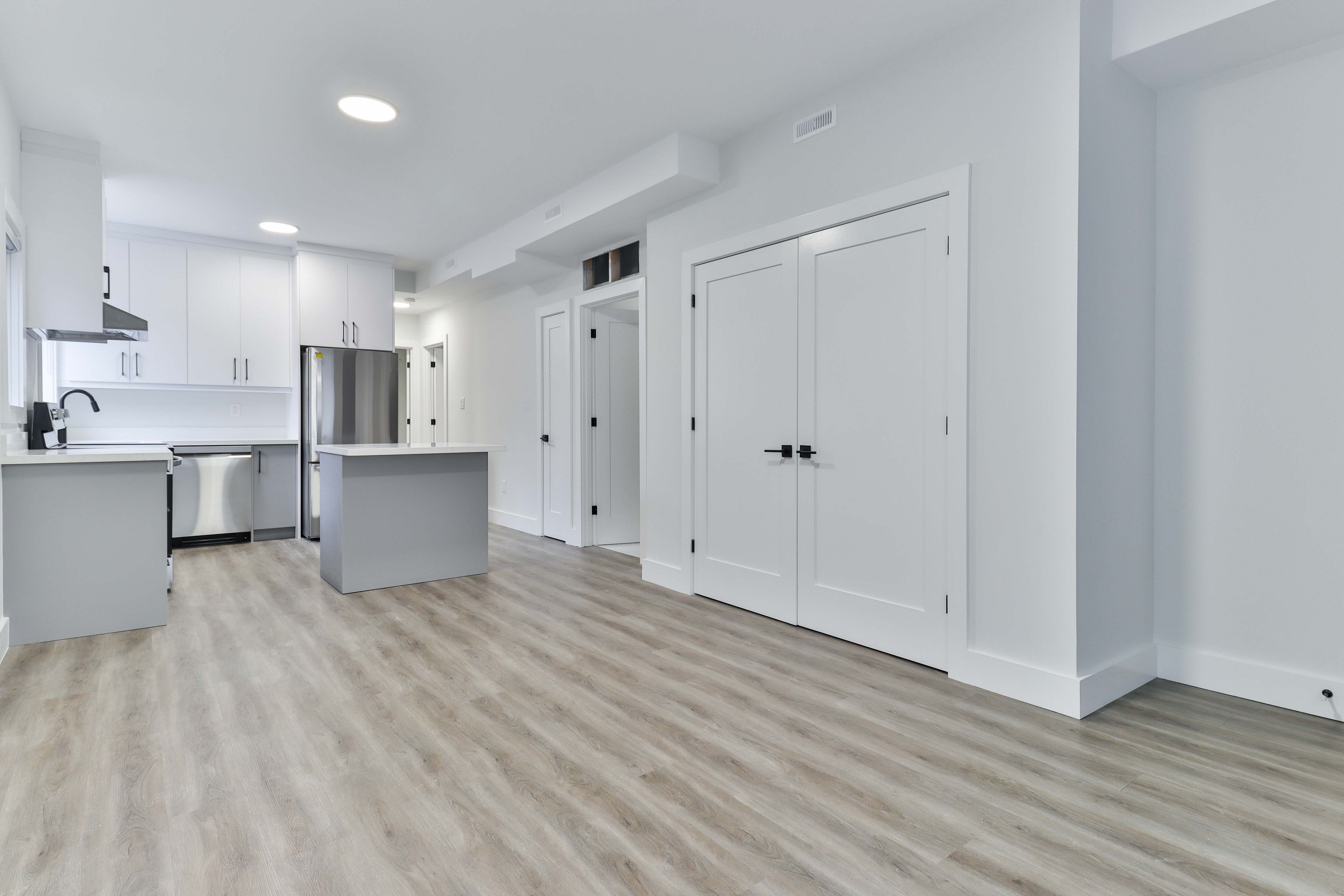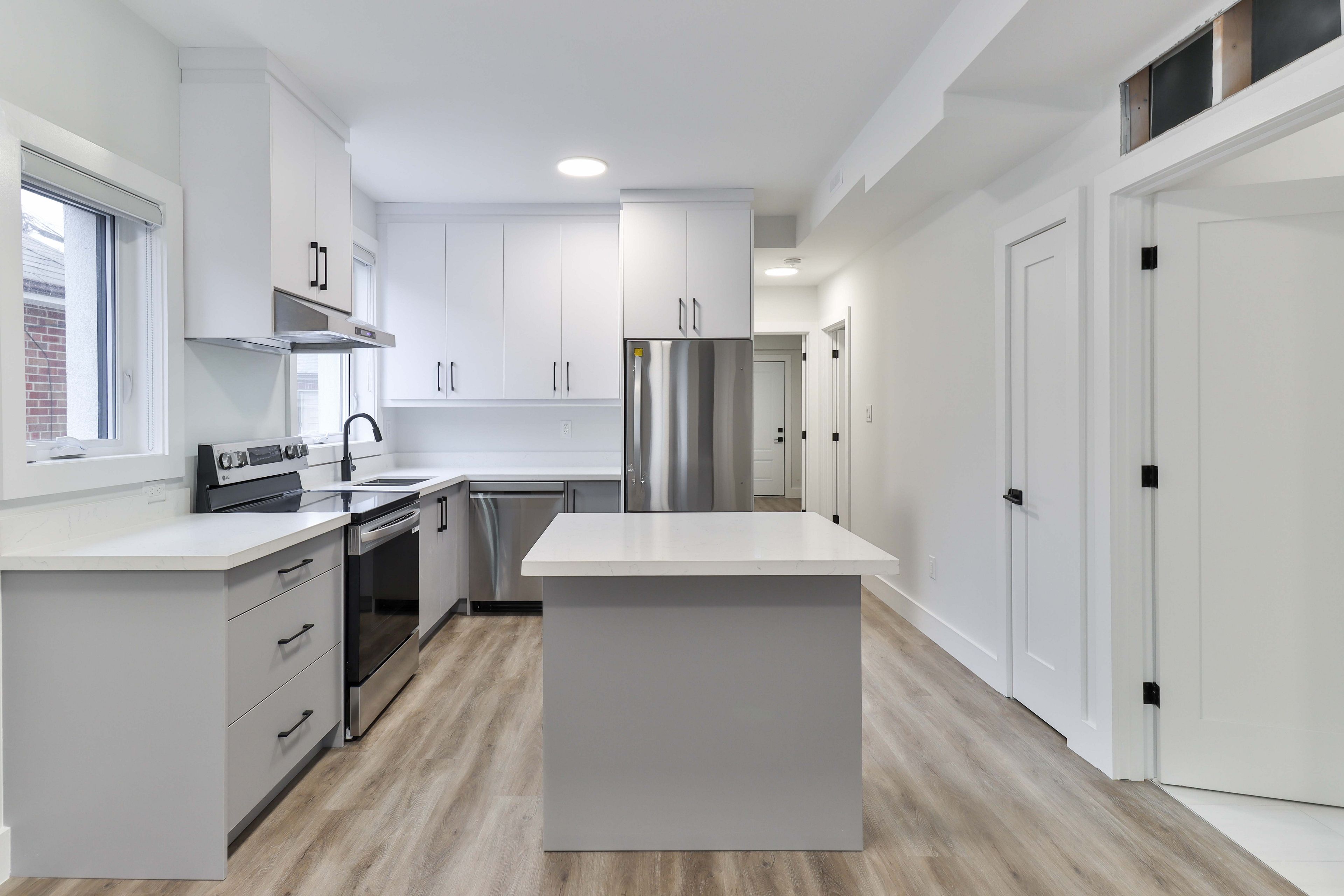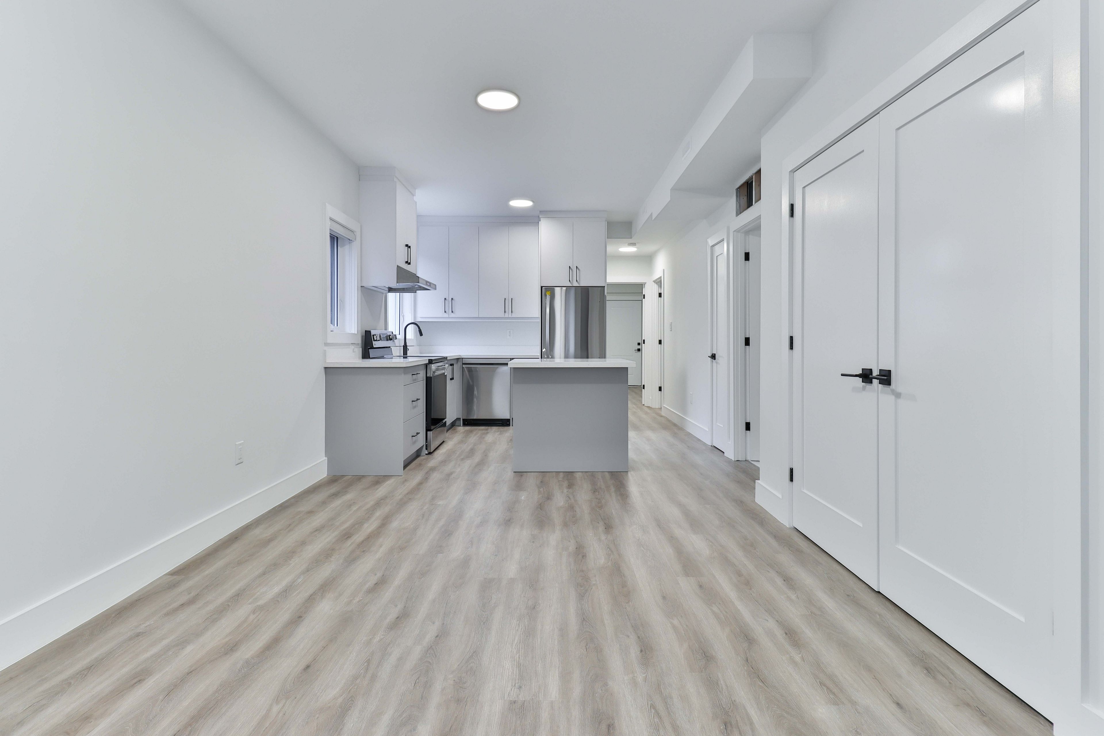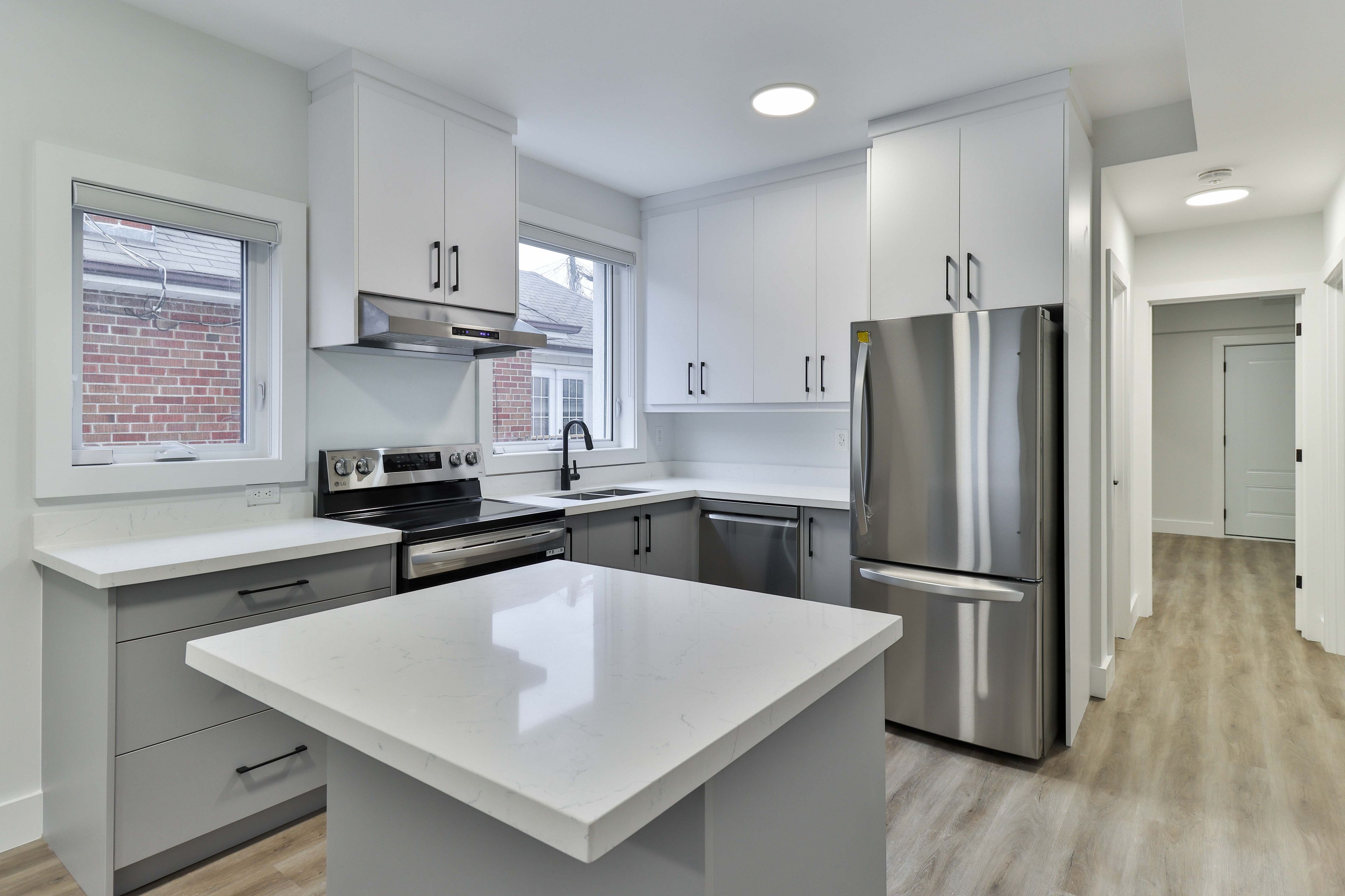• Open-concept kitchen with quartz countertops and premium appliances.