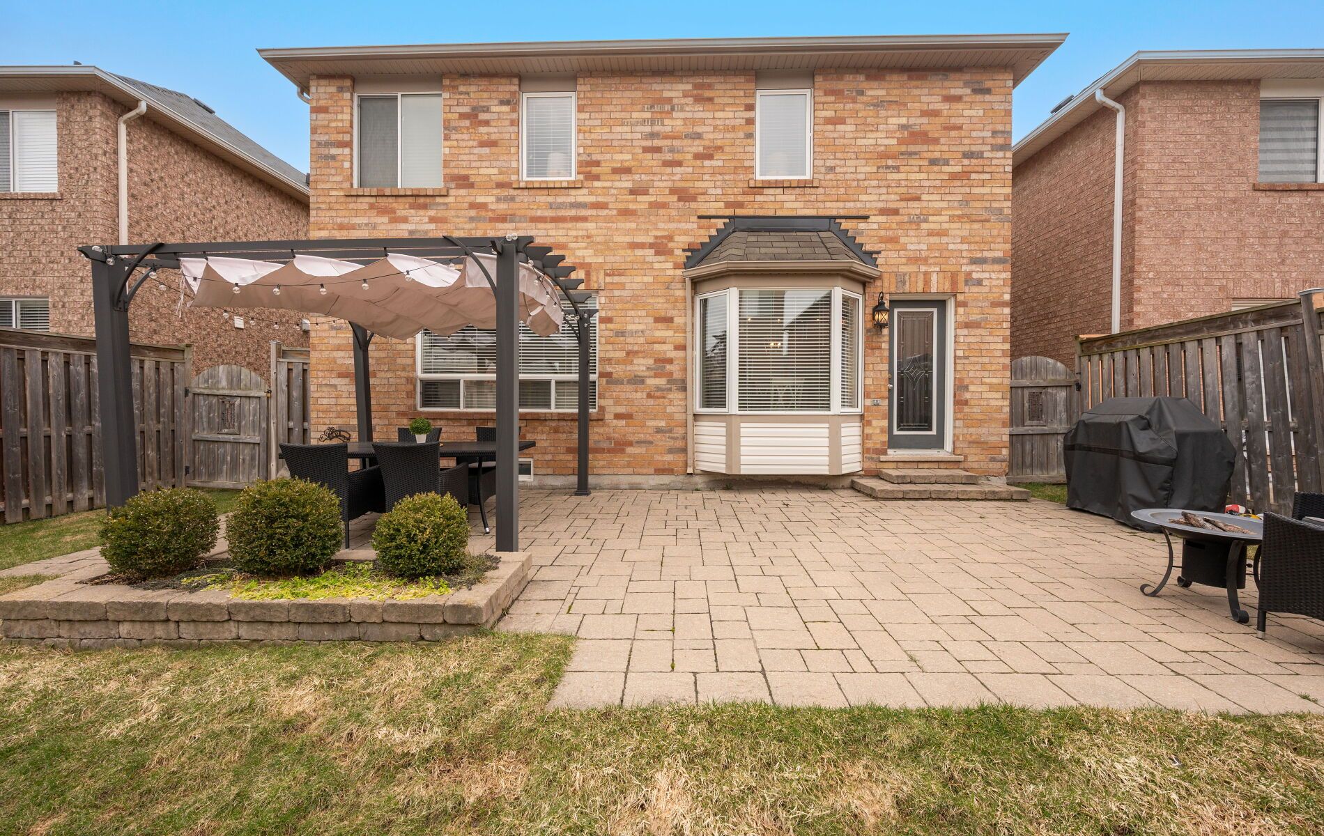 • Private backyard retreat with a patio and pergola for outdoor enjoyment.