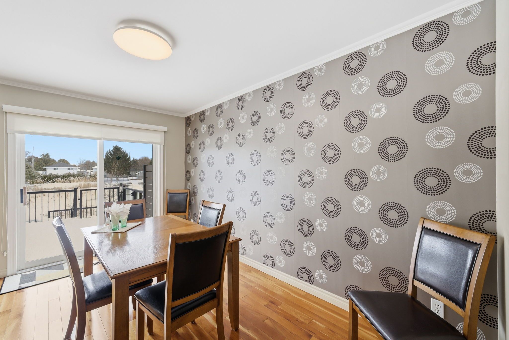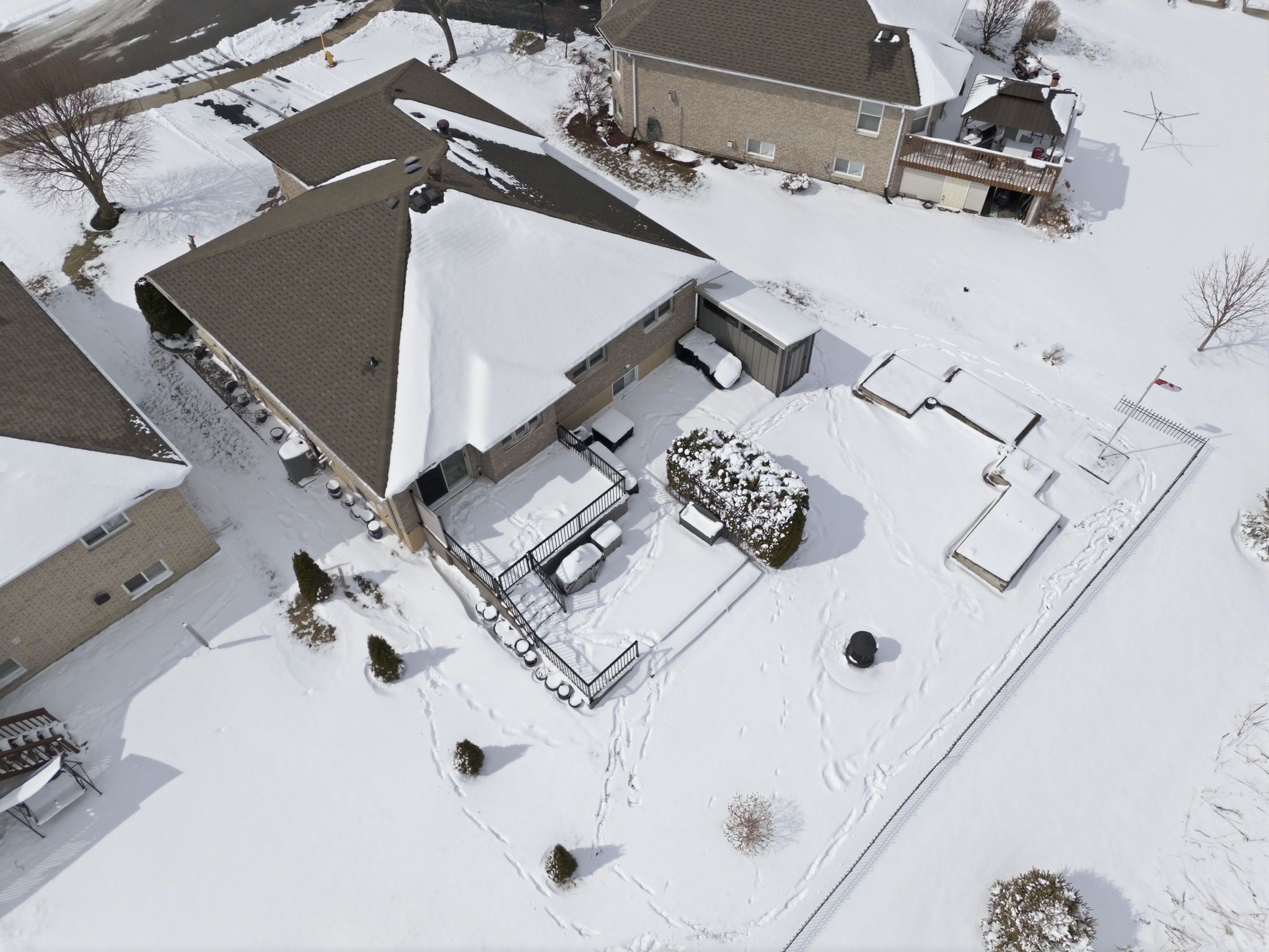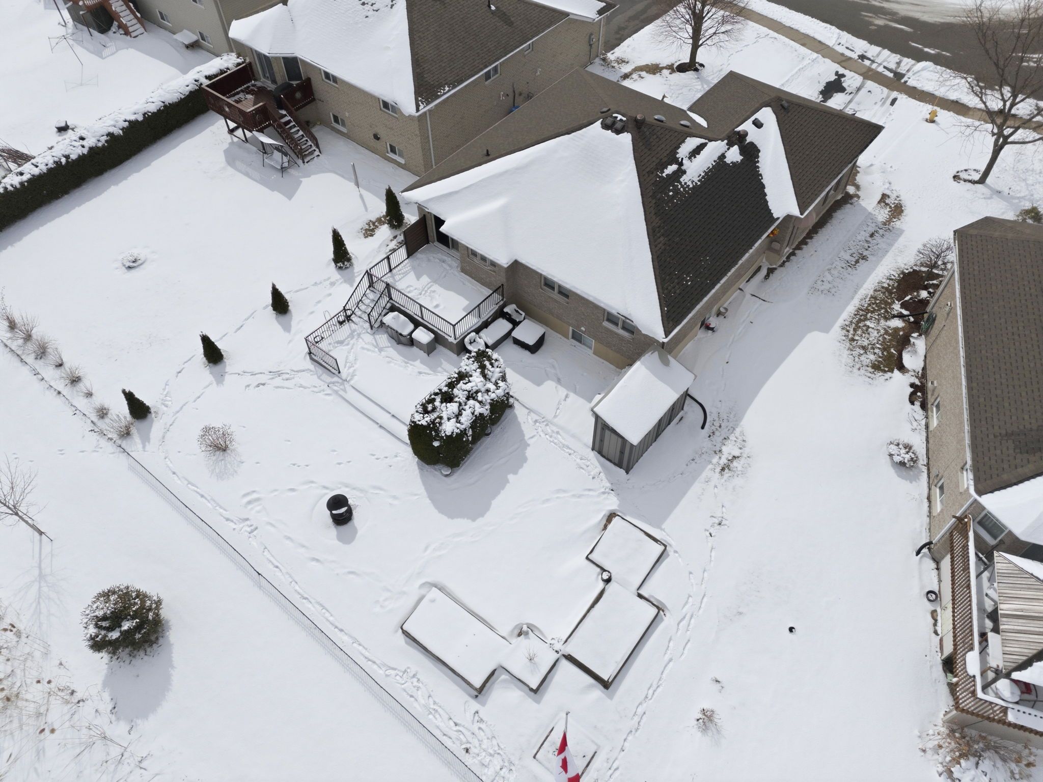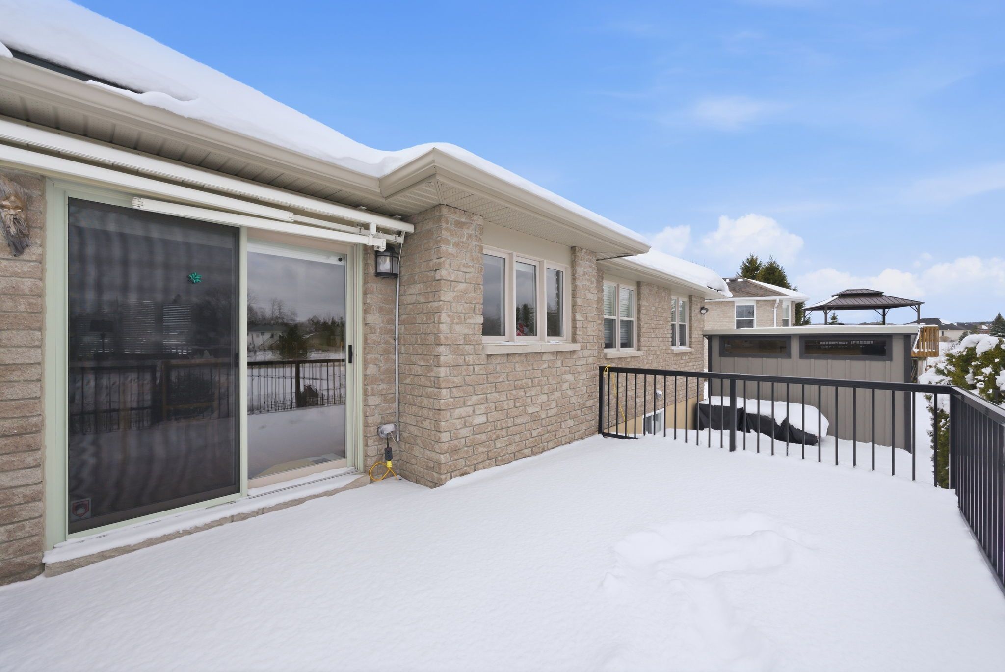 • Two-level composite deck ideal for outdoor gatherings and privacy.