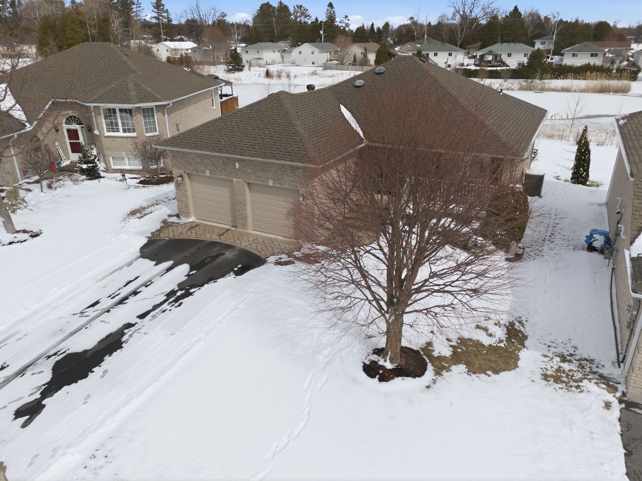 Tucked into one of brighton's most desirable areas, this inviting 3-bedroom, 3-bathroom bungalow offers over 2,000 sq. Ft. Of finished living space and a backyard setting that truly stands out. Backing onto lush green space and a picturesque pond, it's a peaceful retreat where you can enjoy nature right from home. The outdoor space is designed to be enjoyed, with a two-level composite deck complete with privacy screens, a walkout from the kitchen and dining area, and a level yard ideal for gardening or play. Raised garden beds and an interlock patio create the perfect backdrop for summer evenings around a fire. Inside, the main floor offers a bright, functional layout with a comfortable flow between living, dining, and kitchen areas. The primary bedroom provides a quiet escape, featuring its own 3-piece ensuite with a walk-in shower. Two additional spacious bedrooms and a full 4-piece bathroom round out the main level. Downstairs, the fully finished basement expands your living options with multiple lounge areas, a dedicated office space, a laundry room, a convenient 2-piece bath, and plenty of storage-ideal for families or those needing flexible space. Set in a quiet, family-oriented neighbourhood, you're just a short walk to brighton bay and the marina, with downtown shops, restaurants, and amenities only minutes away. A double car garage and wide driveway add to the home's everyday convenience.