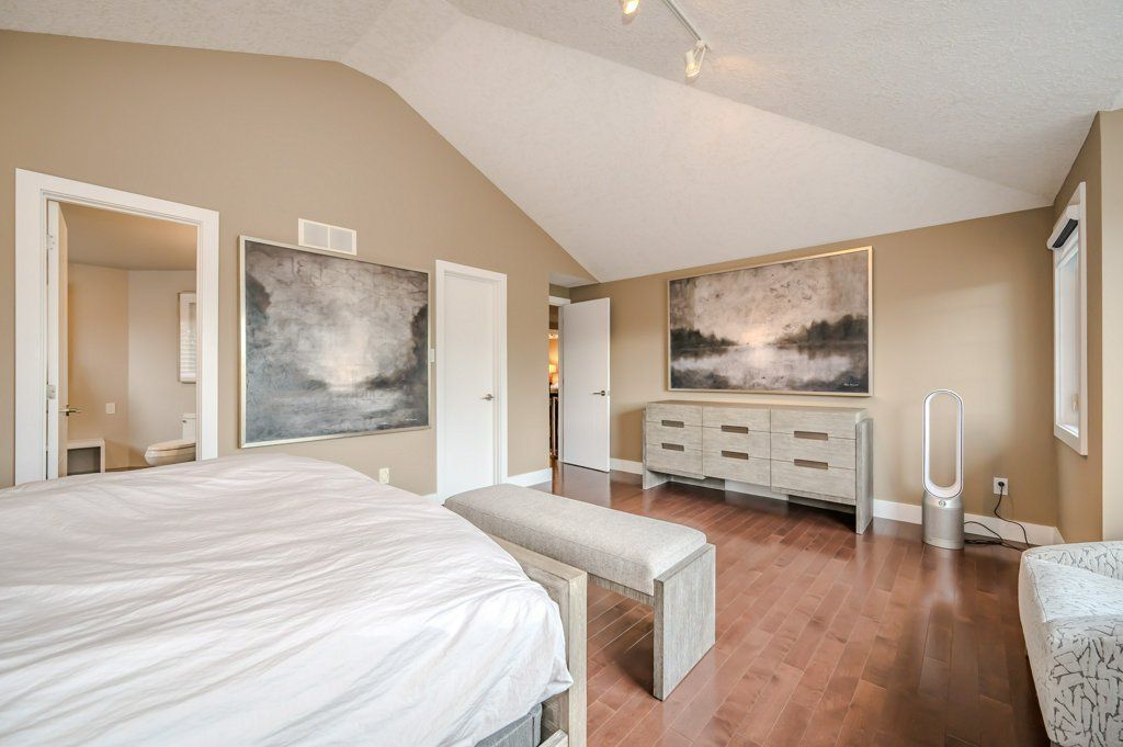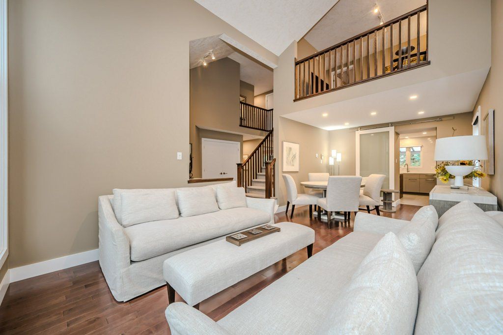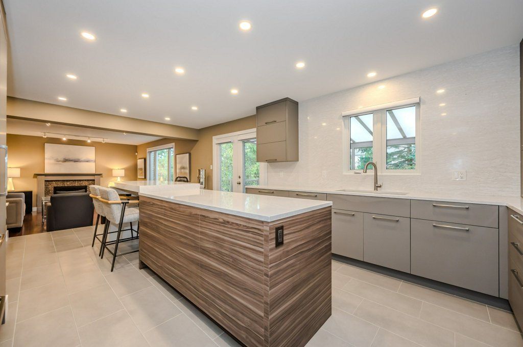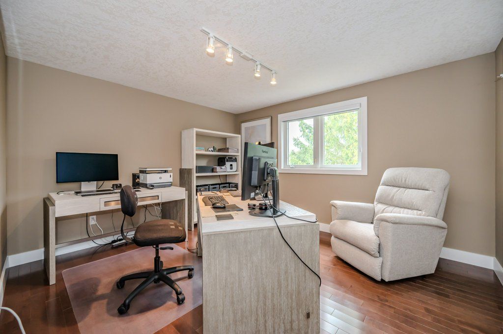 This pristine family home is tucked away on a quiet cul-de-sac in the highly sought-after pine ridge neighbourhood. A newly installed interlock driveway completed last year adds exceptional curb appeal to an already beautiful home. The main level offers a large living room with a vaulted ceiling, a dining room, and a family room with a gas fireplace, all featuring beautiful hardwood flooring. The freshly renovated kitchen showcases modern cabinetry, a panel covered fridge and dishwasher, stunning quartz countertops, and a waterfall island with integrated counter height seating. A convenient two piece powder room and laundry room complete the main level. Upstairs you will find three spacious bedrooms, a four piece main bathroom, and an open concept den. The primary bedroom features a walk in closet and a stunning ensuite with a floor-to-ceiling glass shower enclosure, waterfall shower system, and seamless tile insert drain. The main bathroom impresses with a glass wall shower enclosure, custom cabinetry, and a freestanding soaking tub. Thoughtful details throughout the main and upper levels include modern baseboards and casing, framed floor vents, updated interior doors and hardware, and custom window coverings. The walkout basement offers a rec room with a gas fireplace, a two piece washroom, and additional space for games or crafts. Outside, the serene backyard setting features mature trees and lush gardens, with views from the covered composite deck and the patio below. Enjoy added privacy backing onto trails and green space, just steps from three nearby parks, neighbourhood trails, south end amenities, and quick access to the highway. The quality of updates throughout this home are truly unparalleled and must be seen in person to be fully appreciated.