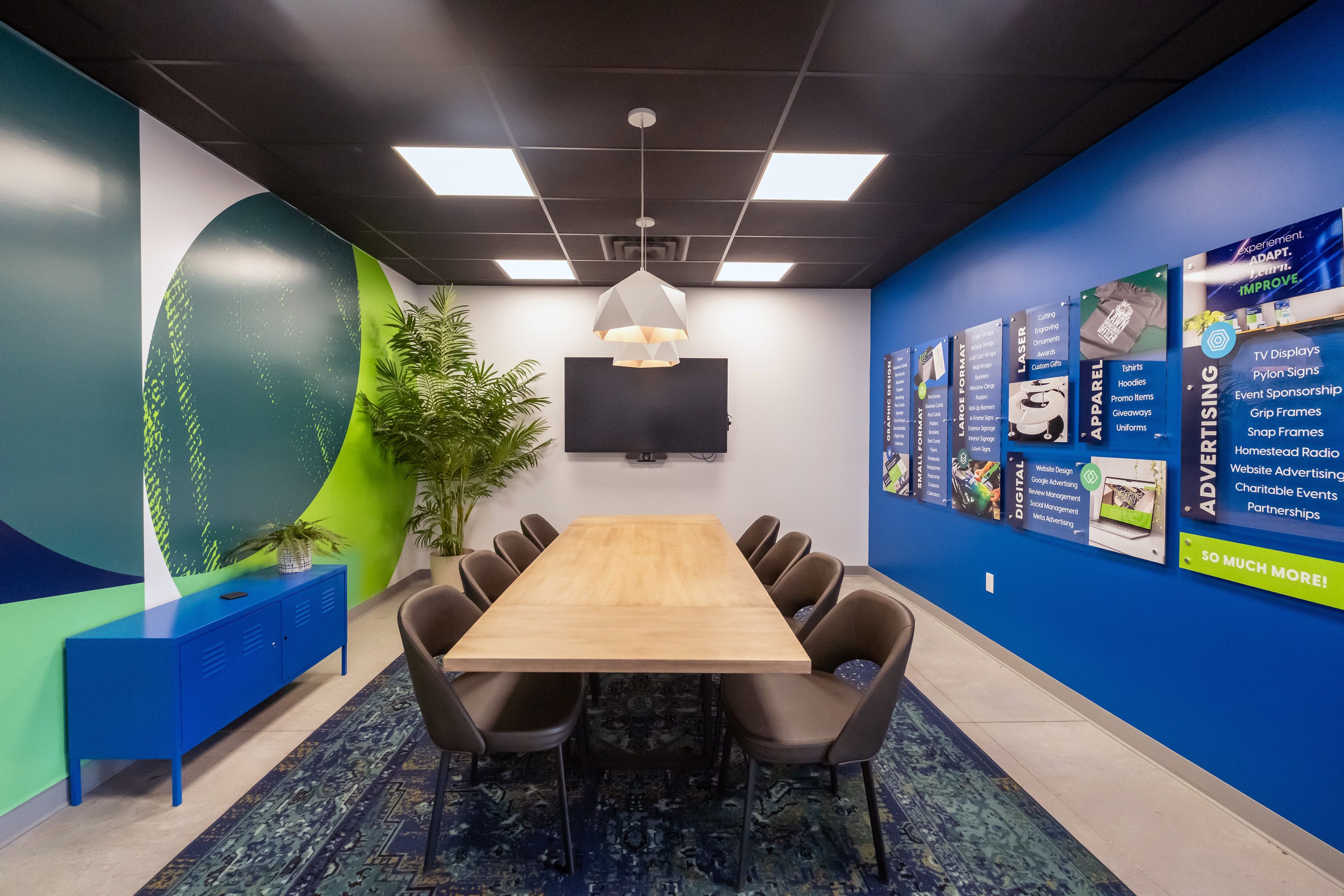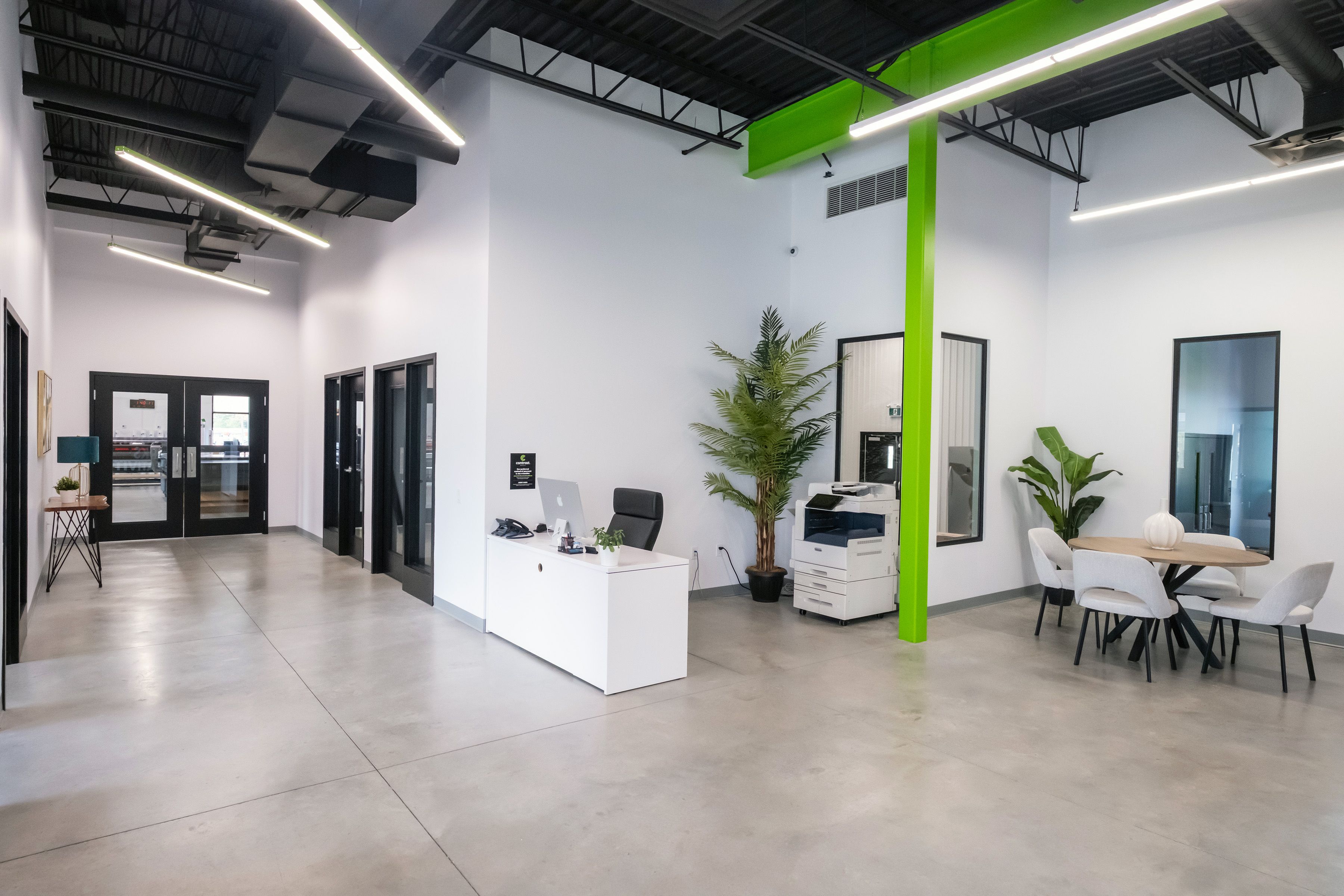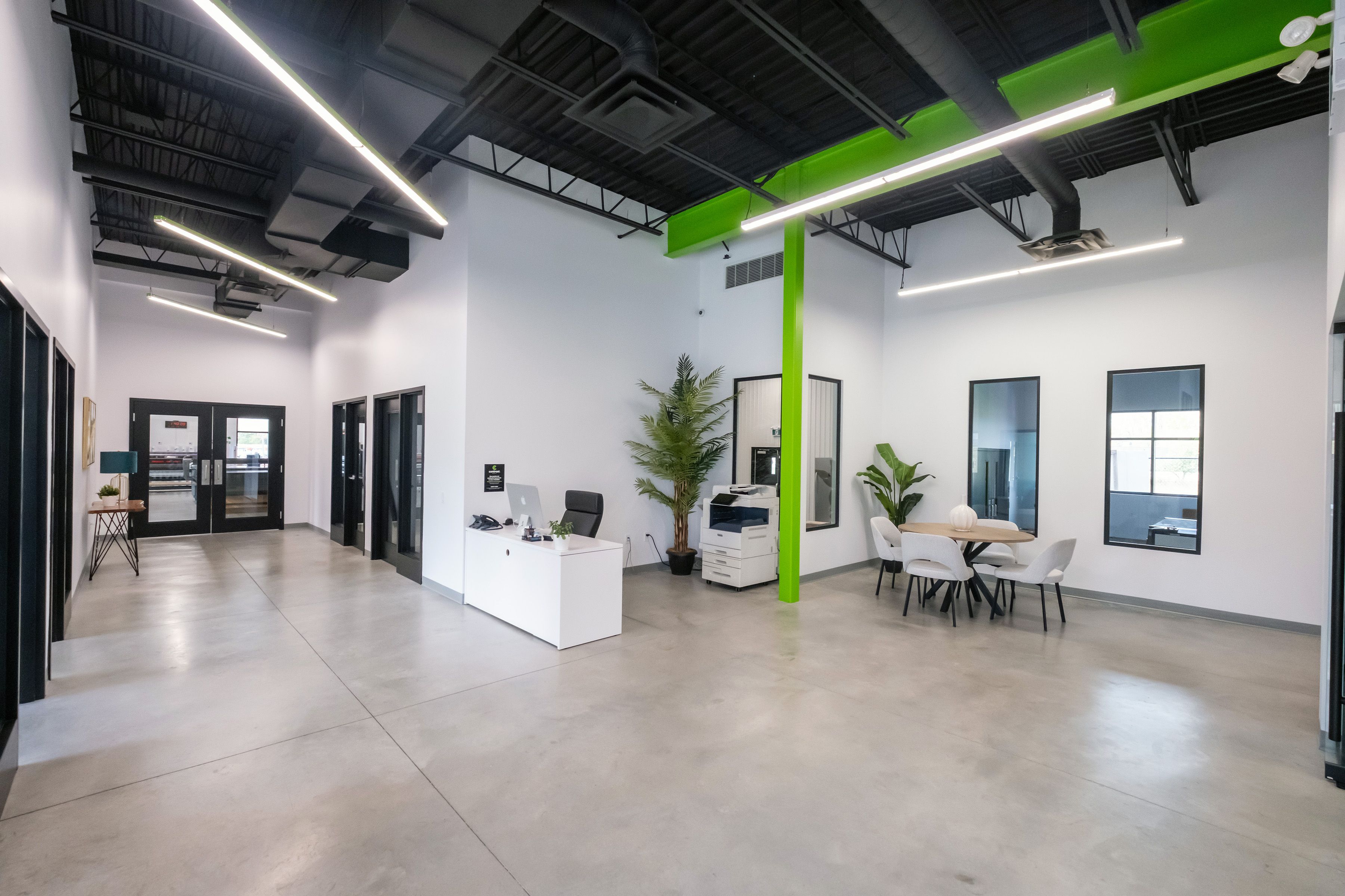 • Flexible layout includes private offices, large boardroom, and showroom area.