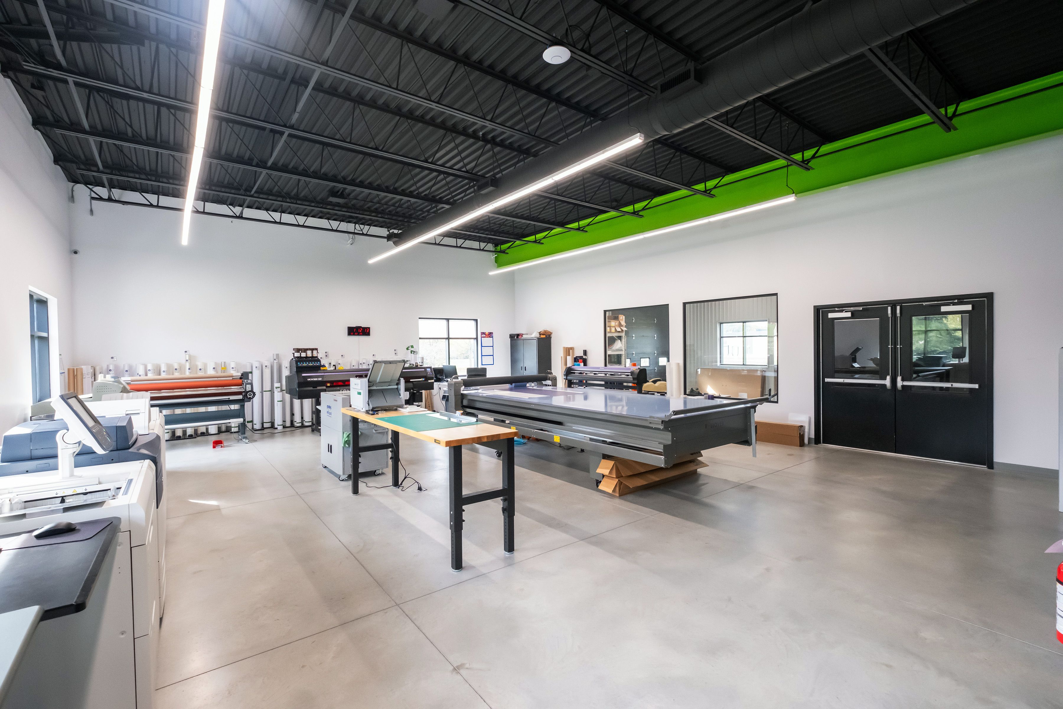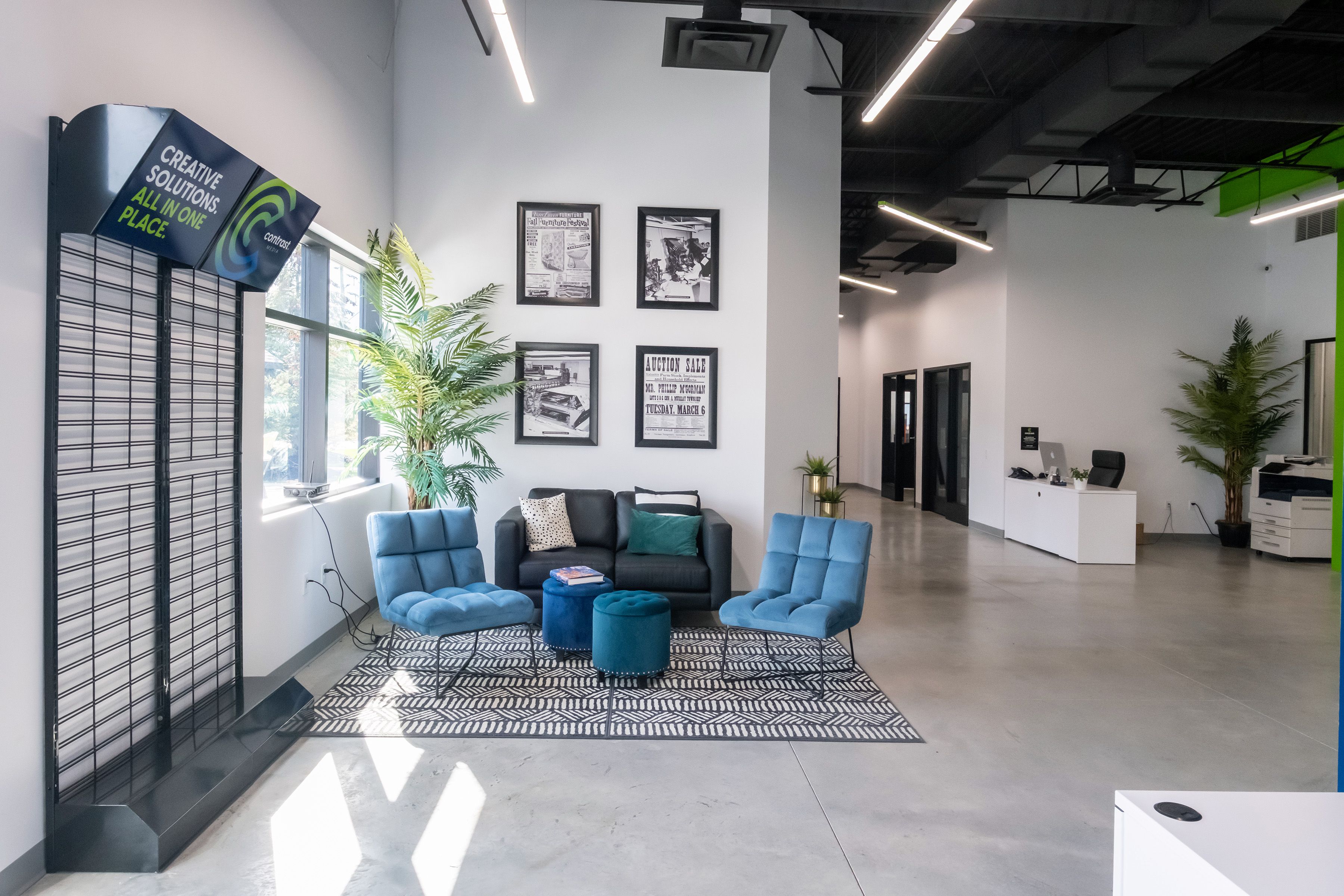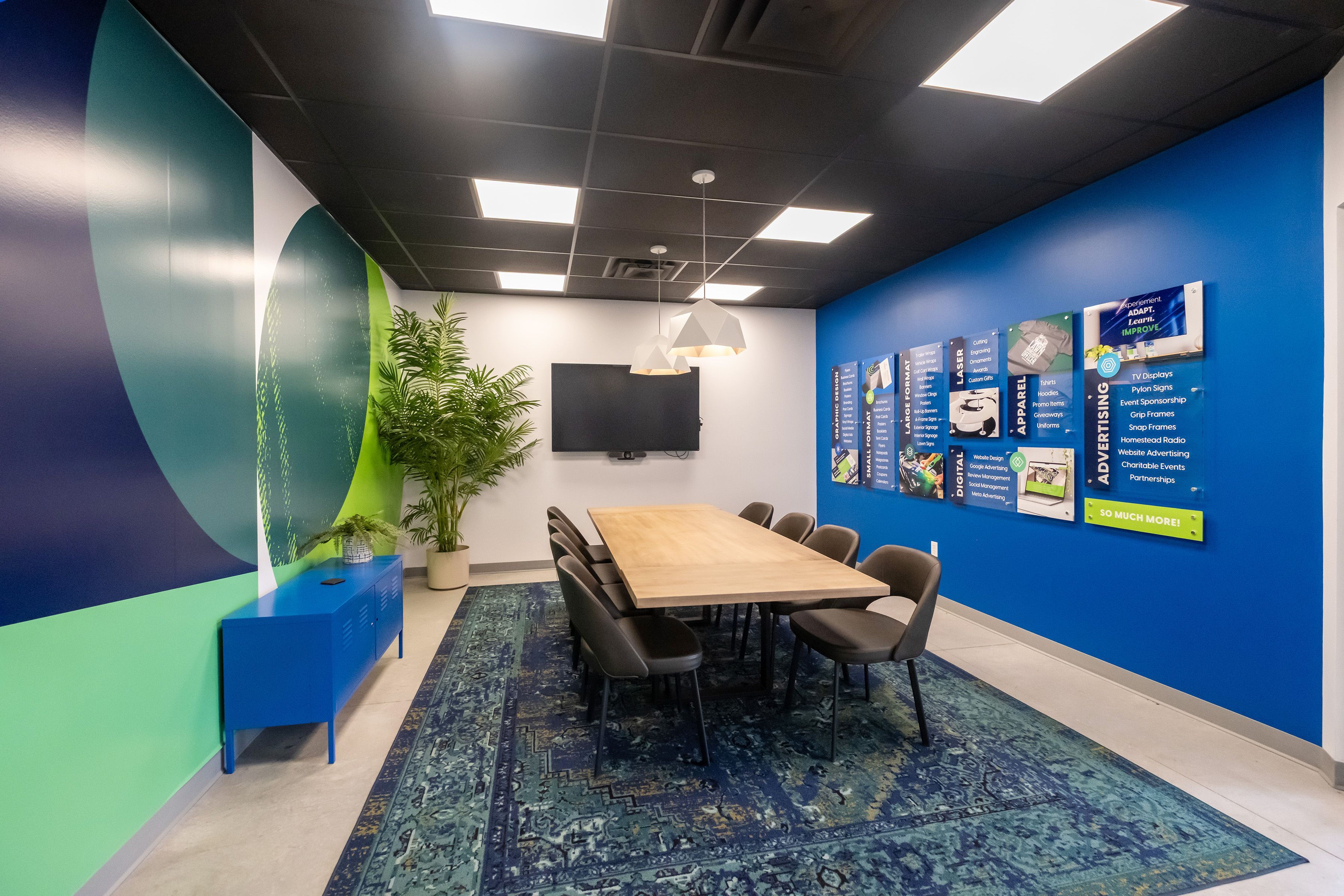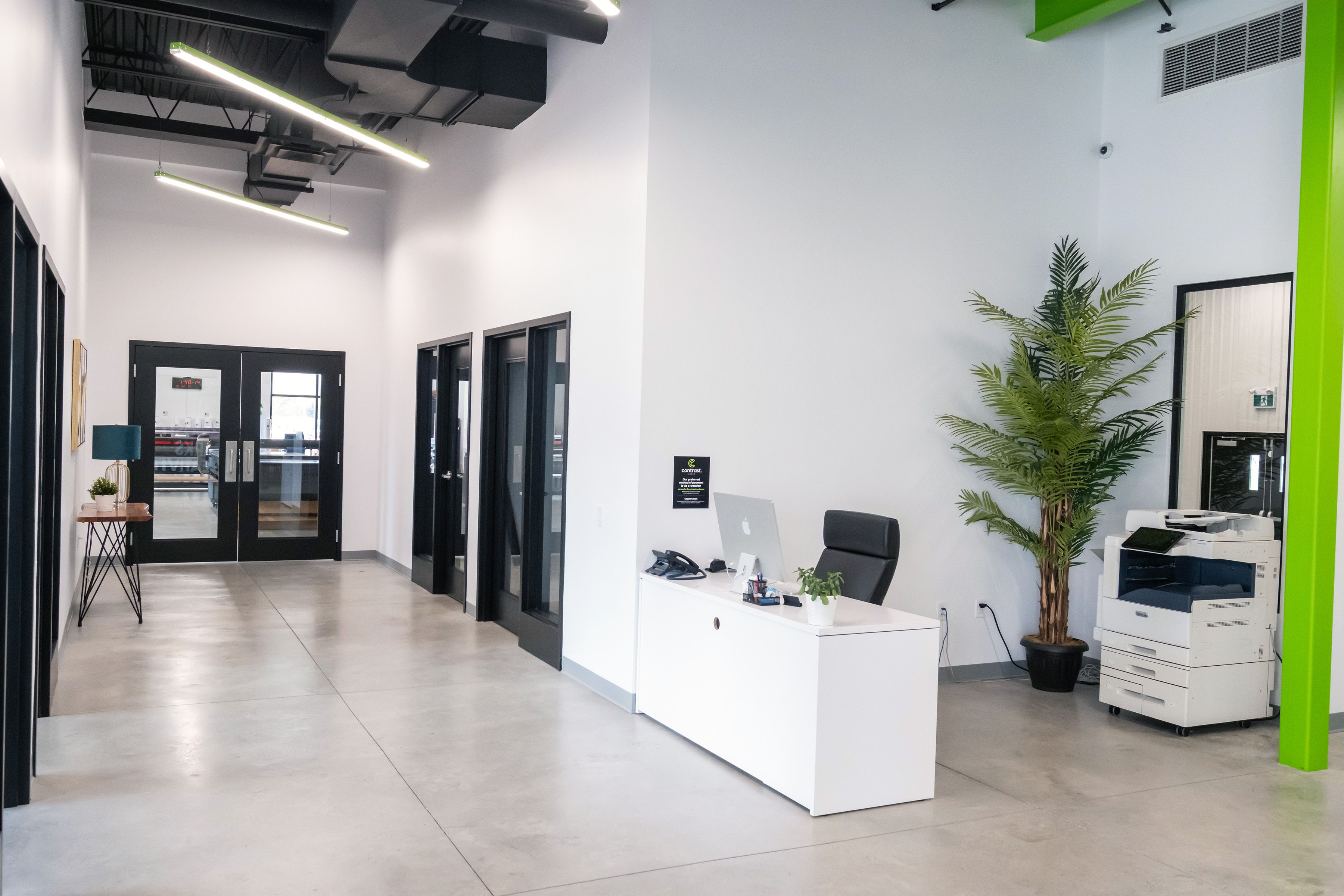 • Flexible layout includes private offices, large boardroom, and showroom area.