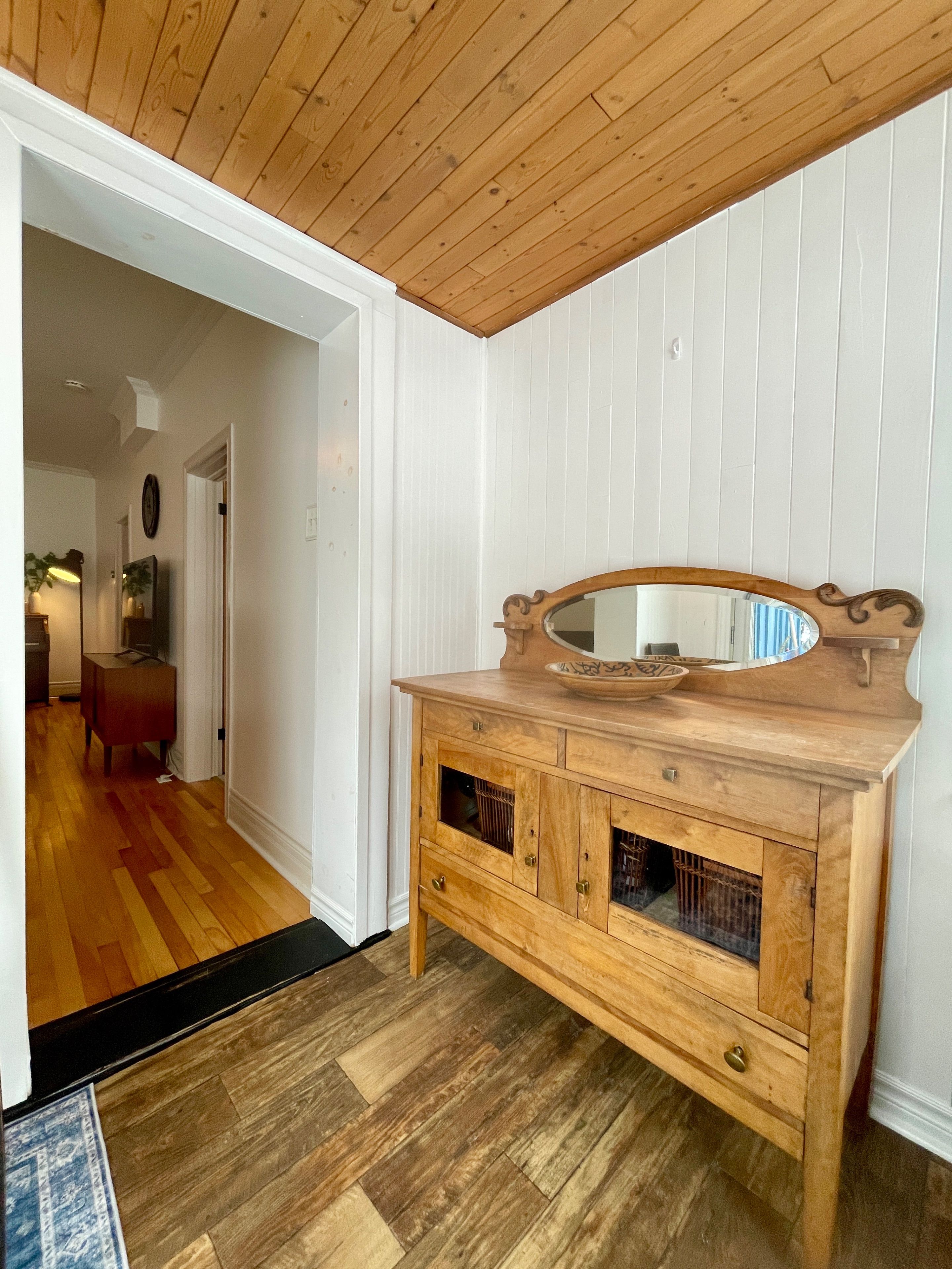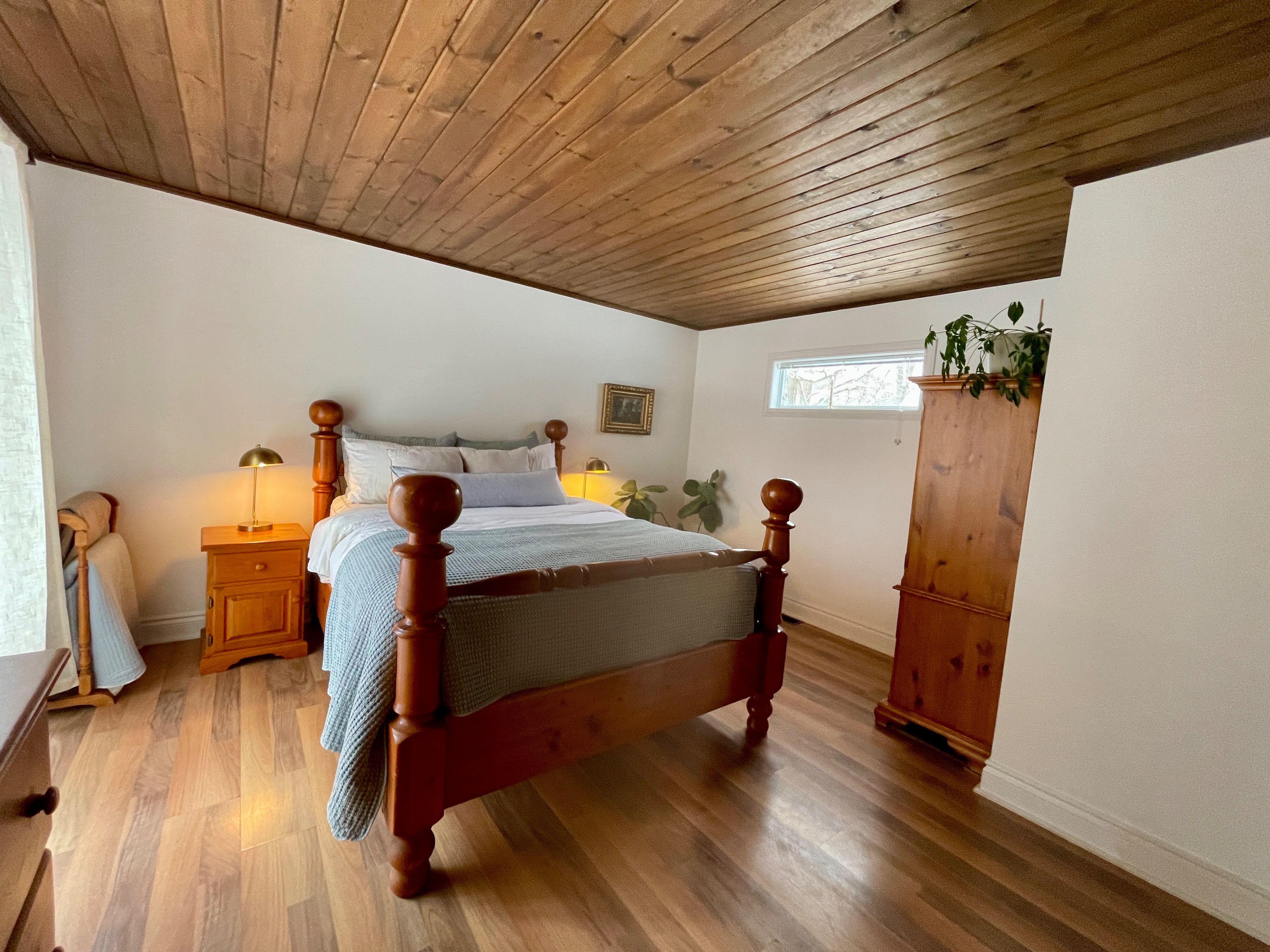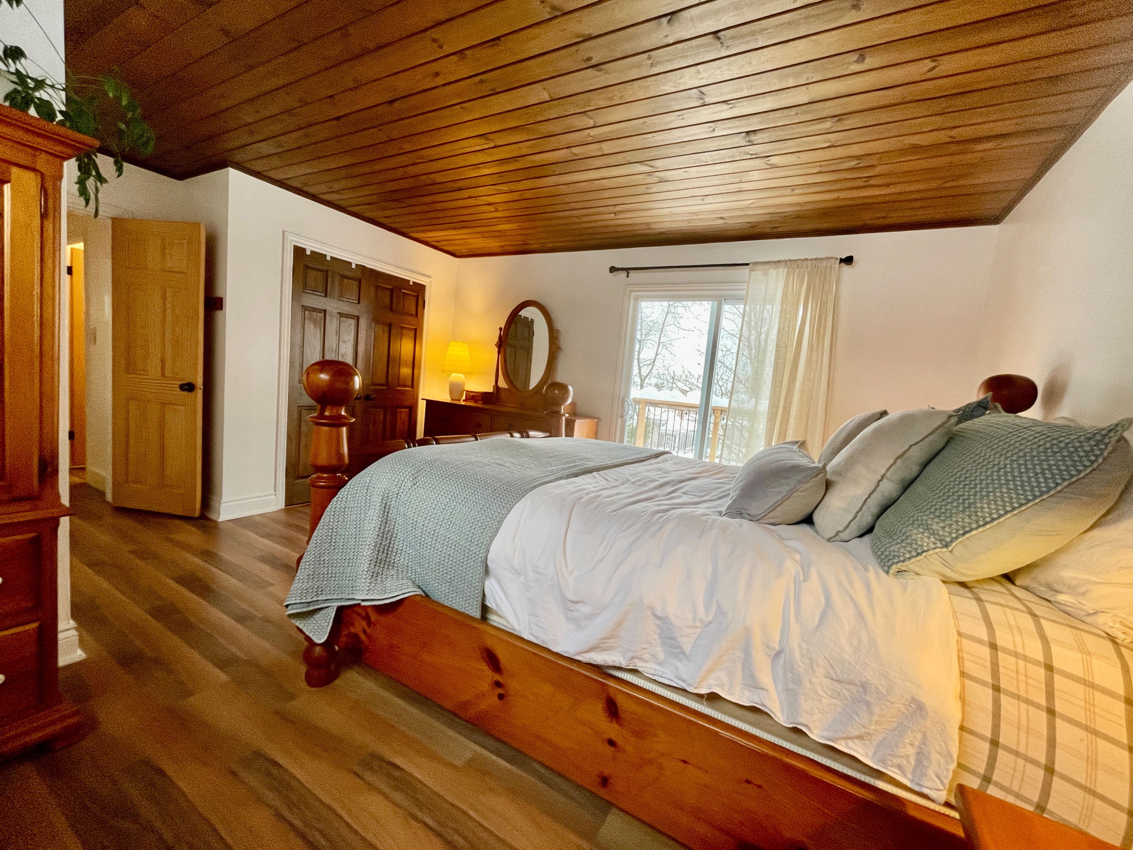 Charm, history & comfort all offered in this well loved & cared for family bungalow. 3 main floor bedrooms, open living/family space warm & welcoming from the front entry on, enjoyable views throughout. Primary bedroom walks out to spacious deck with stairs to backyard. Located a few streets from downtown huntsville. Features include town services - water & sewer, gas heating & gas fireplace in downstairs family room with walkout to fenced backyard featuring perennial gardens & space to play for kids and pets. Nearby lakes, rivers, trails, library, algonquin theatre, schools, summit centre & everything amazing about in - town life! Even a carport, storage and laundry with extra shower. Move in ready.