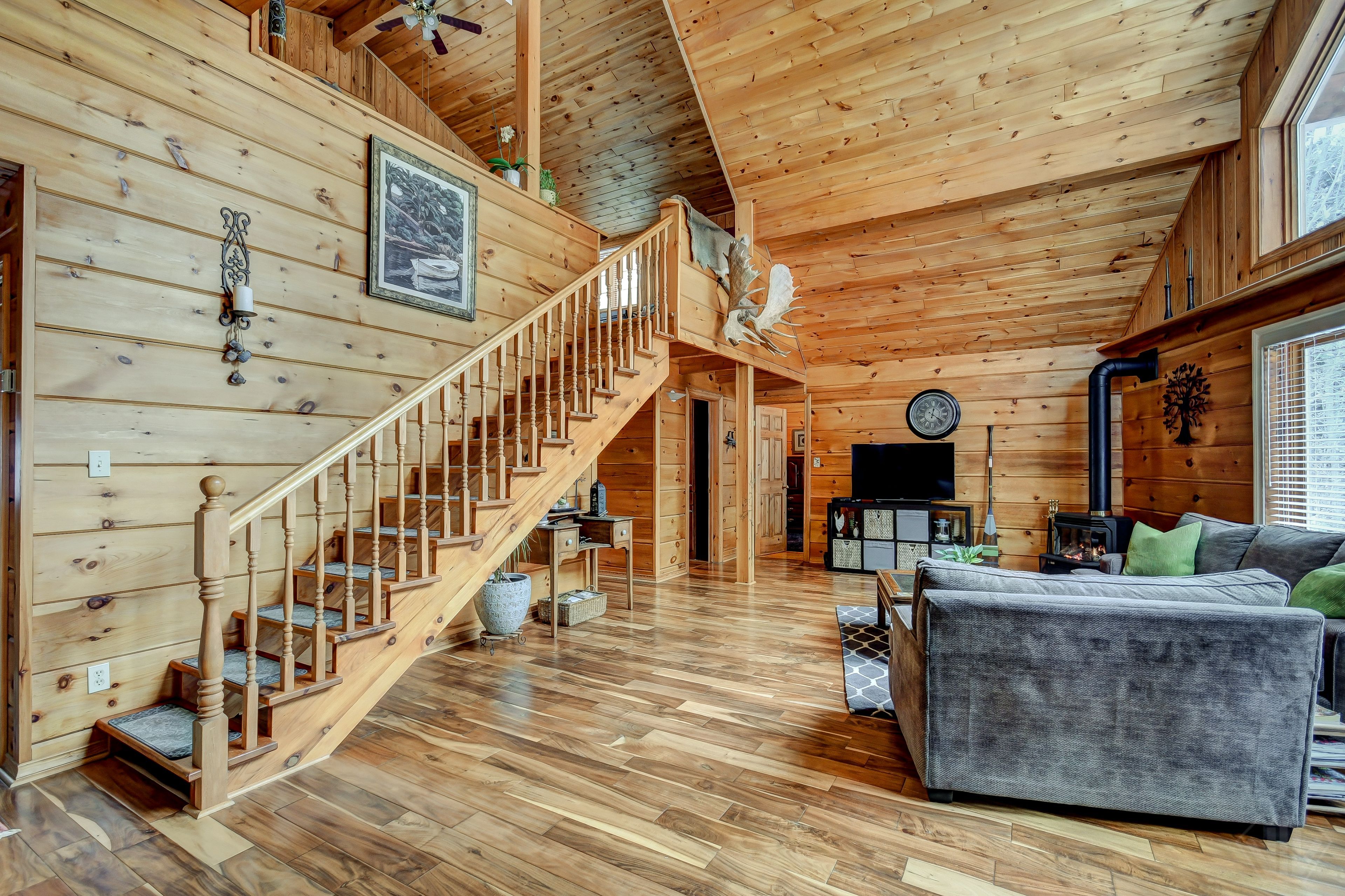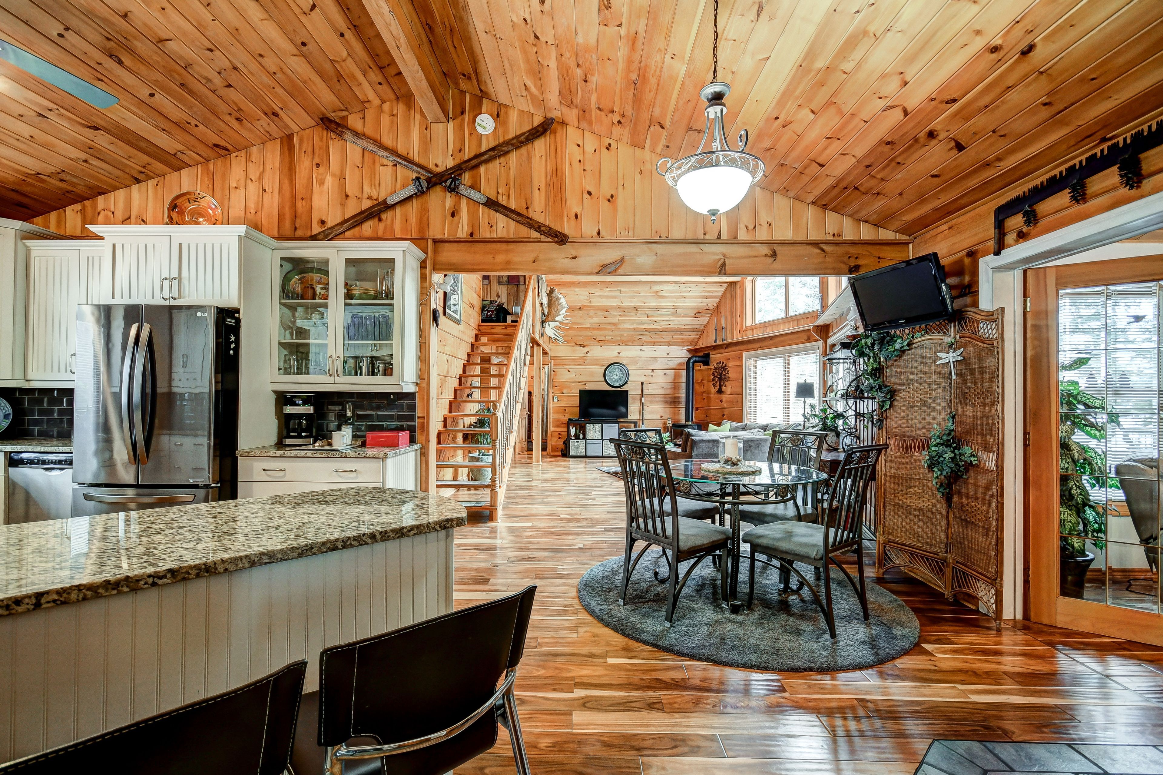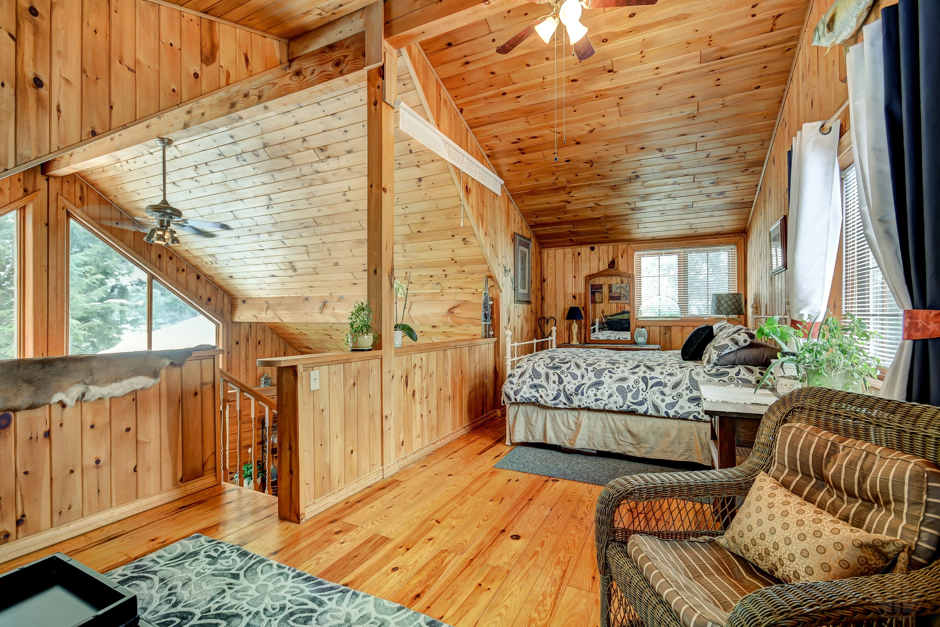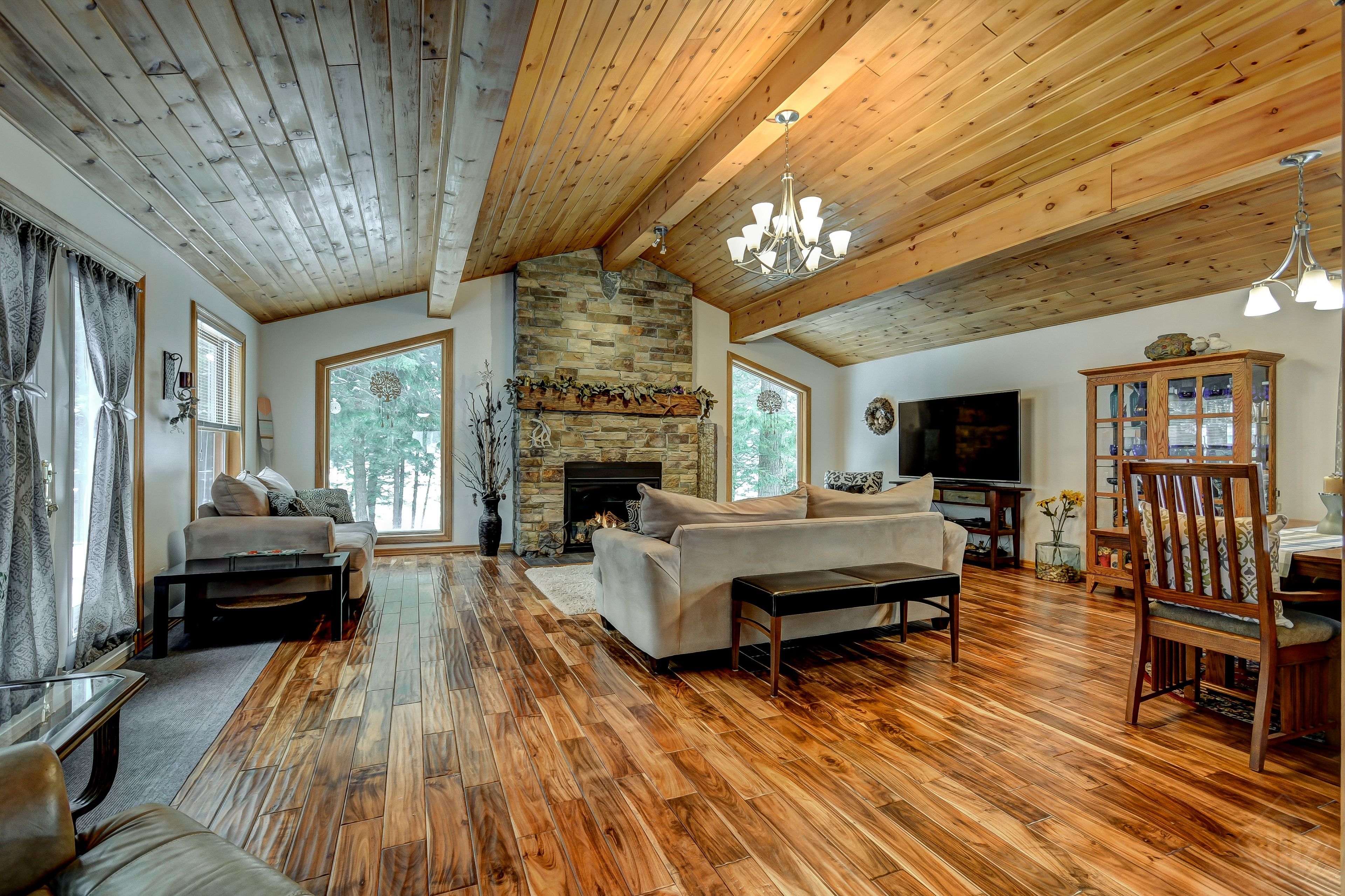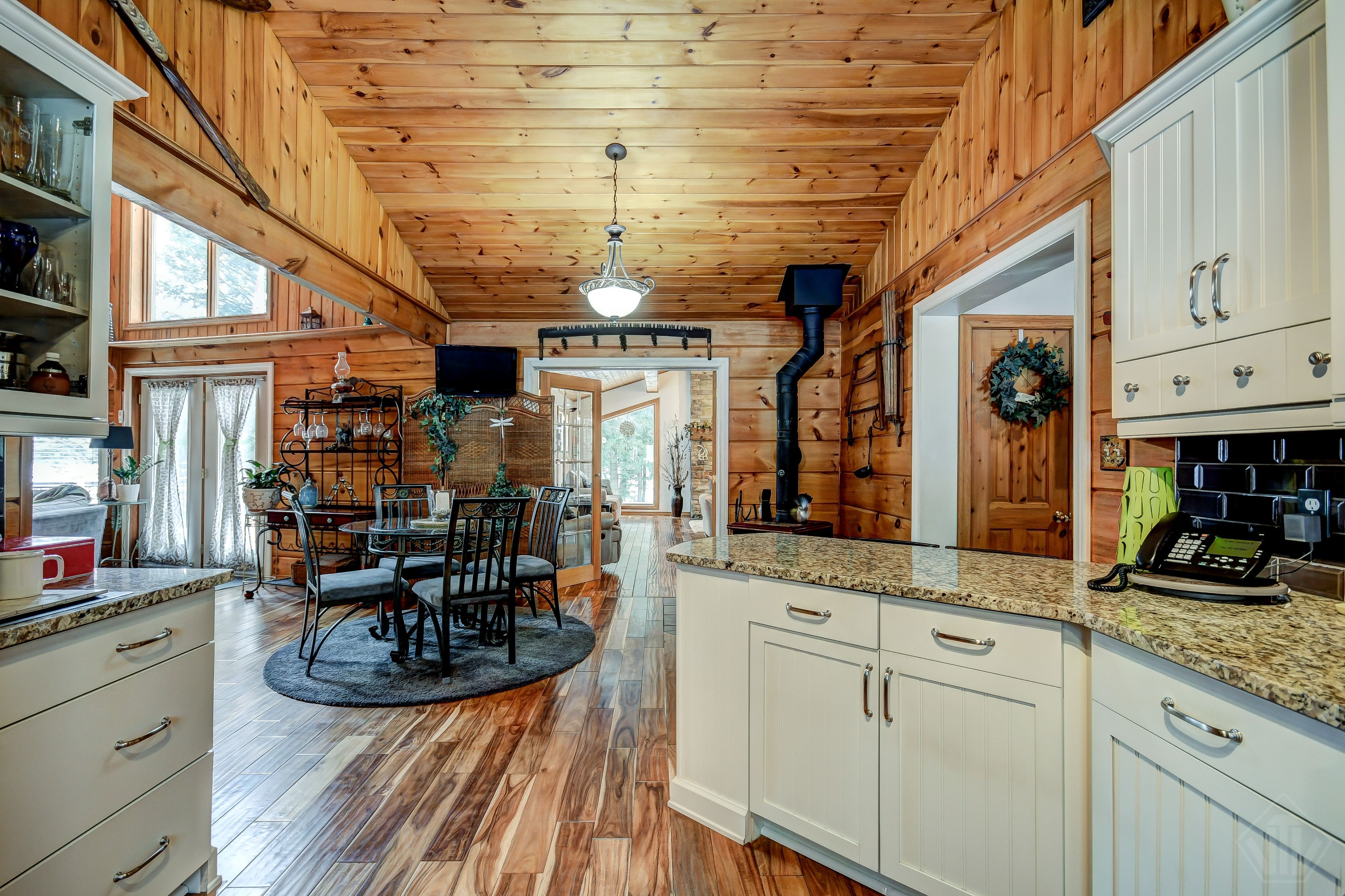This point-of-land is just over 2 acres in size and has 209 feet of water frontage, providing excellent privacy on beautiful deer lake. Three bedroom, year round home with detached 24 x 28 garage. This home is for those that love the warmth of wood finishings; there is teak flooring, pine walls and douglas fir cathedral ceiling. The kitchen has plenty of cupboards, granite countertops and comes with the appliances. The living room has cathedral ceiling, propane fired, freestanding fireplace and view towards the lake. Main bedroom has a walkin' closet and ensuite bathroom with jet tub and heated floor. One level living here with 3pc bathroom, 2nd bedroom and laundry, also on the main floor. The family room boasts a floor to ceiling fireplace and this room can accommodate nicely for gatherings of family and friends with its direct access to the deck. The loft partially looks over the living room and acts as both 3rd bedroom on one side and sitting area on the other. Just outside the screened in porch is a patio with view of both vegetable and flower gardens. The home was built in 2000, it has a 16kw on-demand generator, domestic water is from a drilled well and connected to a septic system. The two car garage has accommodations above and a carport for extra covered storage. Other outbuildings include: a 8 x 8 sauna and 13 x 20 driveshed. All buildings have matching metal roof. This property is in the unincorporated/unorganized township of lount with year round road access. Ofsc snowmobile trail c105d runs the length of deer lake, providing excellent access to the local trail system. Deer lake is located north of hwy 124 and west of hwy 11 and the villages of sundridge and south river.