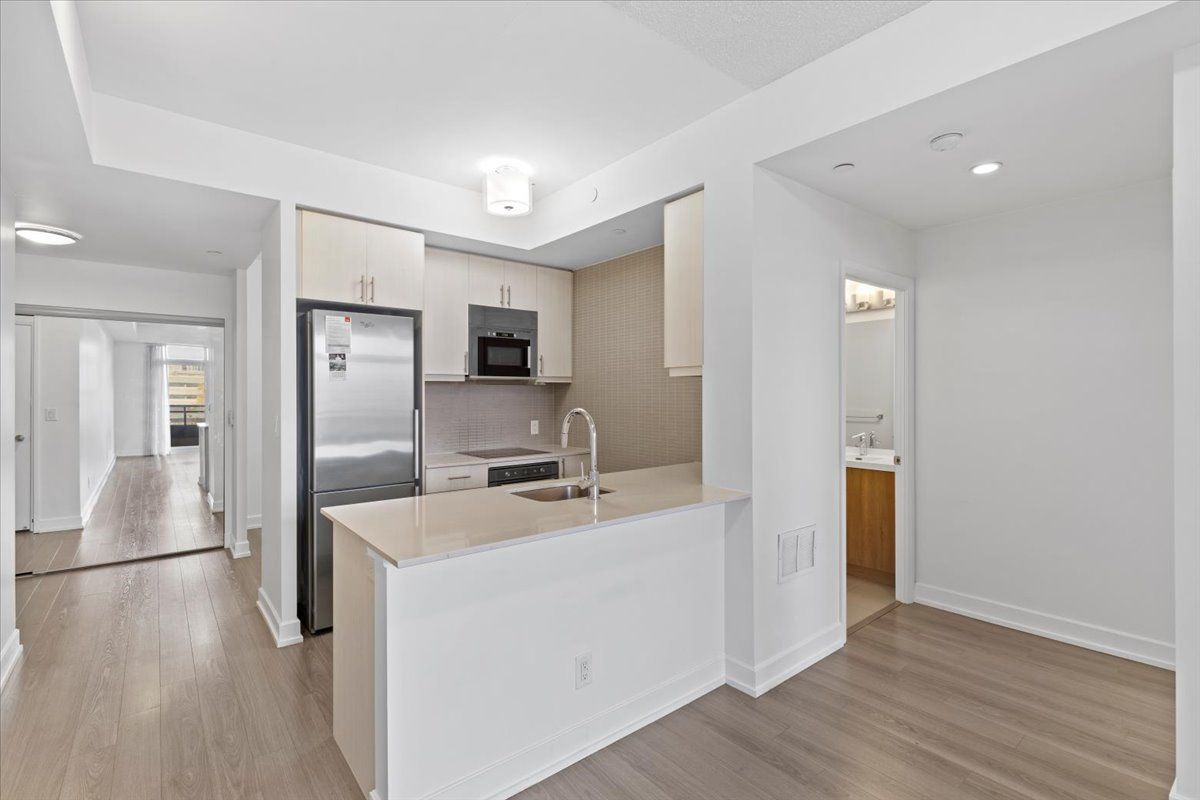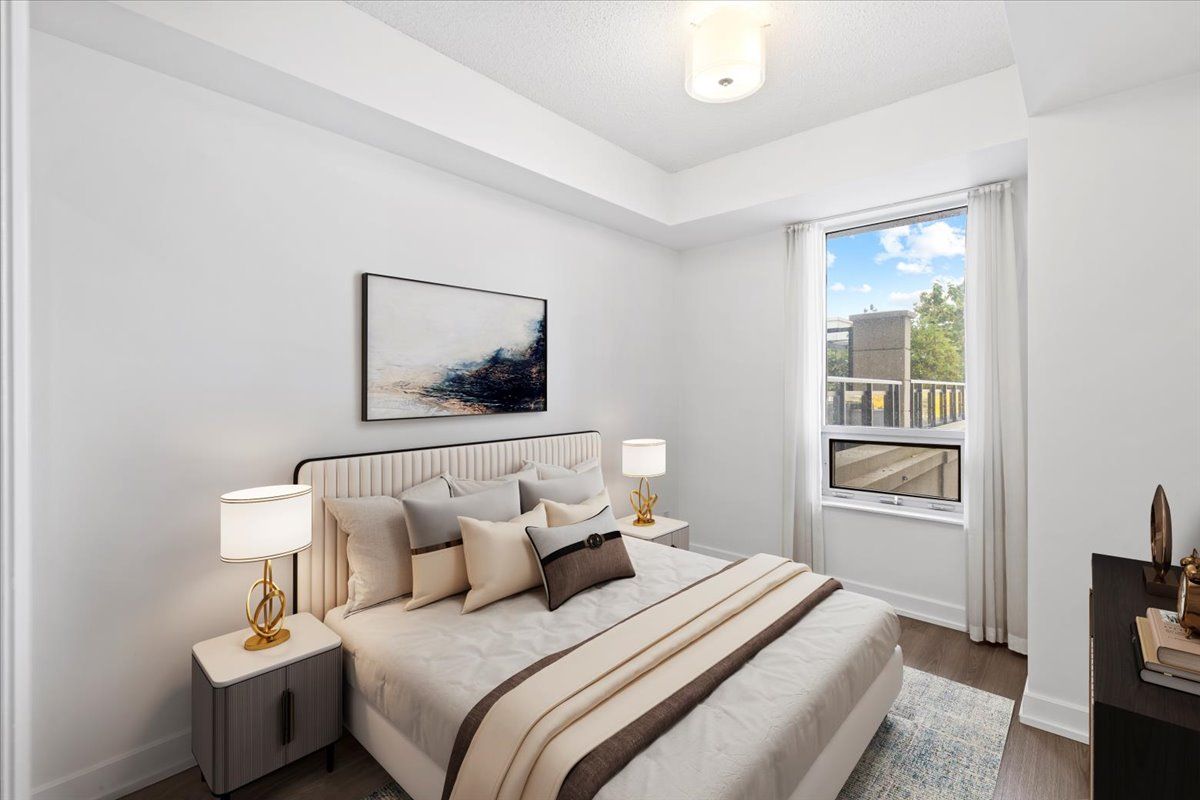 Bright and well-maintained 1-bedroom plus oversized den condo with 9-ft ceilings throughout. Features an open-concept galley kitchen and efficient layout with low hydro costs. Includes 1 parking and 1 locker. Prime etobicoke location with easy access to ttc, highways, and downtown toronto.