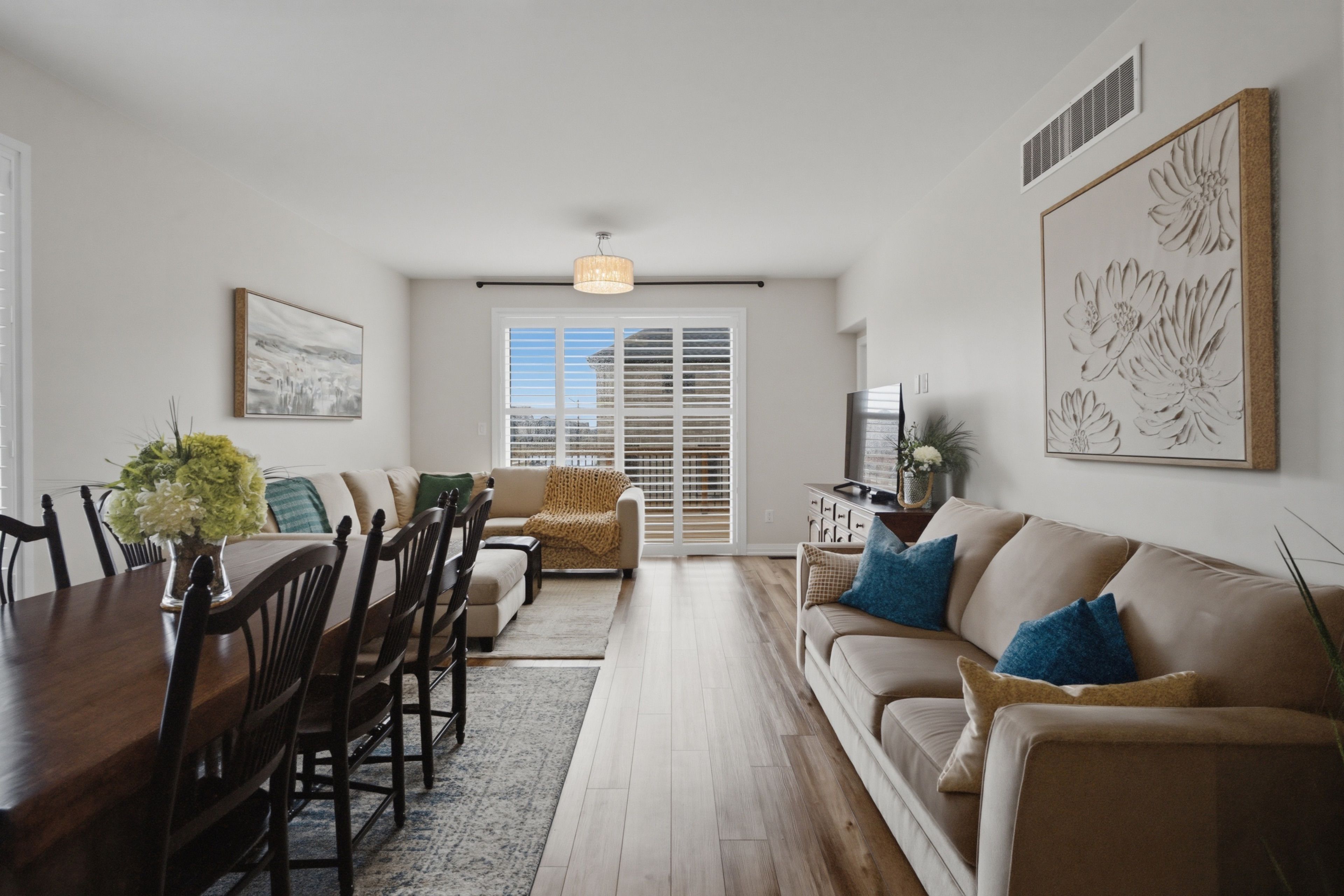 • Open-concept layout filled with natural light and sunset views.