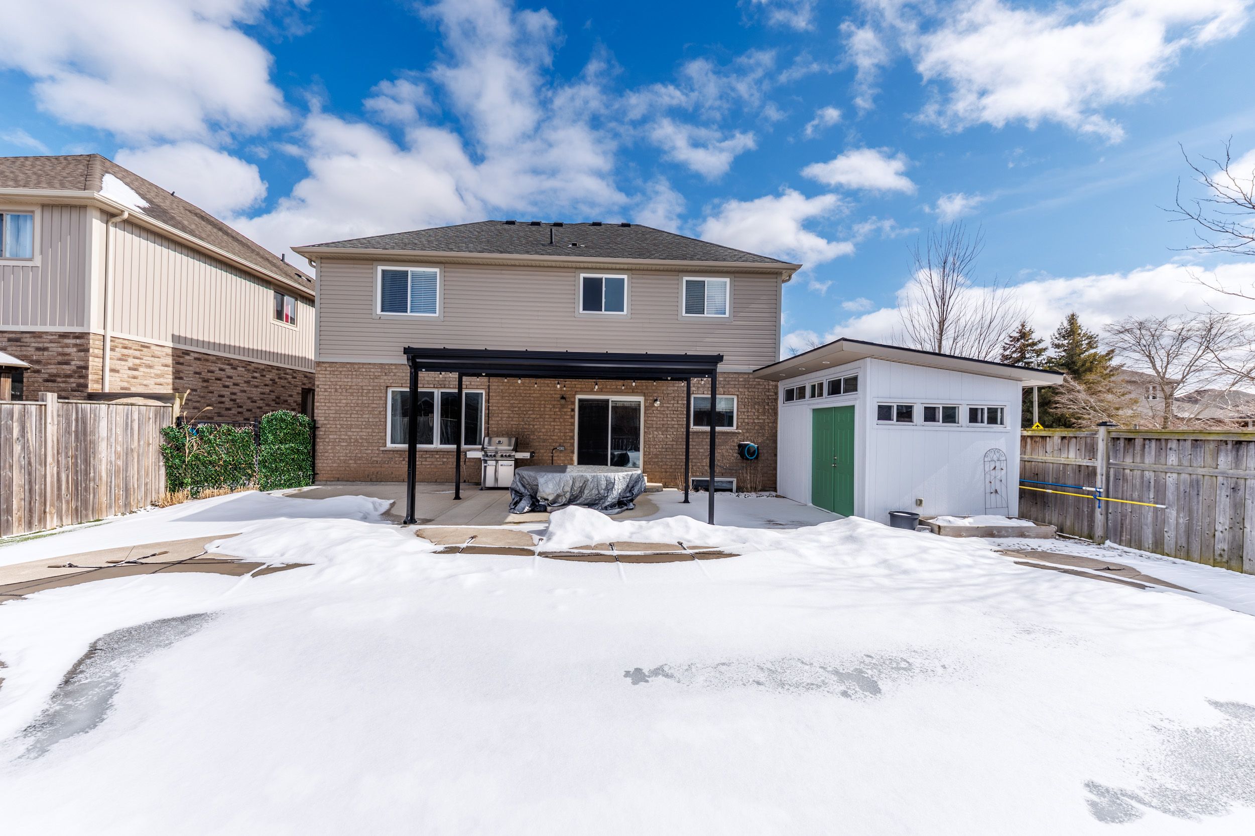Welcome to this exceptional 2-storey, 2,400 sq. Ft. Family home perfectly situated on a premium corner lot in one of the area's most sought-after locations. From the beautiful stone and stucco exterior to the private inground pool oasis, this property offers the ideal blend of luxury, space, and lifestyle. Step inside to find hardwood flooring throughout most of the home, complemented by ceramic tile in key areas. The main floor features a spacious living room with a cozy gas fireplace, a large formal dining room, and a bright kitchen complete with a generous size island and granite countertops, servery/butler's pantry, and plenty of cabinetry-perfect for cooking, hosting, and everyday family living. Upstairs, you'll find three oversized bedrooms, each with walk-in closets, plus an upper loft ideal for a second family room, office, or kids' zone. The primary suite boasts a spa-like ensuite with a relaxing soaker tub. The main floor also includes laundry, direct access to the double garage, and a layout designed for comfort and convenience. Outside is where this home truly shines: a gorgeous, private backyard featuring mature landscaping, fully turfed lawn, lounging areas, and a sparkling inground pool-your own personal retreat. The lower level is roughed-in for a 4th bathroom and offers a blank canvas ready for your finishing touches, whether you envision a rec room, gym, or extended living space.