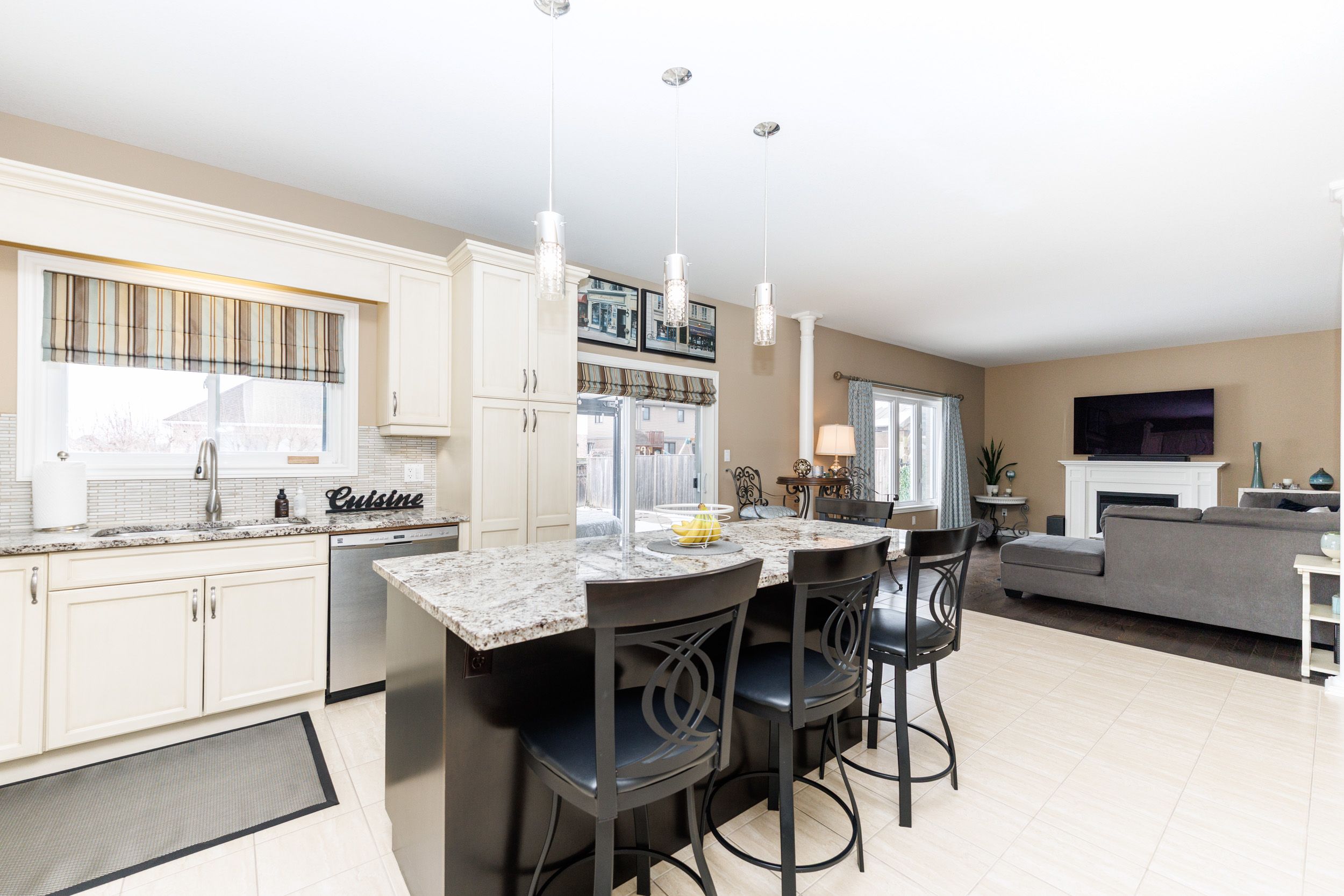 • Spacious main floor with a cozy gas fireplace and formal dining.