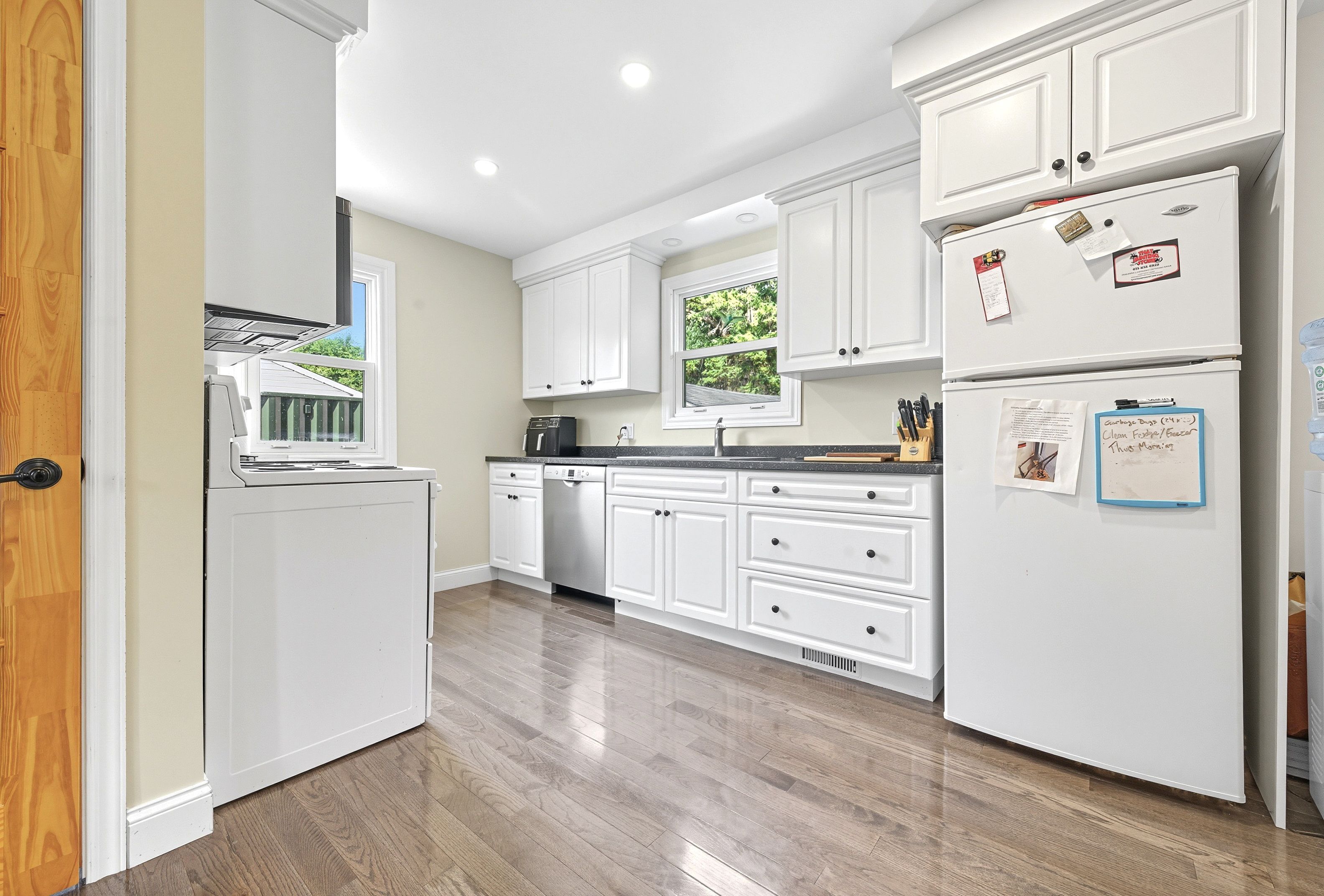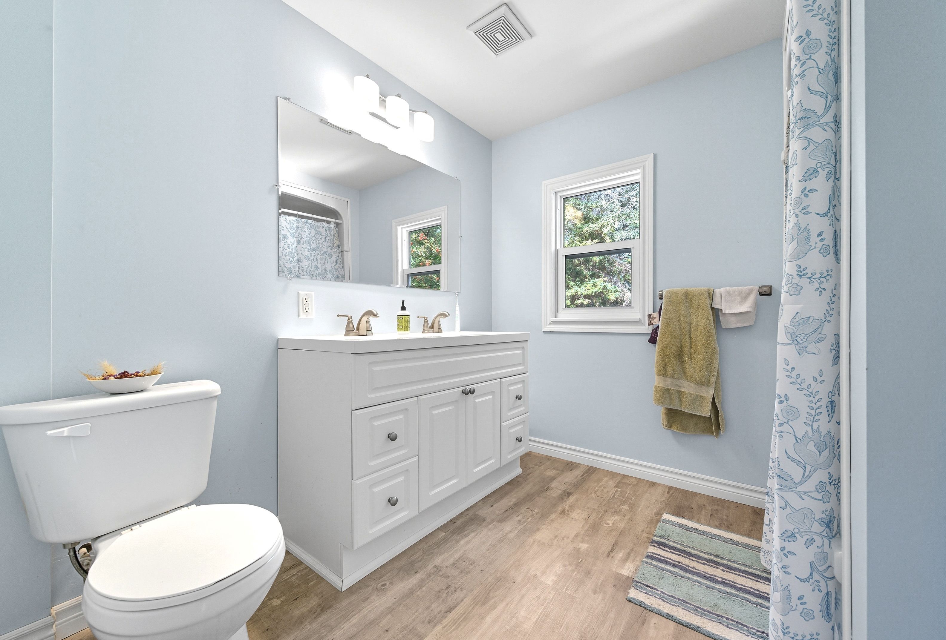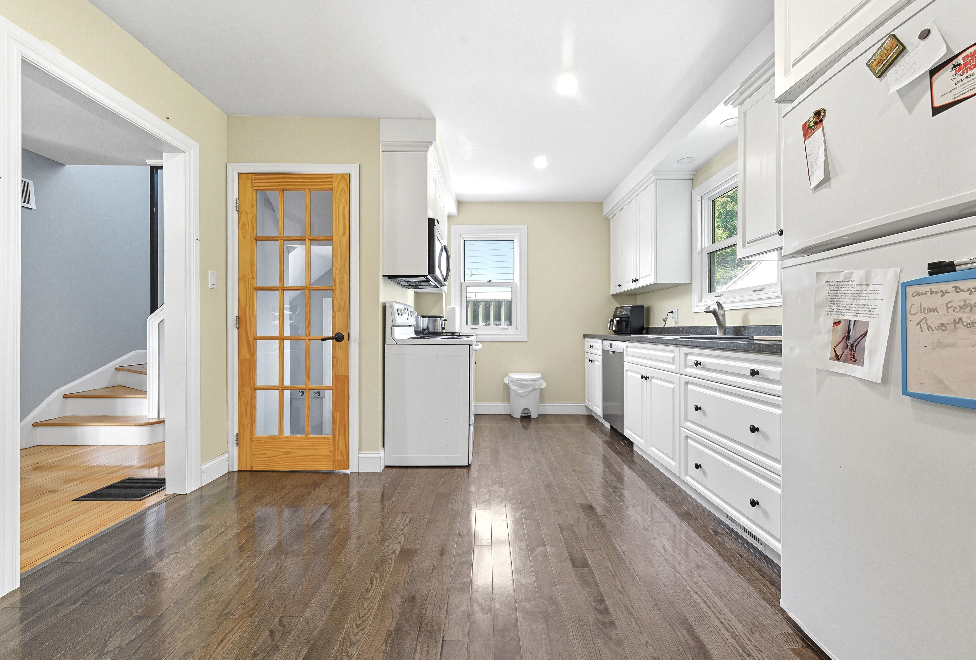 Welcome to this beautifully updated 3-bedroom, 1-bath semi-detached home in the heart of deep river. The upgraded main floor features timeless white kitchen cabinetry, gleaming hardwood floors, and a bright, open living space filled with natural light. Upstairs offers three spacious bedrooms and a refreshed bathroom with stylish double sinks. Enjoy the added convenience of a single detached garage and a private backyard backing onto serene green space-perfect for relaxing or entertaining. Ideally located near schools, parks, and everyday amenities, this move-in-ready home checks all the boxes.
