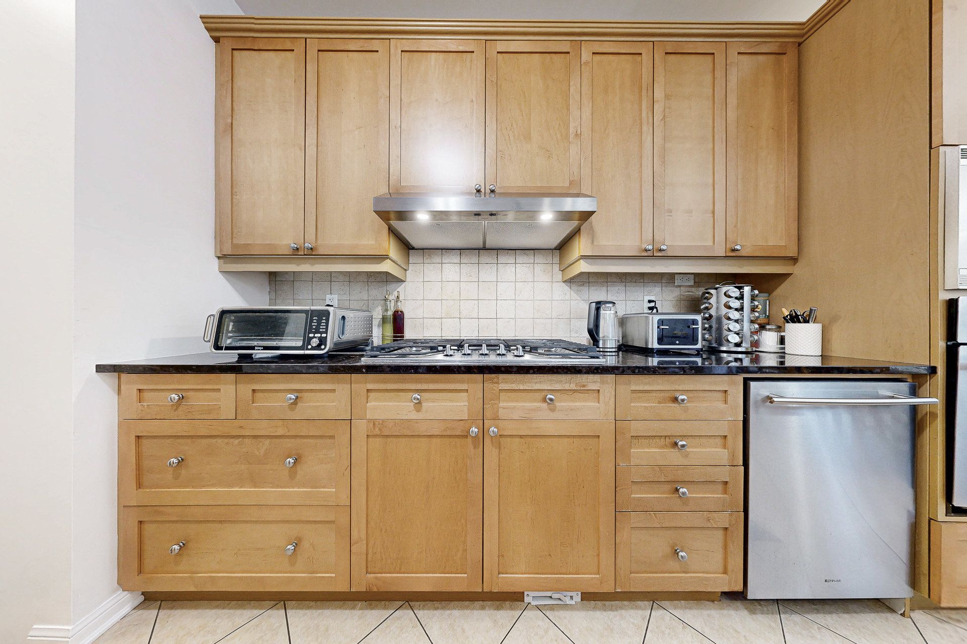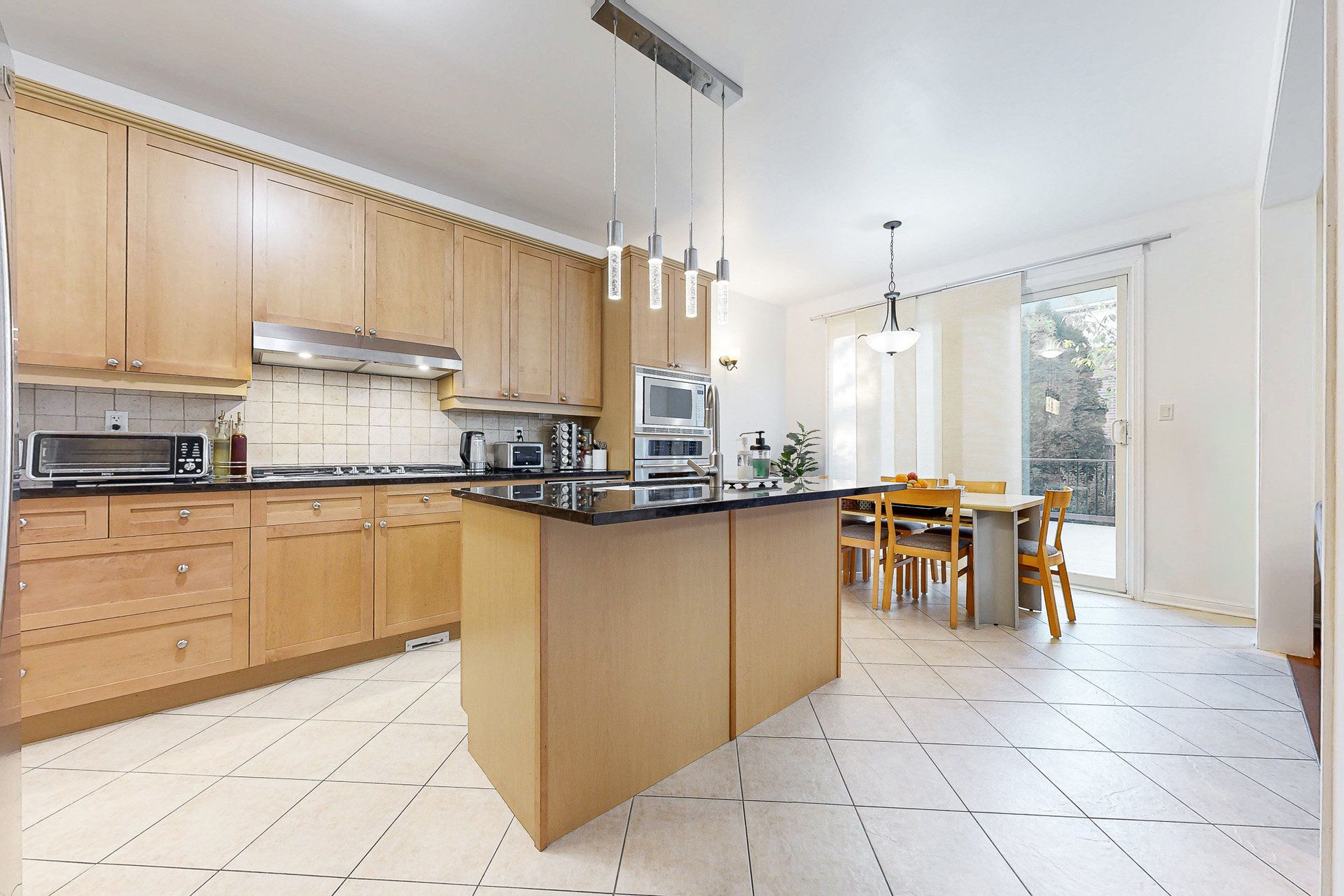 • Gourmet kitchen featuring granite counters and extended cabinets.