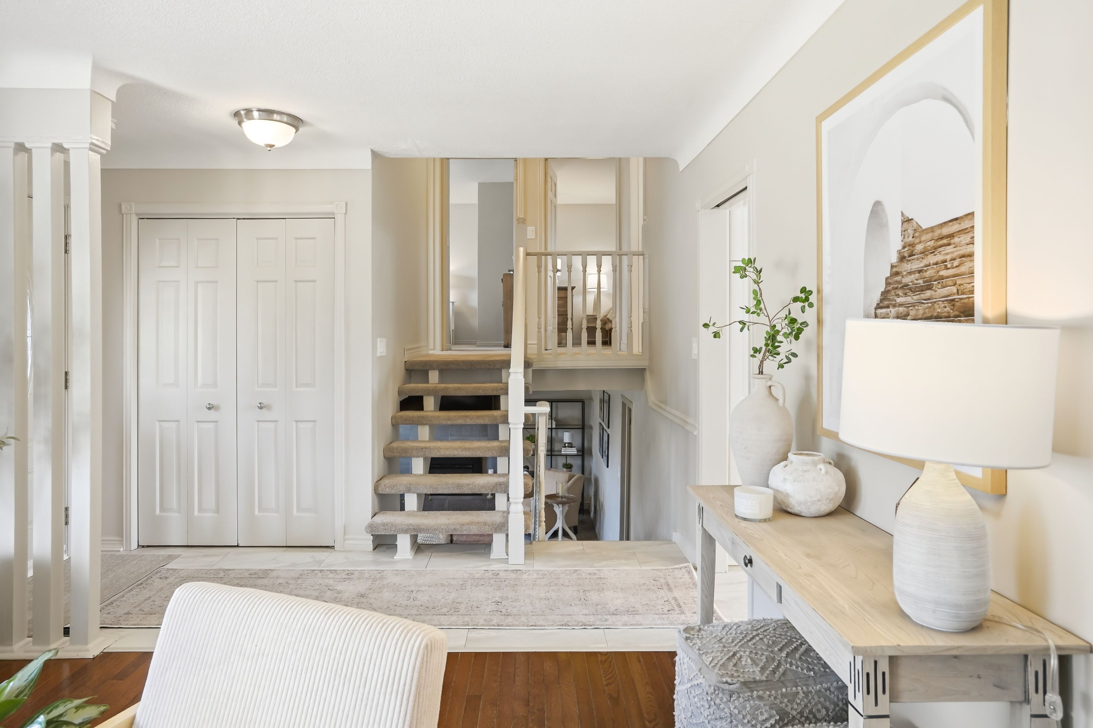 Set in the desirable garrison village neighbourhood just minutes from old town niagara-on-the-lake, this beautiful home offers an exceptional lifestyle surrounded by vineyards, golf courses, shopping, restaurants and more. From the moment you arrive, the curb appeal stands out. Set on a stately 75-foot lot framed by mature trees, the property features a double car garage and parking for 6+ vehicles. Inside, the home has been beautifully designed with a fresh and welcoming atmosphere throughout. The main living room is open to the dining area and centered around a large bay window offering partial vineyard views in the distance. Both spaces are finished in beautiful hardwood flooring and flow seamlessly into the kitchen complete with new stainless steel appliances. Upstairs, you will find three bedrooms, including a spacious primary overlooking the backyard with two double closets. Two additional bedrooms and a 4-piece bathroom complete this floor. The lower level offers a cozy and inviting space to unwind in front of the fireplace. Due to this level being only partially below grade, large windows bring in plenty of natural light and create a bright comfortable feel. A separate entrance adds excellent flexibility for an in-law suite or private living space along with a bedroom and 3-piece bathroom on this level. As a four-level side split, the home continues to deliver with an additional lower level featuring the laundry area, ample storage and a large rec-room. This is a versatile space that can easily function as a media room, gym, playroom or extended living area depending on your needs. The backyard offers a private setting surrounded by mature trees, creating a comfortable outdoor space to enjoy. Discover what niagara-on-the-lake has to offer today and enjoy being part of a community known for its charm, character and timeless appeal.