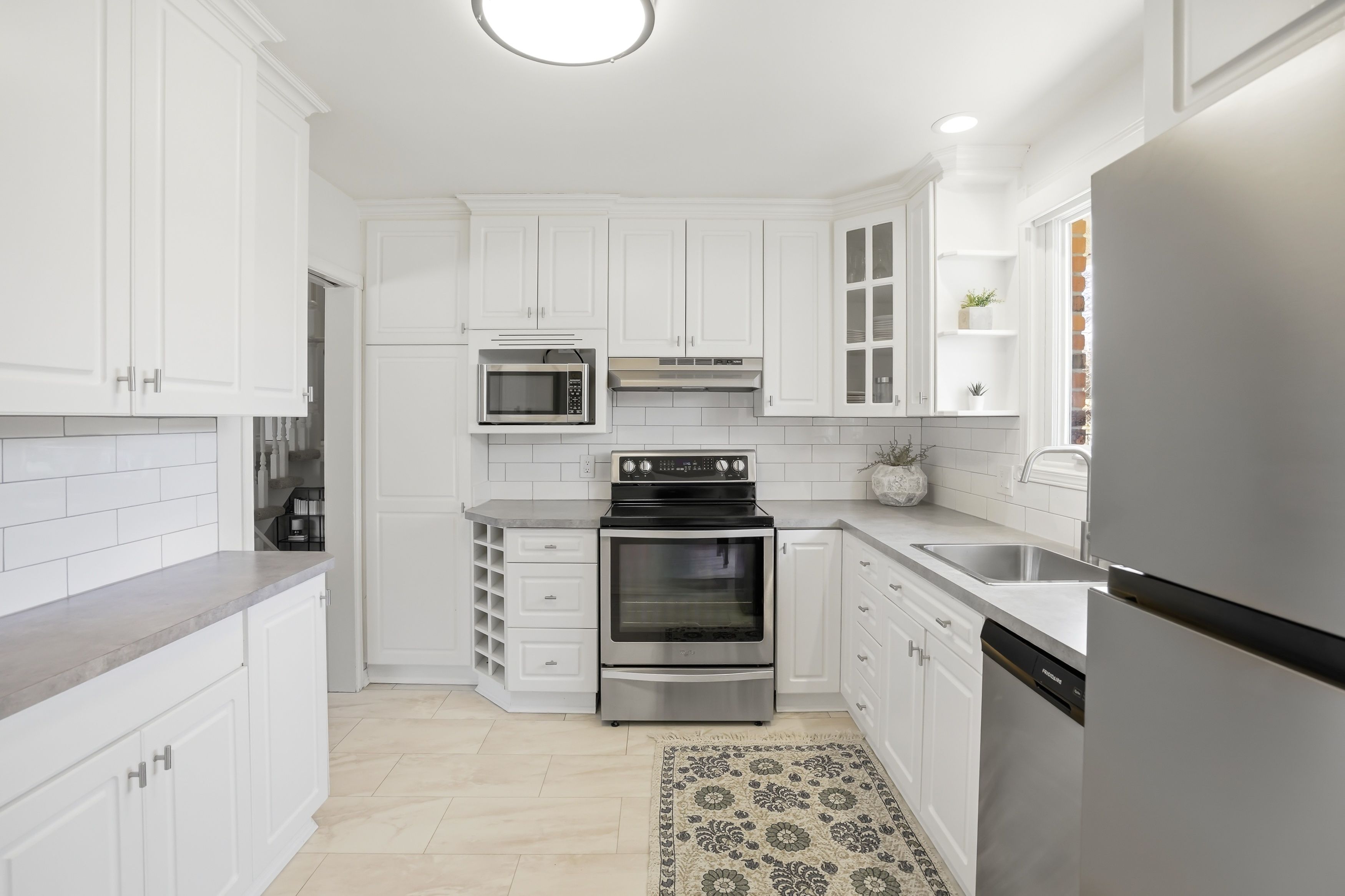 • Spacious 75-foot lot with mature trees and ample parking for 6+ vehicles.
