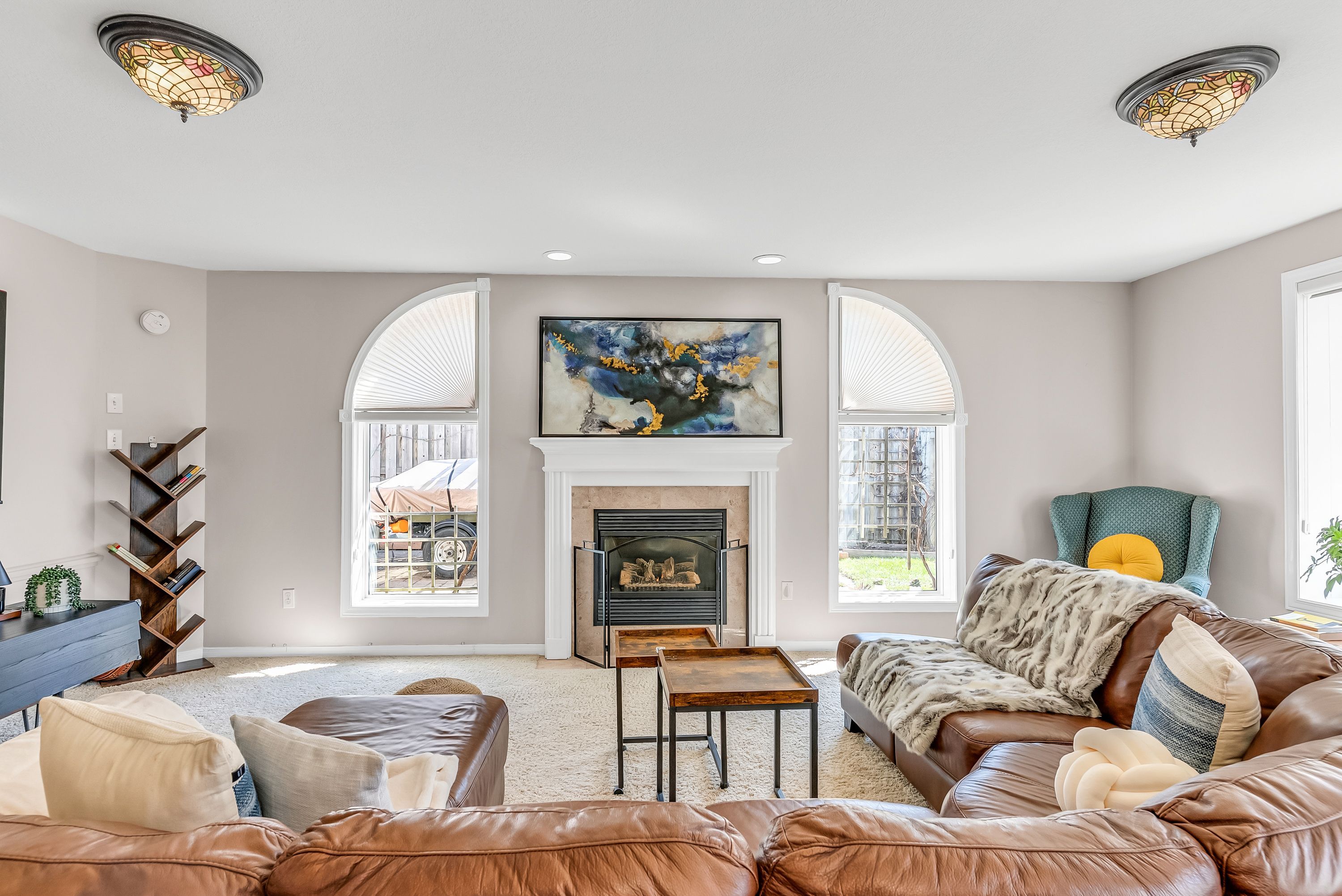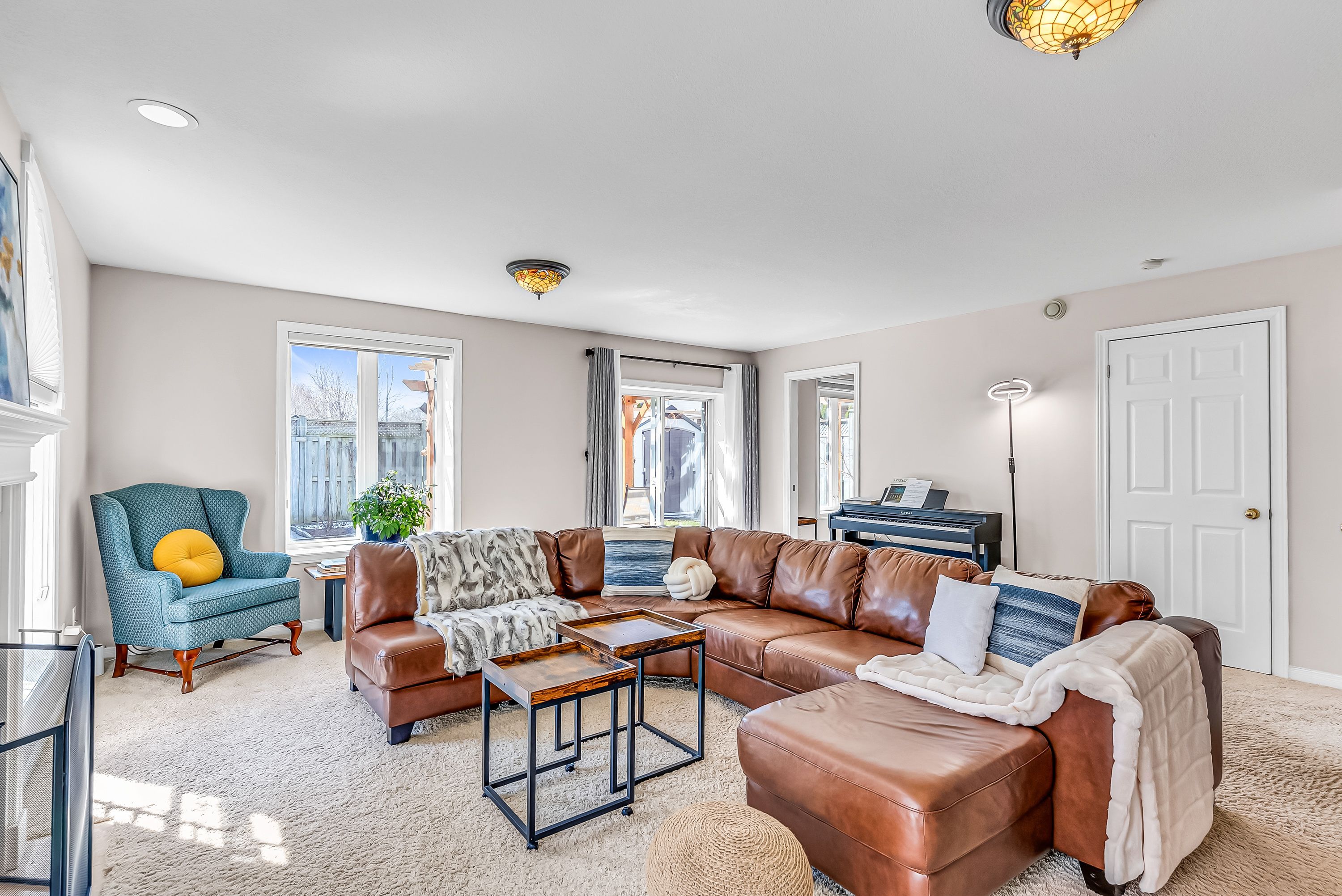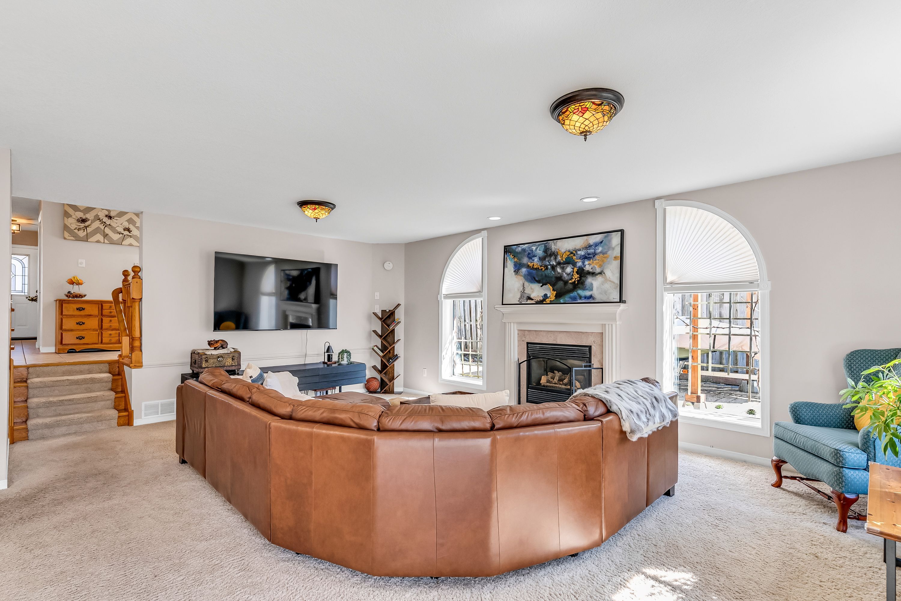 • Sunken family room with gas fireplace and backyard access.