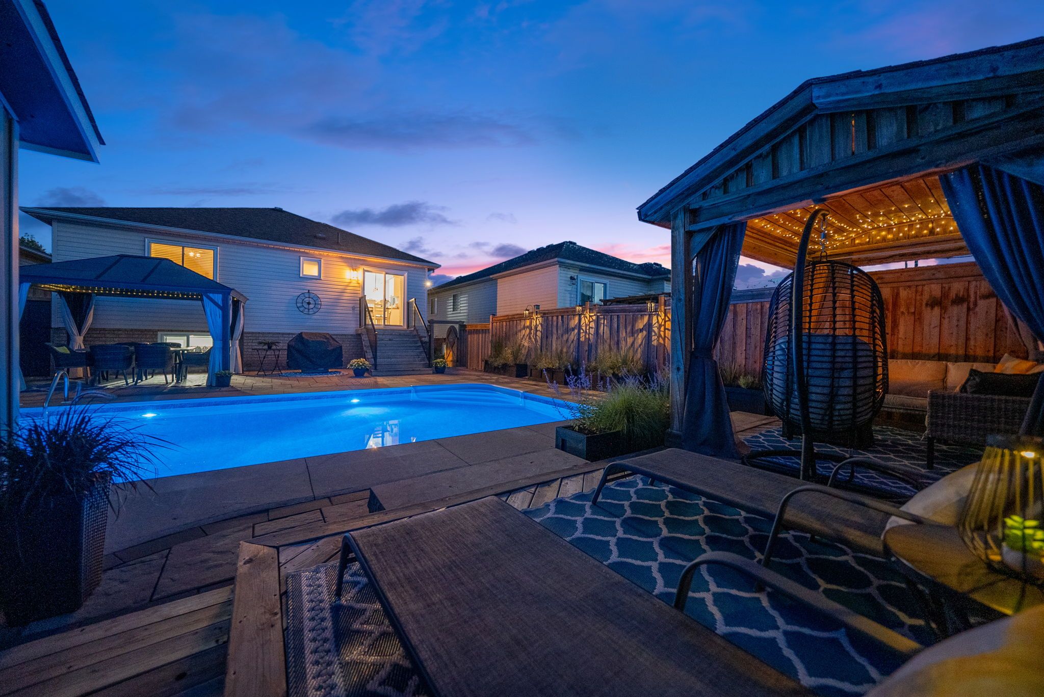 Welcome to 6 goodwin avenue, a beautifully maintained raised bungalow with a rare loft level, 1,966 sq ft living space (1,100 sq ft above grade plus 866 sq ft below) & a resort-style backyard ready to be enjoyed for seasons of hosting, lounging & making memories. This original-owner, non-smoker home has been lovingly cared for since day one. The main floor offers bright, open living with a welcoming front living room & an easy flow to the dining area a kitchen. Large windows fill the home with natural light, creating a warm & comfortable atmosphere throughout. The bonus loft level adds valuable extra living space & works perfectly as a family room, home office, playroom or optional future 4th bedroom. Two comfortable bedrooms are located on the main floor, including the primary with semi-ensuite access. The lower level feels unexpectedly bright thanks to oversized above-grade windows. This finished space includes a spacious rec room with a cozy gas fireplace, a third bedroom, a full five-piece bathroom with double sinks, plus a generous storage room & a separate utility/laundry room. The backyard is a true showstopper. Designed for relaxation & entertaining, it includes an inground pool with lighting for evening swims, full hardscaping with no grass to maintain, two covered seating areas, a dedicated lounging deck, a fire-feature zone & a charming pool shed. It is private, low-maintenance & beautiful from morning to night. Additional features include a built-in garage with parking for 5 vehicles, landscaped front gardens, excellent natural light on both levels & a desirable bowmanville location close to schools, parks, amenities & commuter routes. A rare blend of lifestyle, comfort & long-term care. This is a home you will feel proud to own. A fantastic location, just minutes to shops, restaurants, the hospital, schools, major commuter highways & all the day-to-day amenities you want & need. View the virtual tour a schedule your personal viewing today!